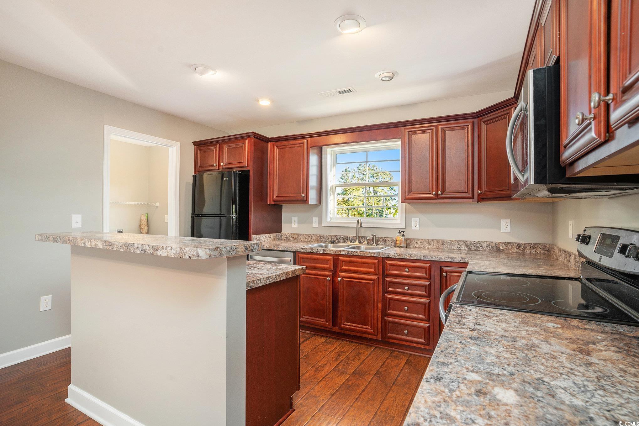 Enjoy Carolina living at is finest in this beautiful open floor plan 3/2 home overlooking a peaceful pond, nestled in the quiet sidewalk community of Hunters Creek. -Spacious primary suite with trey ceilings, double vanity and walk-in closet -Modern kitchen featuring breakfast bar, granite countertops and stunning lake view. -Relax on the front sitting porch or entertain on the covered back porch with extended patio. -Bright and airy living spaces designed for comfort and flow. All located just minutes from the Riverfront Historic Downtown Conway with its charming Main Street. Just a short drive to the sandy beaches of the Grand Strand.