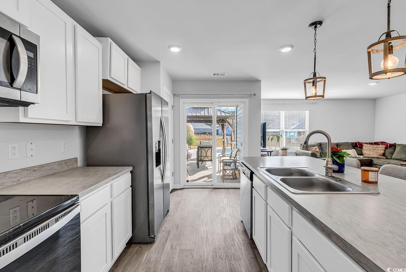 Looking for a home with your own pool and a beautiful pond view? Welcome home! This well-maintained 3-bedroom, 2-bath split floor plan was built in 2021 and is located in the desirable Pine Forest subdivisionjust minutes from historic Downtown Conway. The main living area, kitchen, and foyer feature stylish LVP flooring, while the bedrooms offer cozy carpet. The kitchen includes stainless steel appliances, a spacious island perfect for meal prep or entertaining, and abundant cabinet storage. The open floor plan creates a warm, inviting atmosphere that seamlessly connects the kitchen, dining, and living spaces. Step outside to your fenced-in backyardan ideal spot for gatherings. Enjoy the covered porch, pergola, and your very own private pool overlooking the pond. Whether youre hosting friends or relaxing after a long day, this outdoor space is truly a highlight. Located just 30 minutes from Myrtle Beach, this home offers both convenience and tranquility. Move in and start enjoying spring, summer, and fall of 2026 in your own backyard oasis. Dont let this one pass you bycontact your local agent for a tour today!