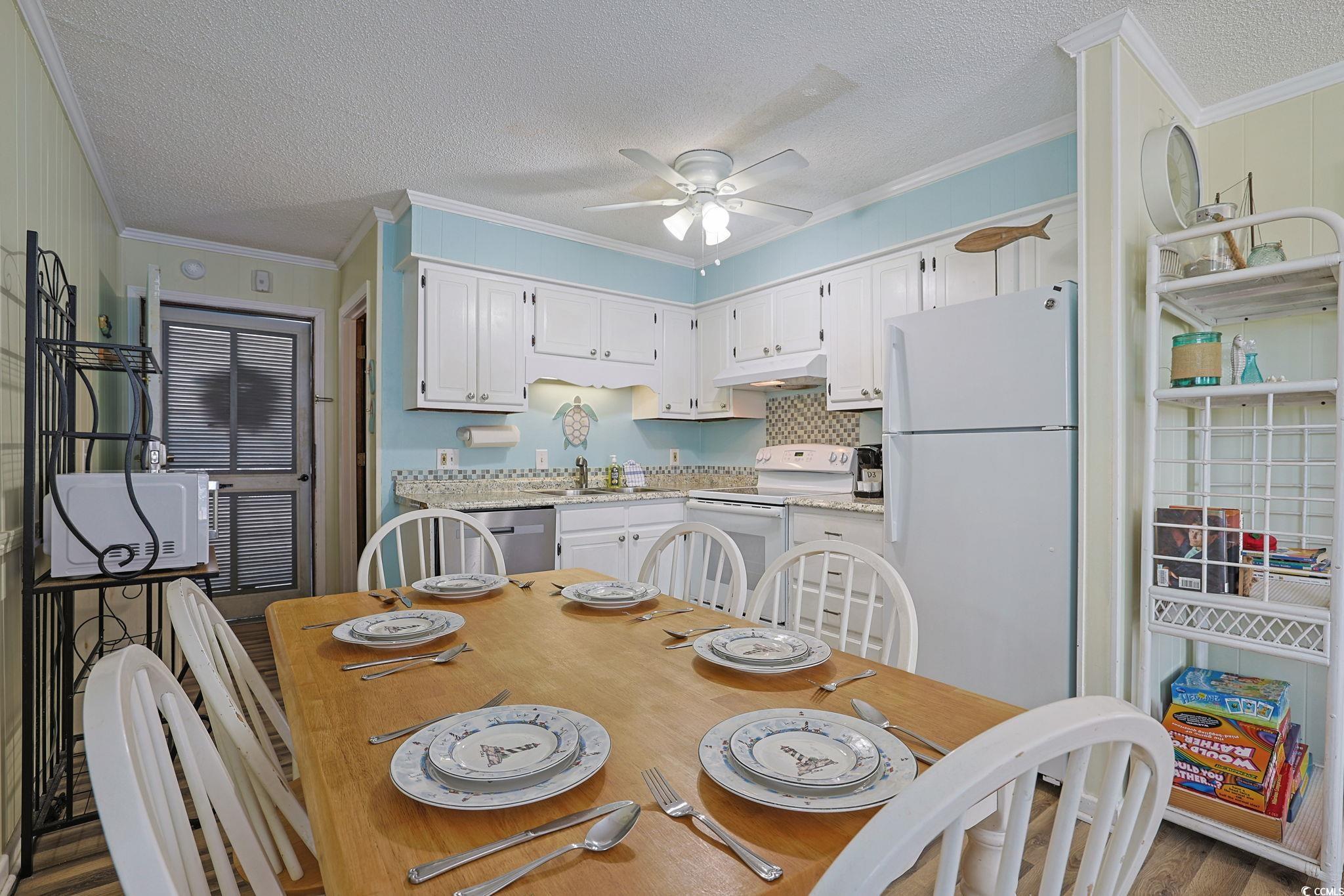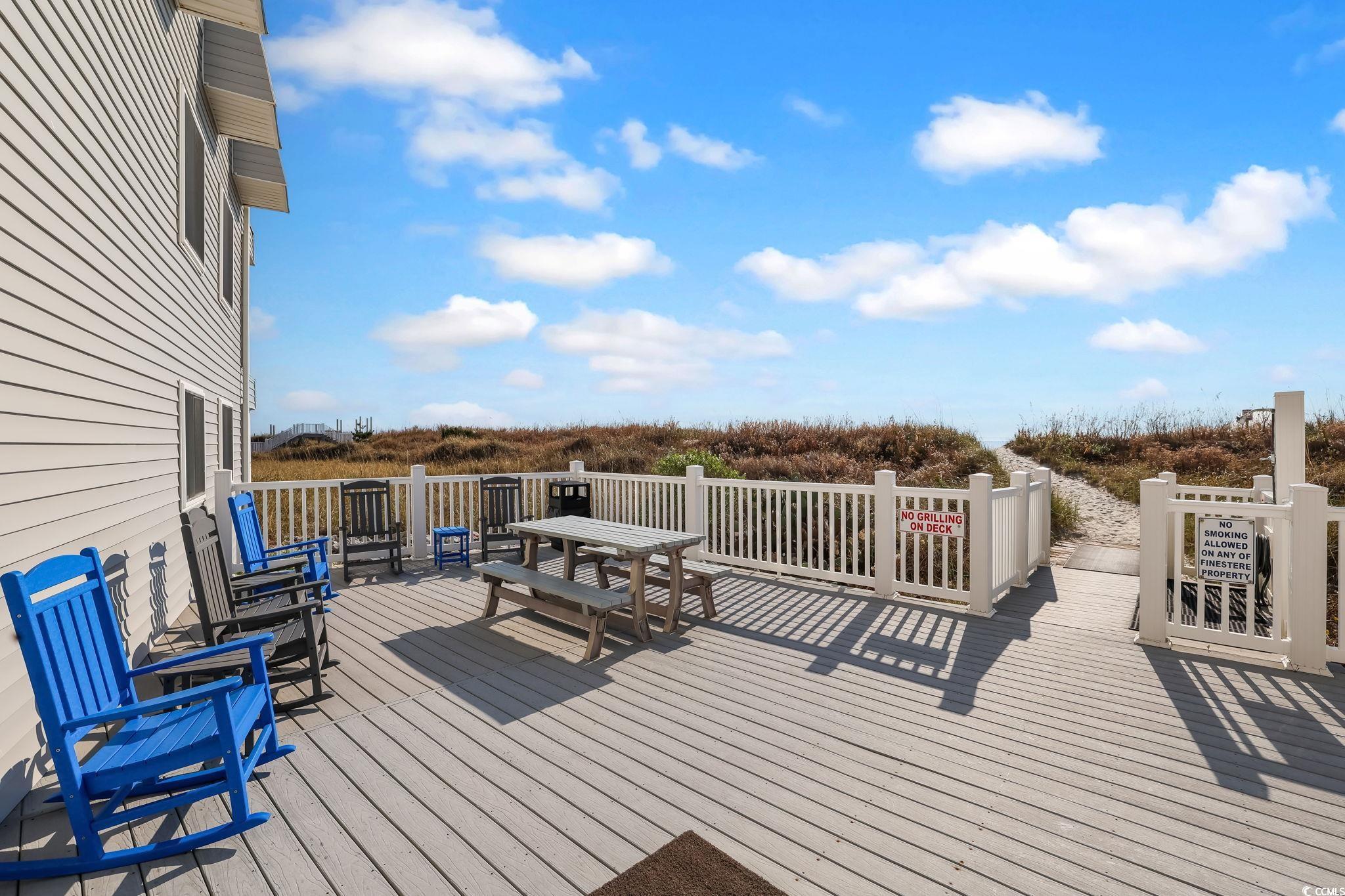 Introducing this spectacular ocean view 2 bedroom 2 bath end unit condo located in the Cherry Grove Beach section of North Myrtle Beach at the Finestere complex. With short term rentals allowed this could be a high income producing property. This piece of paradise is steps from the white sandy beach and features laminated wood & carpet flooring, stylish furnishings, and a spacious living room that showcases a sliding glass door that opens up to the wonderful balcony with take your breath away ocean views. The cheerful kitchen is equipped with a smooth flat top range, a refrigerator, a dishwasher, ample cabinet & counter spaces, and a dining area. The primary bedroom suite offers double bi-fold door closet, private access to the primary bath that presents a vanity with a single sink, a comfort station, and a classic step-in shower. This inviting condo is completed with an additional bedroom, full guest bath, and includes extra storage spaces. This condo affords you easy access to the beach and golfing along with all of the other activities and happenings in North Myrtle Beach & Myrtle Beach including fun eateries, award winning off-Broadway shows, public fishing piers, and intriguing shopping adventures along the Grand Strand. Conveniently located to your everyday needs, including grocery stores, banks, post offices, medical centers, doctors offices, and pharmacies. Check out our state of the art 3-D Virtual Tour.