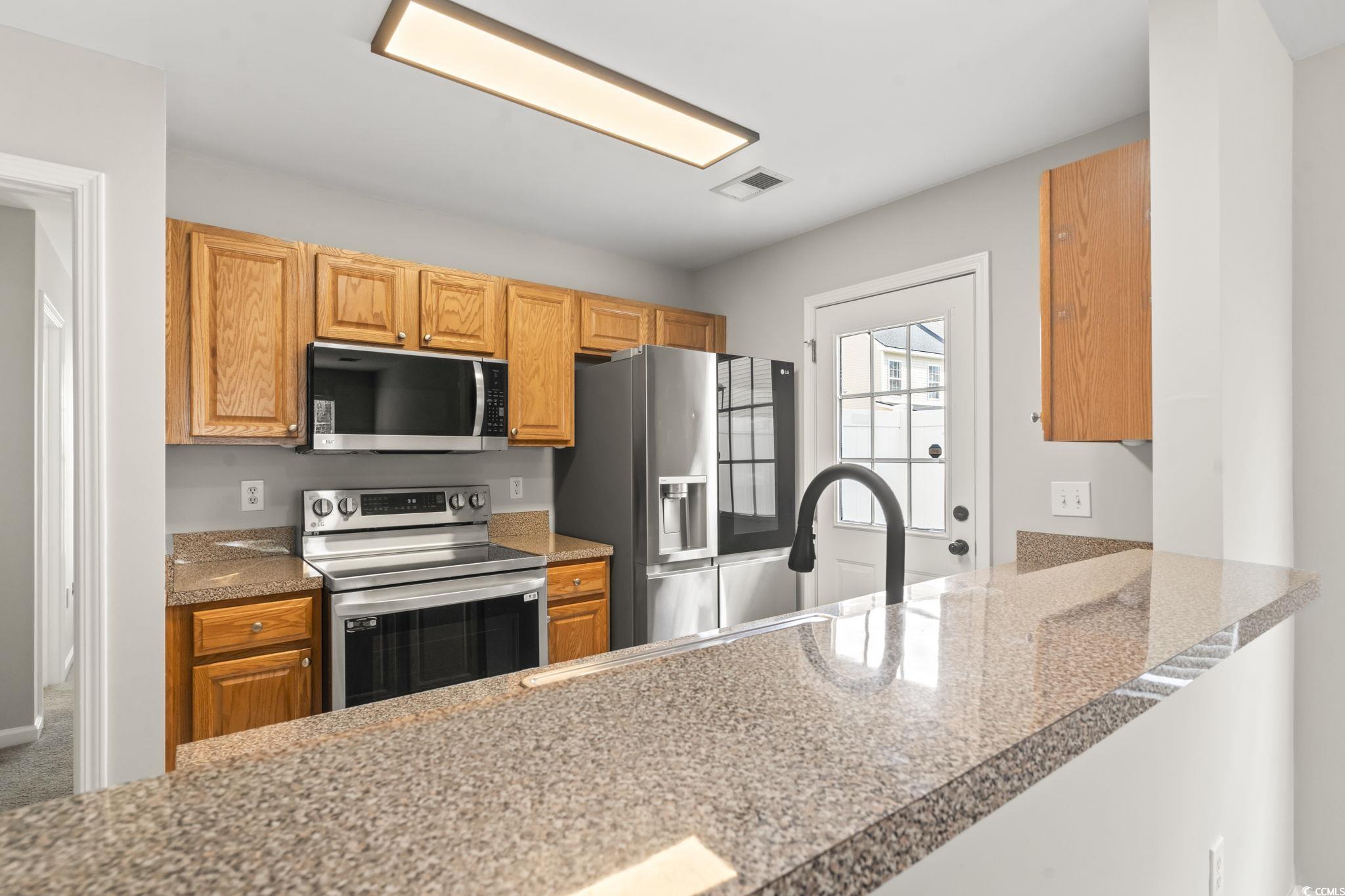 Beautiful END UNIT townhome just minutes to the beach and all that North Myrtle Beach has to offer! This 3-bedroom, 2-bath home features a desirable first-floor master suite, a bright and open living area, and freshly painted interior. The kitchen includes stainless steel appliances, ample cabinet space, and convenient flow to dining and living areas. Enjoy outdoor living on your private patio, perfect for relaxing or entertaining. Major updates include a new roof (2023) and new HVAC (2023) for added peace of mind. The community offers great amenities, including a pool and hot tub. Ideally located just blocks from Hwy 31 and Hwy 22, offering quick access to shopping, dining, and the entire Grand Strand. A fantastic primary residence, vacation getaway, or investment opportunityall just minutes from the beach!