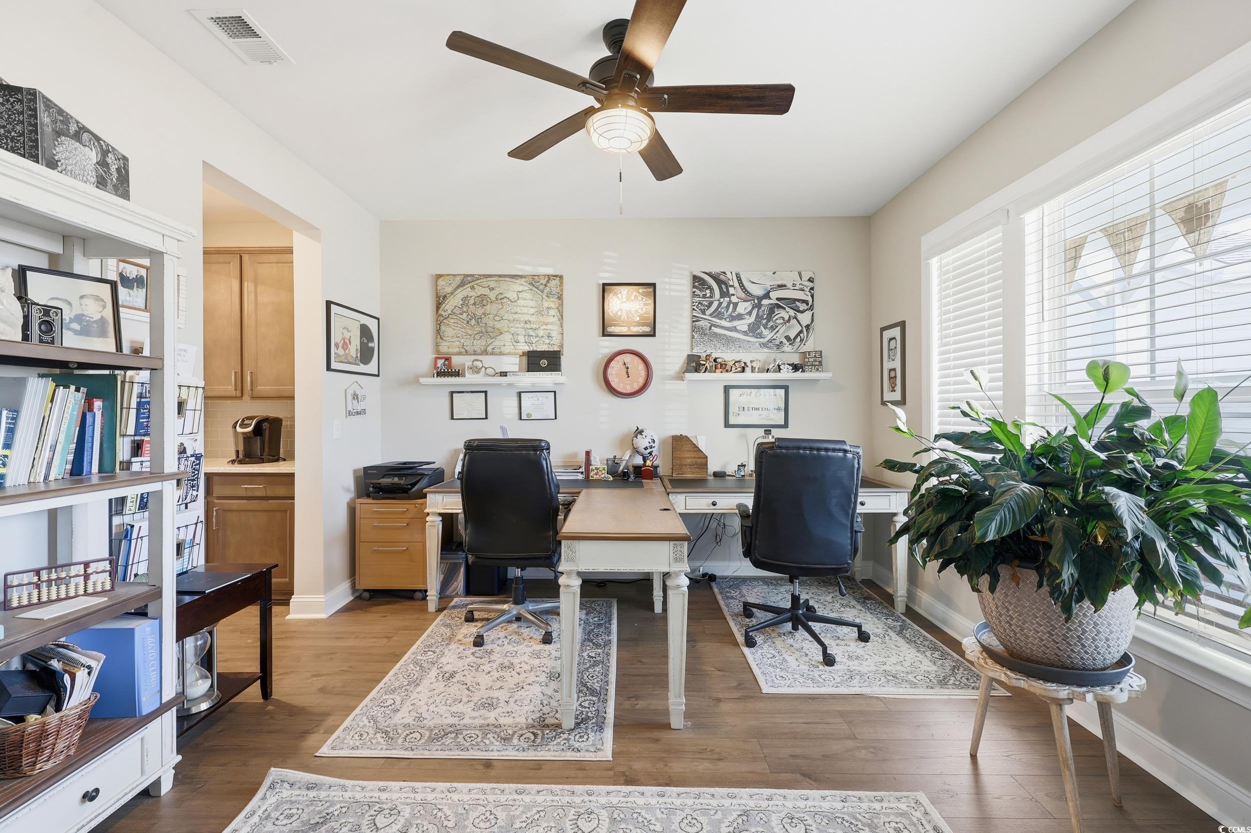 Welcome to this charming, meticulously cared-for home offering the perfect blend of comfort, style, and functionality. This home is nestled in the highly sought after neighborhood of Harborview. From the moment you arrive, youll appreciate the inviting curb appeal, highlighted by a welcoming front porch, manicured landscaping, and an extended driveway leading to a spacious two-car garage and additional golf cart garage. Step inside to a bright and elegant foyer featuring custom wainscoting, crown molding, and rich wood-look flooring that flows seamlessly into the main living areas. The open-concept kitchen is designed for both everyday living and entertaining, complete with: Granite countertops, abundant cabinetry, Subway tile backsplash, Stainless steel appliances and an oversized center island with seating. The kitchen area also features a butlers alley with a generous walk-in pantry provides exceptional storage and functionality. The layout offers a natural flow into the dining and living areas, creating an ideal space for gatherings. Retreat to the spacious primary suite, featuring tray ceilings, a large walk-in closest, and plenty of natural light. The en-suite bath offers dual vanities, a soaking tub beneath a large window, and a separate glass-enclosed shower creating a spa-like atmosphere. Step outside to a back cement patio that extends into the yard, offering ample space for seating, grilling, and enjoying the outdoors. This stunning home in Harborview is a natural gas and gated community It is located in the Carolina Forest school district. The amenity center features a handicap accessible pool and clubhouse. Stroll the neighborhood on the sidewalks placed throughout. This is truly move-in ready and is perfectly positioned just 6.5 miles to the ocean, 7.6 miles to Market Common, and 6.7 miles to the airport; dont miss your chance to make it yours!