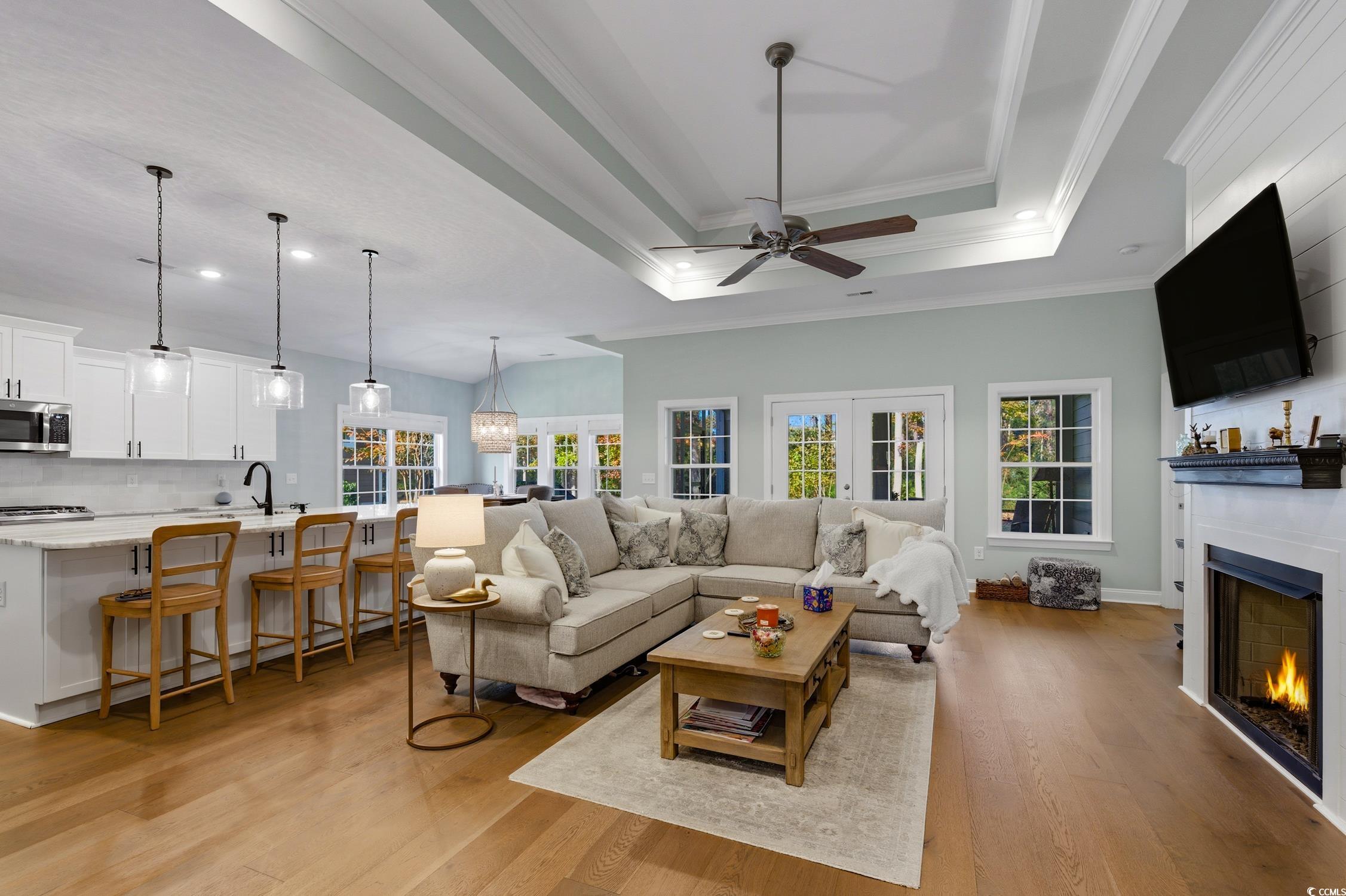 Welcome to 757 McDuffie Drive, a beautifully maintained 4-bedroom, 3-bath home with an additional office that can serve as a 5th bedroom, located in the highly sought-after gated community of Cypress River Plantation. This single-level home offers great curb appeal with brick accents, Hardie siding, and a welcoming front entry, and the inside is just as impressive with an open living area, high tray ceilings, a cozy fireplace, wide-plank hardwood floors, and large windows that fill the space with natural light. The kitchen features white shaker cabinets, a huge island, stainless steel appliances, and plenty of storage, all flowing seamlessly into the main living and dining areas. The owners suite is spacious and private with a sitting area and a stunning walk-in tile shower with a bench and dual niches. The home also includes generous guest bedrooms, updated finishes throughout, and a peaceful backyard setting. Cypress River Plantation is one of Myrtle Beachs premier gated communities, offering resort-style amenities including a clubhouse, pool, fitness center, tennis and basketball courts, a playground, and a private boat launch on the Intracoastal Waterway, all in a convenient location close to beaches, dining, and everything the Grand Strand has to offer.
