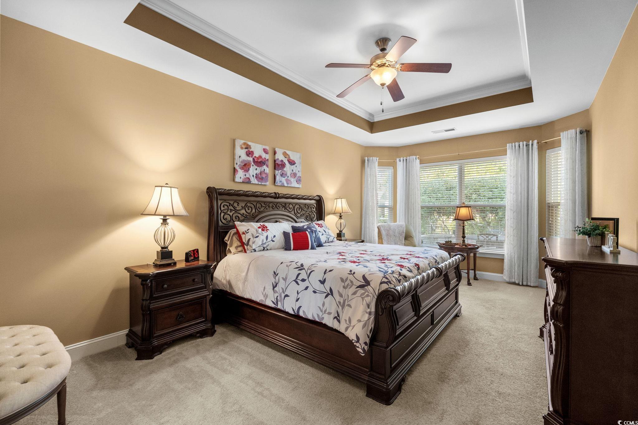 PrimaryBedroom: TrayCeilings, CeilingFans, MainLevelMaster, VaultedCeilings, WalkInClosets