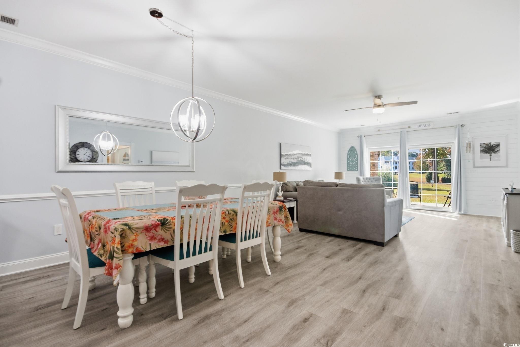 Welcome to 4890 Luster Leaf Circle, Unit 102located in the highly sought-after Magnolia Pointe community at Myrtlewood in Myrtle Beach. Renowned for its beautifully landscaped grounds, walking trails, bike paths, serene ponds, sparkling pools, and world-class golf at the Myrtlewood Golf Club, Magnolia Pointe offers an unbeatable blend of resort-style living and exceptional convenience. Just minutes from the beach, top dining, premier entertainment, and shopping, this location truly has it all. This beautifully maintained and fully furnished 3-bedroom, 2-bath first-floor condo provides effortless living with direct ground-level accessperfect for carrying your beach gear or golf clubs. Situated just steps from the pool and open common areas, the unit offers the rare ability to enjoy the amenities right from your back porch, making it one of the most conveniently positioned condos in the community. Inside, the spacious kitchen features granite countertops, updated appliances, abundant cabinetry, and a breakfast bar that opens seamlessly to the dining and living areasideal for hosting and everyday comfort. The home is enhanced with elegant touches throughout, including crown molding, chair railing, luxury vinyl plank flooring in the living areas and all bedrooms, and decorative wall molding in the primary and secondary bedrooms. The primary suite offers a charming bay window, double-sink vanity, and a large walk-in closet. Whether you're seeking a primary residence, a vacation home, or a short- or long-term rental, this condo offers outstanding flexibility and investment potential. Experience the best of coastal livingschedule your showing today!