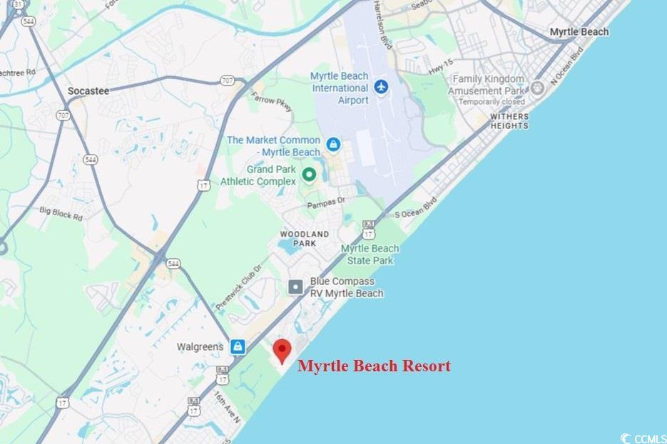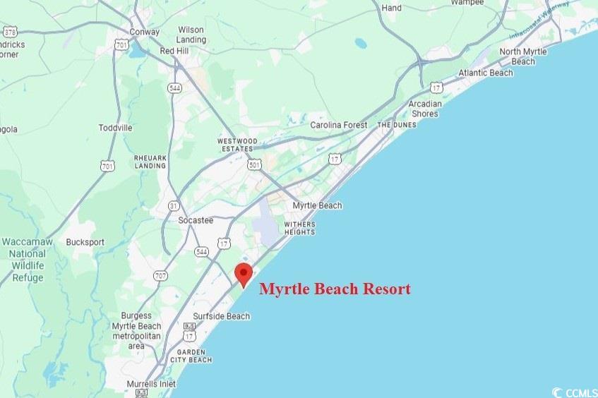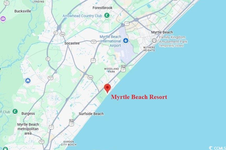 From SC Highway 17 Business (South Kings Highway) between the City of Myrtle Beach & the Town of Surfside Beach turn east to enter Myrtle Beach Resort at 5905 South Kings Highway. Drive to the security gate to get a parking pass for access. Turn left and follow signs for Building A. Unit #A-128 is on the first floor on the south side of the building. GPS 33.628854, -78.951876Courtesy of Re/max Southern Shores Gc - Cell: 843-450-8760