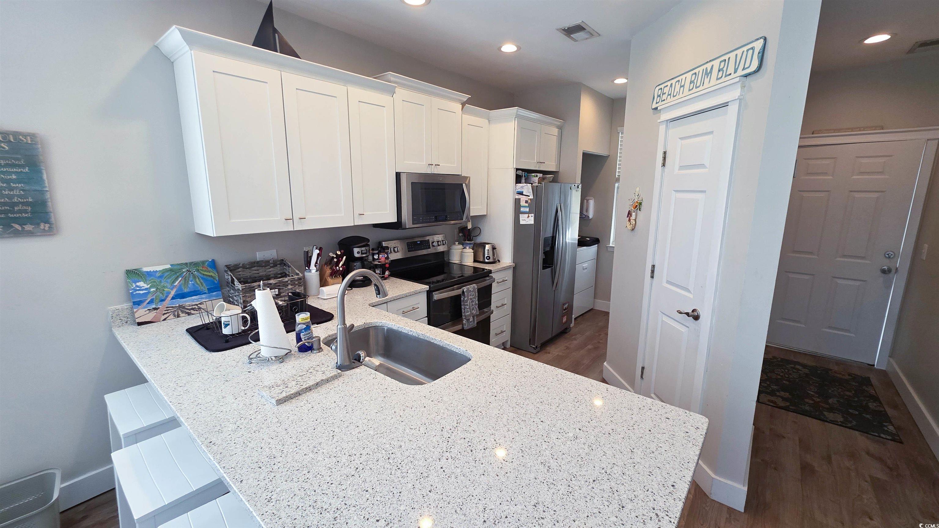 Prepare to be in love with this beautifully updated, 2-bedroom, 2-bath end unit condo. Fully furnished and turnkey, this unit features new LVP flooring throughout, fresh paint, updated fixtures, new tiled showers and Stainless Steel Appliances. Large windows let in abundant natural light, and the open floor plan offers plenty of space for everyone. Ideally located near golf courses, shopping, and just minutes from the beach, River Oaks offers pools, tennis courts, and outdoor grilling areas. This condo is an excellent option for a primary residence, second home, or rental investment. Both long- and short-term rentals are permitted. Schedule your showing today!