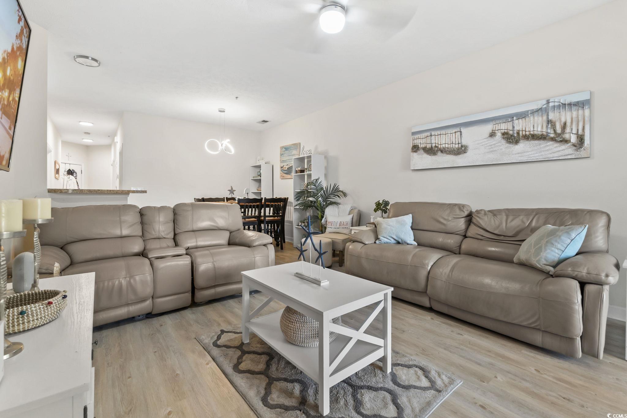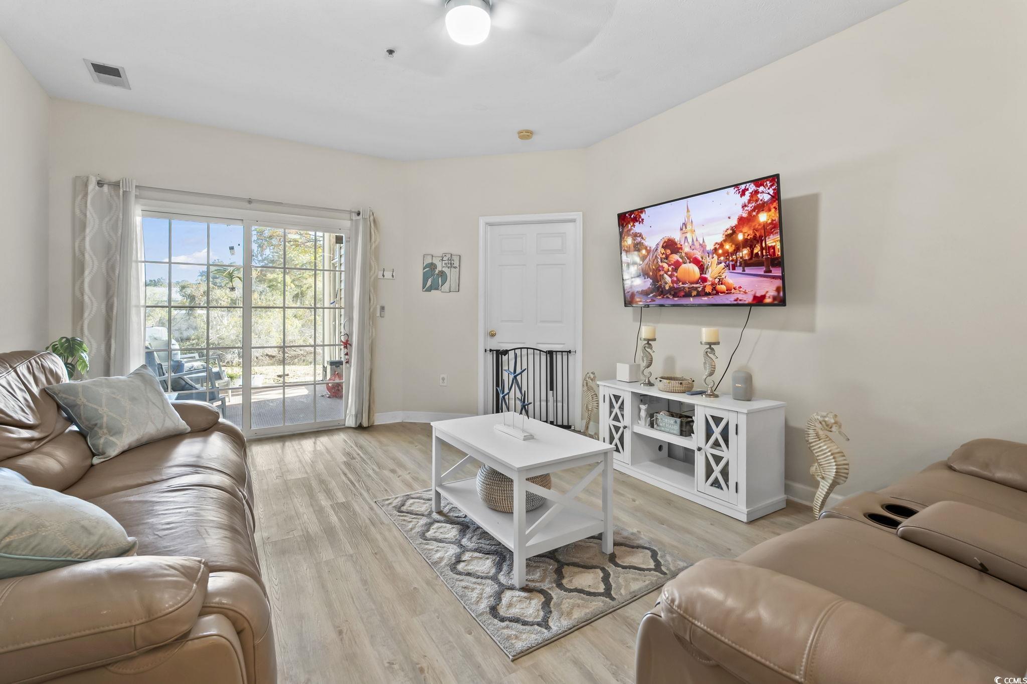 Welcome to this beautifully updated first-floor condo in the desirable Ashley Park community of Carolina Forest! This is the only first-floor condo currently available, making it a rare opportunity you wont want to miss. Positioned on a premium tranquil pond-view lot, this home offers some of the most peaceful and scenic views in the entire neighborhood. The true showstopper is the breathtaking water viewenjoy daily sightings of turtles, birds, and other wildlife right from your screened-in porch or from the spacious owners suite, which also overlooks the serene pond. Its the perfect setting for your morning coffee or a calming evening unwinding at home. Inside, the condo has been thoughtfully upgraded with brand-new luxury vinyl plank flooring throughout the main living areas, new tile flooring in both bathrooms and the laundry room, and beautiful stainless steel appliances. Additional updates include a new storm door, new toilets, new light fixtures, and new ceiling fans, making this home truly move-in ready. This property also features a Smart Home lighting system, allowing you to conveniently control lights and switches throughout the homeadding modern convenience, efficiency, and enhanced comfort to your daily living. The laundry room provides ample storage space, helping you keep your belongings neat and organized. For added convenience, an exterior storage room is located right by the front doorperfect for beach chairs, bikes, or anything you want securely tucked away. Residents enjoy access to the community pool, and the location is unbeatableclose to Tanger Outlets, Highway 501, restaurants, golf courses, entertainment, and some of the best beaches along the Grand Strand. With its excellent condition, modern upgrades, Smart Home features, and prime location, this condo is ideal as a primary residence, vacation home, or rental investment. Dont miss your chance to own a piece of paradise in Ashley Parkschedule your showing today! Material Facts: Property is subject to an active HOA lien. Seller will satisfy the lien in full at closing