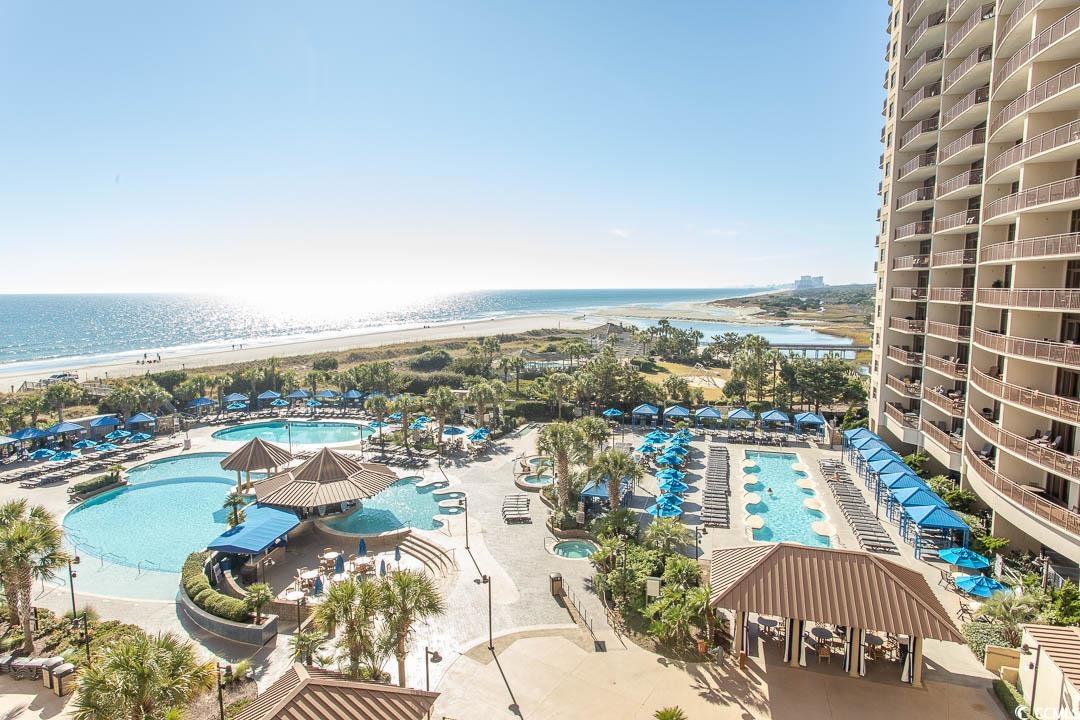 Spectacular 2 BR / 2 BA oceanfront condo in the Indigo Building of North Beach Towers. The Hampton floor plan features 9' ceilings, granite countertops, stainless steel appliances, Master Bath with whirlpool tub and shower, and expansive balcony. North Beach Plantation, 60-acre oceanfront development offers a 2.5-acre pool area with a swim-up bar rated #1 in the US by TripAdvisor, 8 pools, 5 hot tubs, lazy river, world-class spa, Beach Fit fitness center, shuttle, security and 3 on-site restaurants located across from Barefoot Landing.