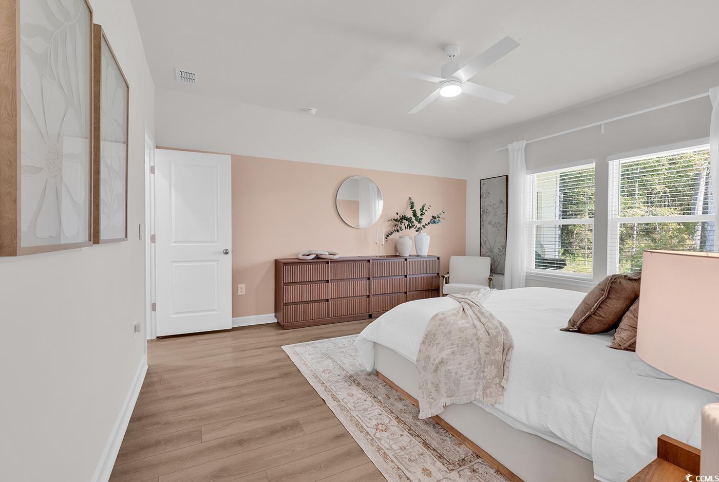 PrimaryBedroom: CeilingFans, LinenCloset, MainLevelMaster, WalkInClosets