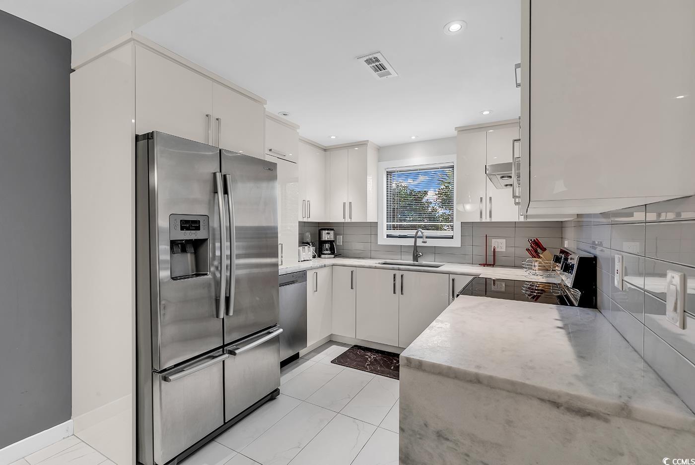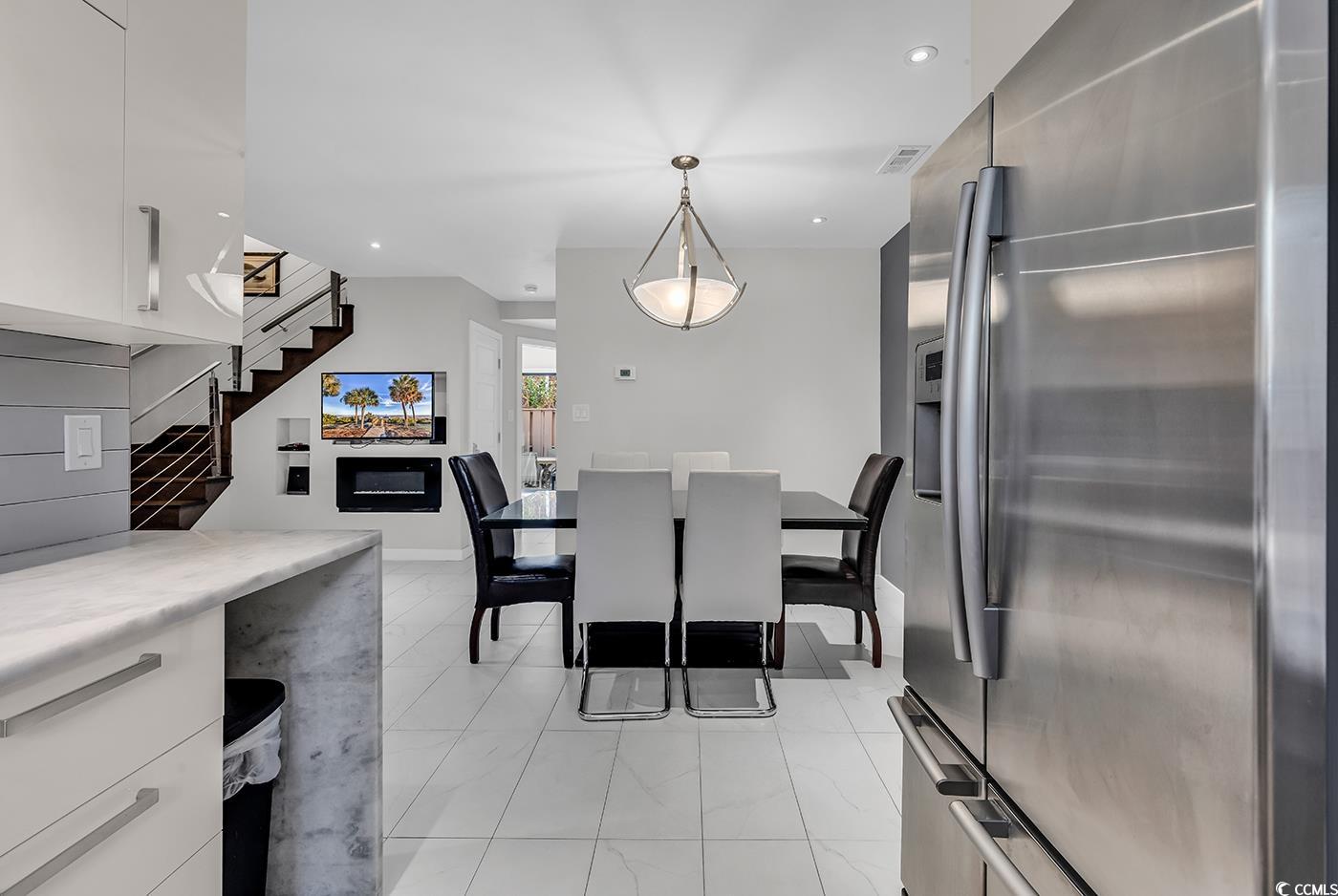 Experience the best of coastal living in this beautifully updated 3-bedroom, 2-bath townhouse in the highly sought-after Hurl Rock community of downtown Myrtle Beach. Just a short walk to the beach, this fully furnished home offers modern design and exceptional flexibility with no HOA and short-term rentals allowed, a rare find in this location. Inside, you'll find an inviting open-concept layout highlighted by a sleek electric fireplace, contemporary finishes, and abundant natural light. The first-floor primary bedroom adds convenience and privacy, while both bathrooms feature walk-in tile showers that create a spa-like atmosphere. The kitchen is equipped with stainless steel appliances and modern touches that make cooking and entertaining effortless. An oversized laundry room provides valuable additional storage, and the private, fenced-in backyard is perfect for relaxing or hosting gatherings after a day by the ocean. With stylish upgrades, thoughtful design, and an unbeatable location, this townhouse is ideal as a primary residence, vacation getaway, or income-producing investment property. Don't miss the opportunity to own this exceptional coastal retreat!schedule your showing today!