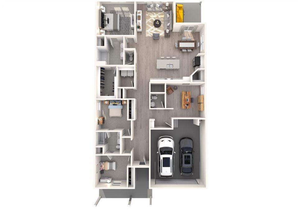 Brand new, energy-efficient Ready Now! Entertain with ease in the Gibson's bright, open-concept living space. A Jack-and-Jill bath with dual sinks serves the secondary bedrooms, while the private primary suite boasts a walk-in shower and impressive closet. Experience the ultimate in energy-efficiency living with a Meritage home in Clear Pond. This master-planned community offers an array of amenities including swimming pools, fitness center, sports courts and more. The Boardwalk Series features one- and two-story homes designed to fit your unique needs. Just minutes away from restaurants, beachside attractions and highly-rated schools, Clear Pond offers the perfect blend of convenience and comfort. Each of our homes is built with innovative, energy-efficient features designed to help you enjoy more savings, better health, real comfort and peace of mind. Photos of another Gibon in the neighborhood.