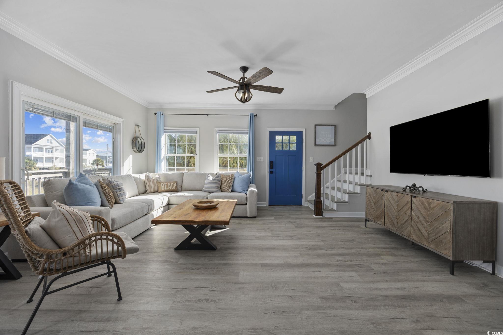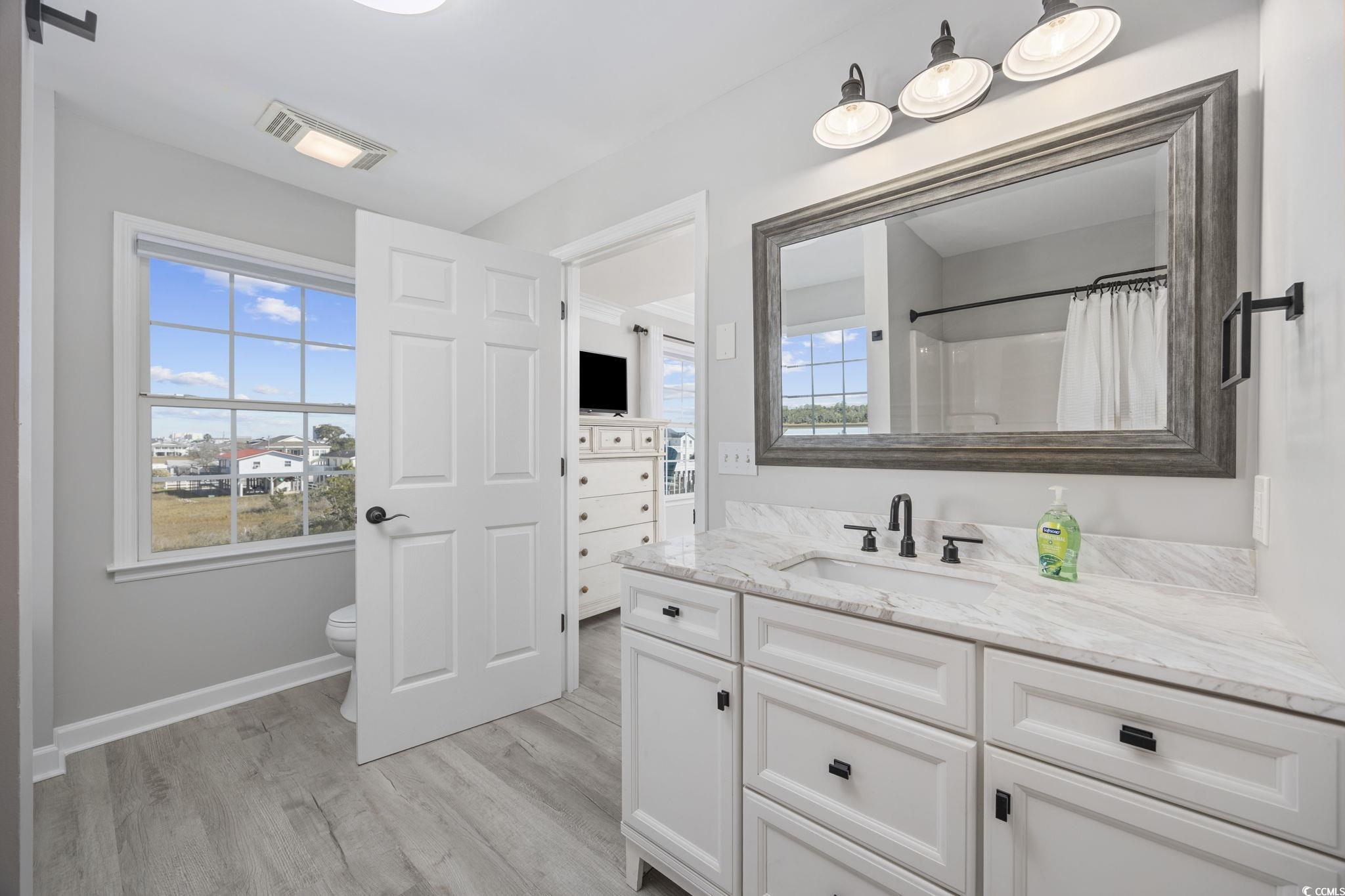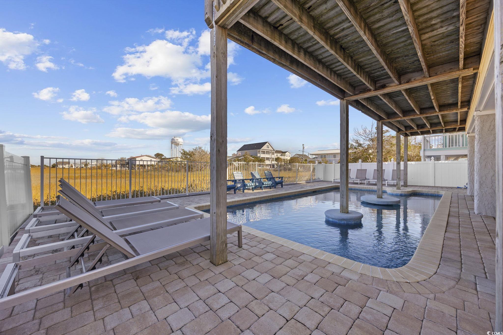 Welcome to the Palmetto Breeze located in the popular Cherry Grove section of North Myrtle Beach! This three story raised beach home overlooks the beautiful marsh and provides extraordinary views. Just a short walk directly to the Atlantic Ocean. Turnkey vacation rental home, this property is sold fully furnished with all contents and is ready to continue as a successful vacation home. Extraordinarily maintained and in excellent condition. The home has a spacious feel with eight bedrooms and five baths and features high ceilings, large bathrooms and tons of natural light. Most recently all new LVP waterproof flooring was installed throughout and the walls have been freshly painted. In 2017 the property was fully renovated with the addition of a new kitchen with fresh white cabinetry, quartzite countetops, stainless appliances and new plumbing fixtures. All bathrooms have new vanities, countertops and plumbing fixtures. All lighting and ceiling fans were replaced as well. The home is set up to sleep 24 guests with three king beds, 4 queen beds and five fulls. Blackout cellular shades have been installed for guest comfort in most rooms. A new roof was installed in 2023, water heater new 2024 all four HVAC systems were replaced within the past five years. Smart features include WiFi door locks, two Ring cameras and all Sensi WiFi thermostats. Outside, the 2017 renovation included the following, the pool was re-plastered, new fencing was added along with a new bulkhead on the marsh. A paver patio and new pool coping was installed. All new pool equipment was added as well. Low maintenance landscaping includes all hardscaping with white river rock and very little grass. This home is fully raised and is supported by all concrete/stucco pilings (no wood). The Palmetto Breeze is a popular rental with impressive rental income. The home offers guests a luxury rental experience with plenty of space to enjoy a beach vacation. Don't miss this great opportunity and schedule your showing today! All information is deemed reliable, buyer is responsible for all verification.