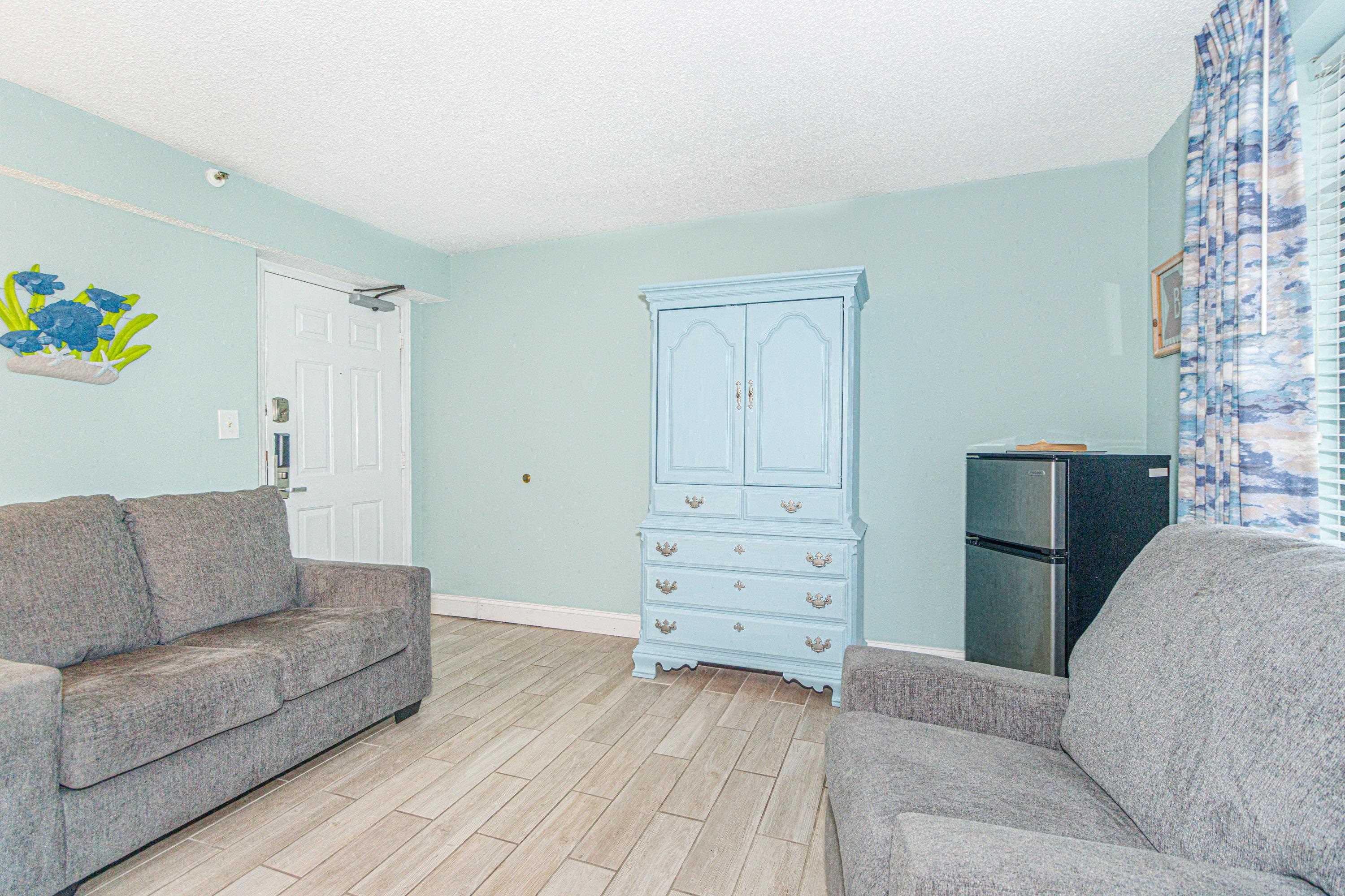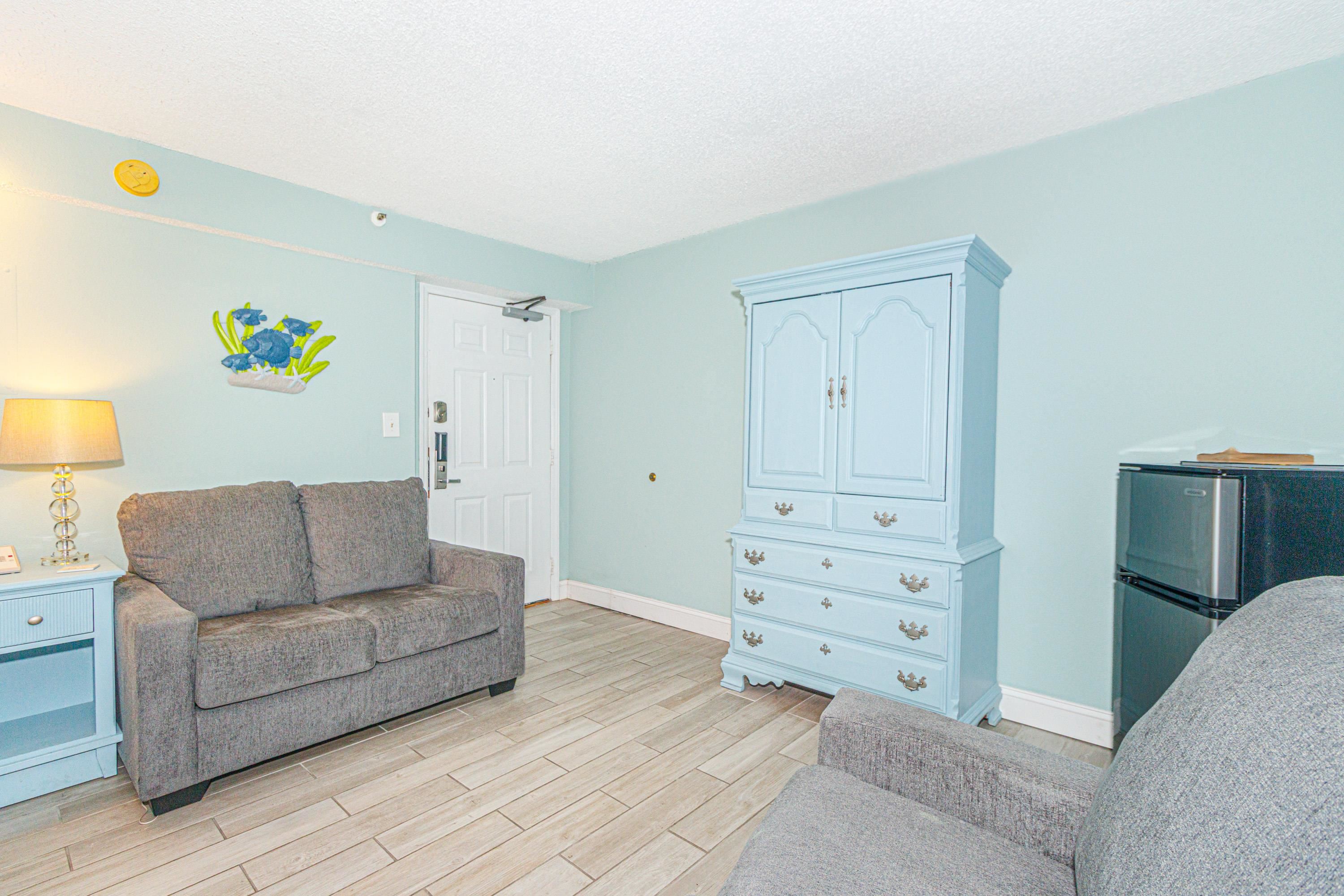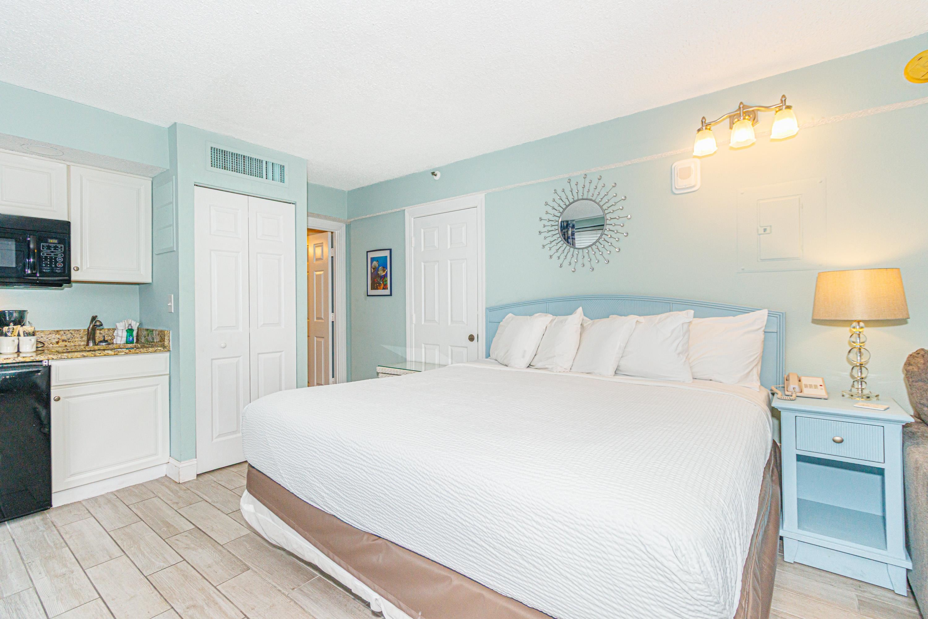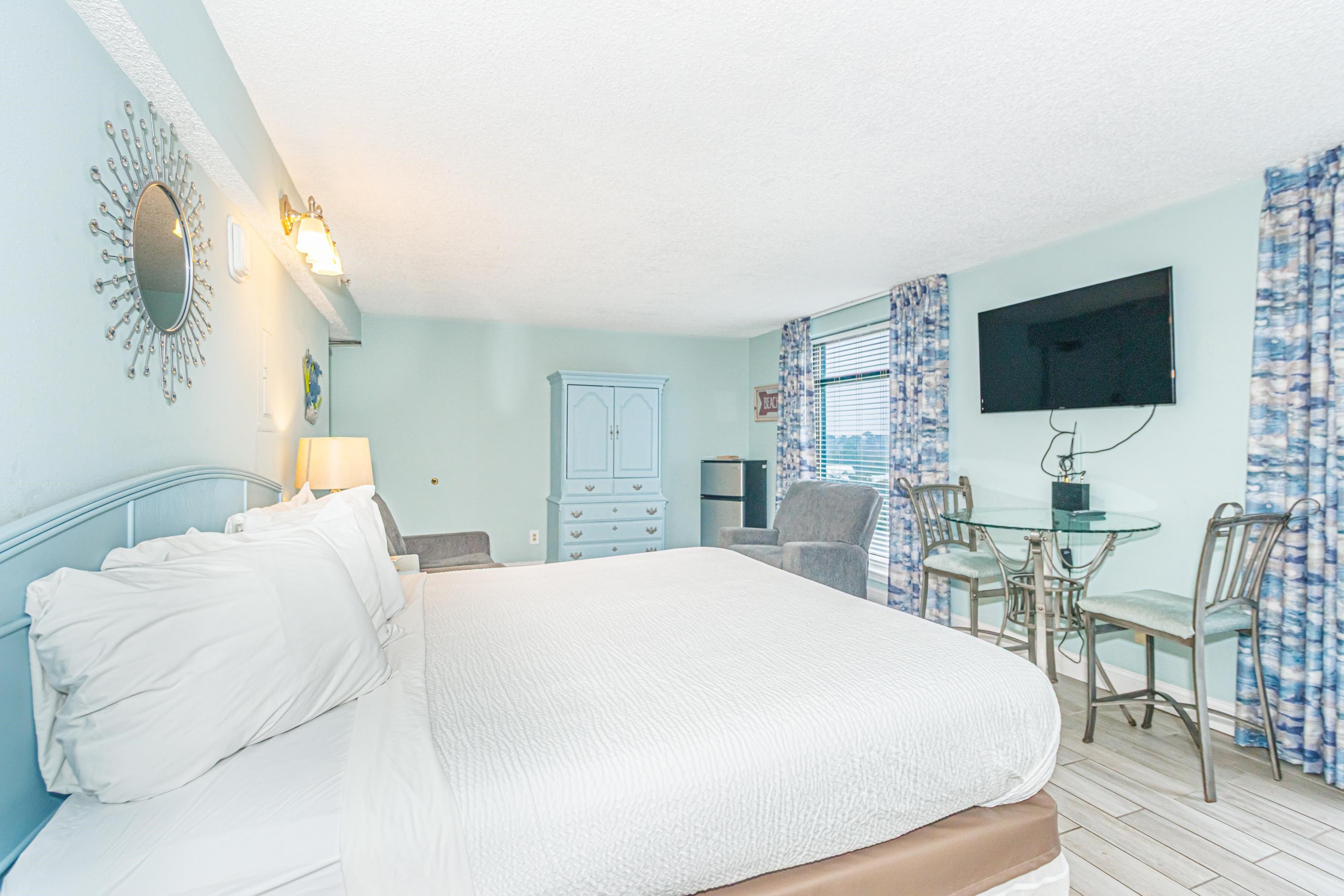 Rare Find a Diamond! Looking for your next Myrtle Beach investment property or vacation home? Well, look no further. This newly renovated efficiency unit is ready for a new family to enjoy! Featuring a small kitchenette, a king-size bed, a full bathroom with a shower and tub, and facing an ocean view that is just perfect for watching the sun rise daily. Beach Colony Resort is located in the highly desirable ""Golden Mile"" area of northern Myrtle Beach. With multiple indoor and outdoor pools, hot tubs, a game room, an exercise room, and an onsite restaurant and bar, there is something for everyone to enjoy.