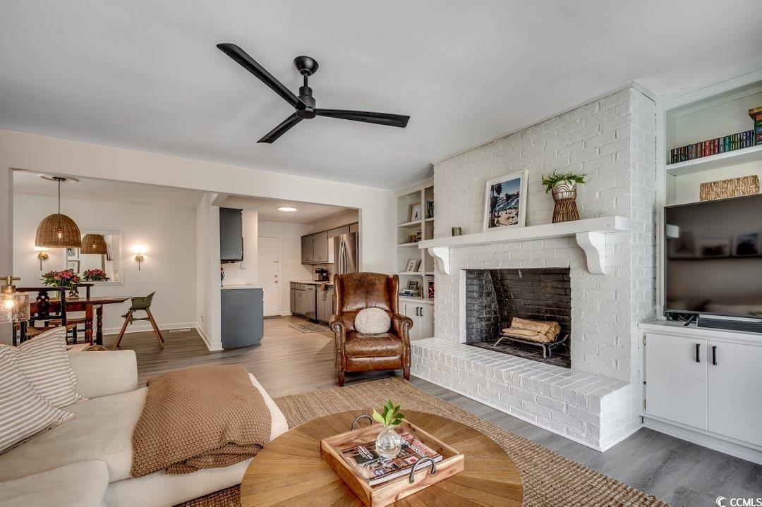 Desired Pine Lakes - this is your chance to own a completely renovated, turn-key home less than half a mile from the beach! Step inside to an updated kitchen featuring stainless steel appliances, granite countertops, and a striking tile backsplash. Relax in the open living area by the cozy fireplace or in the front room with expansive windows overlooking the front yard. The dining room offers plenty of space for family gatherings. The spacious master suite includes two closets, abundant natural light, and a beautifully renovated en-suite bath. The additional 2 bedrooms also have new windows and lots of light. Floors throughout are LVP and tile, combining style with durability. Entertain on your porch in the large, private backyard featuring beautiful trees and a new privacy fence. With upgraded landscaping, a spacious two-car garage, and plenty of driveway parking, this home has it all. Nestled on a quiet street, yet walking distance to Myrtle Beachs finest restaurants, shops and grocery and of course our gorgeous beachthis home is the perfect blend of coastal convenience and modern living.