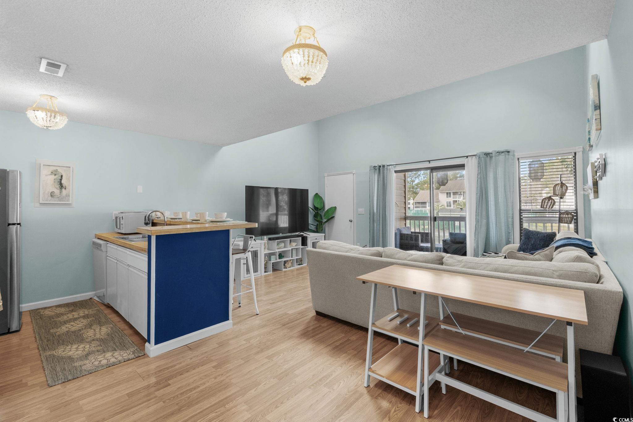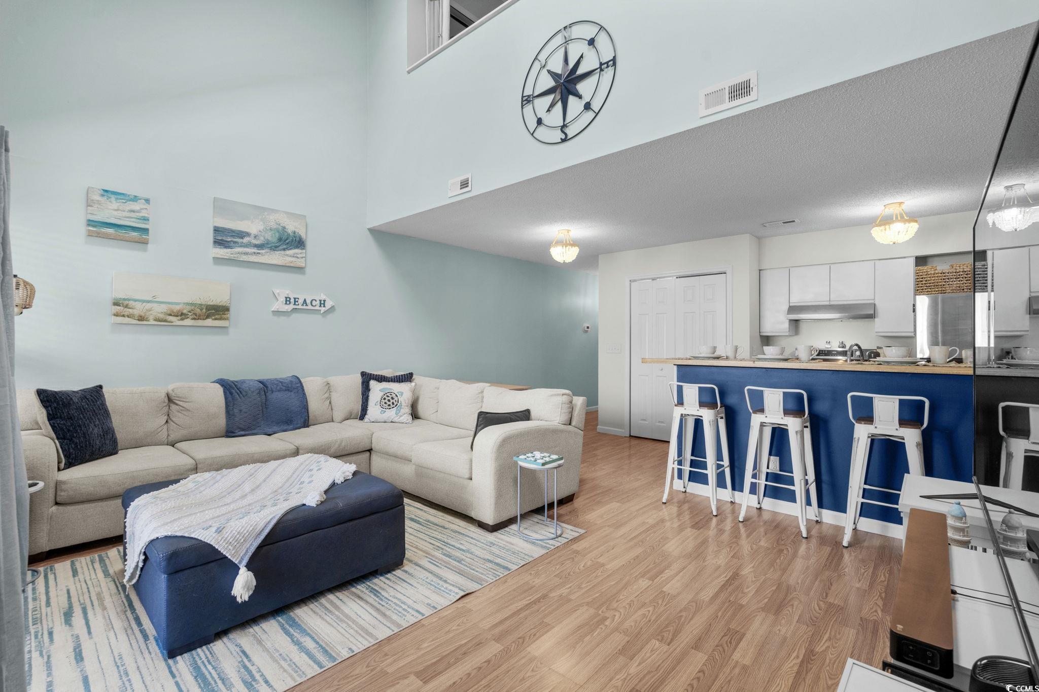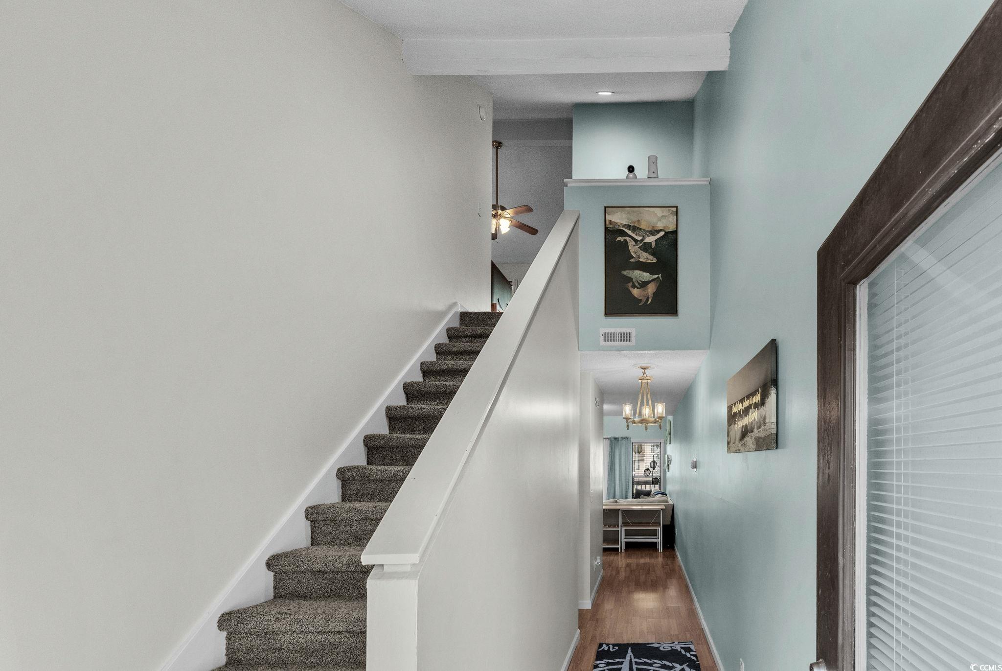 If youre searching for a tastefully decorated, fully furnished condo near the beach that wont break the bank, this charming 2-bedroom, 2-bathroom home in Little River Inn Resort is the perfect fit. Completely turnkey and move-in ready, this condo offers comfortable accommodations for at least six people and features updated fixtures throughout. The first floor welcomes you with an open-concept living room and kitchen, creating an inviting space ideal for entertaining. Laminate flooring flows throughout this level, with tile in the bathroom. The living room features vaulted ceilings, skylights, a ceiling fan, and a large storage closet, and it opens to a spacious rear porch overlooking the community tennis courtsgreat for relaxing outdoors. The kitchen offers mostly stainless steel appliances, a breakfast bar, and a pantry, while the first-floor bedroom includes two beds and a ceiling fan. The full bathroom on this level includes an updated vanity and a shower/tub combo. Upstairs, the second-floor loft suite offers a cozy and private retreat. This carpeted space includes an office nook, vaulted ceiling, ceiling fan, his-and-hers closets, and built-in open shelving. The ensuite bathroom features tile flooring, an updated vanity, a linen closet, and a shower/tub combo. Youll also appreciate the walk-in access to the floored attic, providing excellent additional storage. The condo is being sold mostly furnished, including a stackable washer and dryer, making the transition into your new home even easier. Little River Inn Resort offers wonderful community amenities such as two sparkling pools and a tennis court. Whether youre looking for an investment opportunity, a full-time residence, or a second home near the coast, this condo truly checks all the boxesand with short-term rentals allowed, the possibilities are endless. Schedule your visit today and discover coastal living at its best!