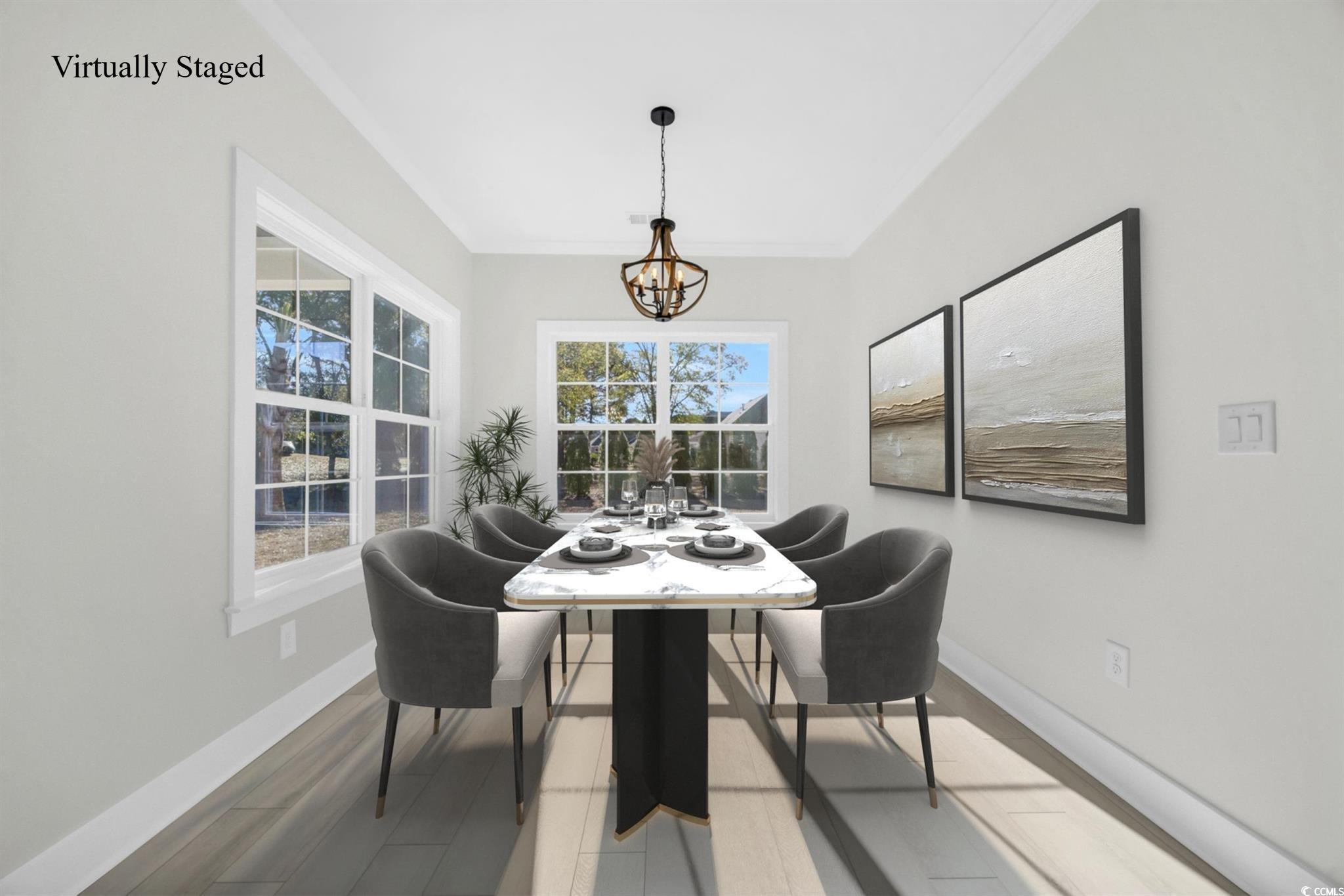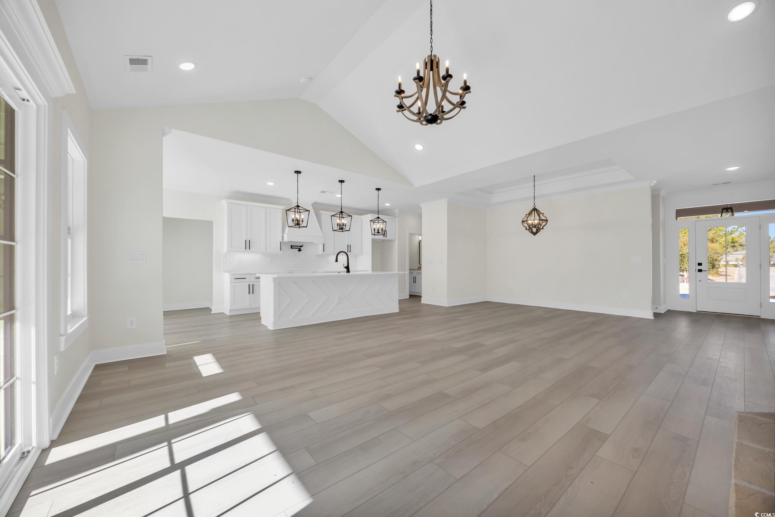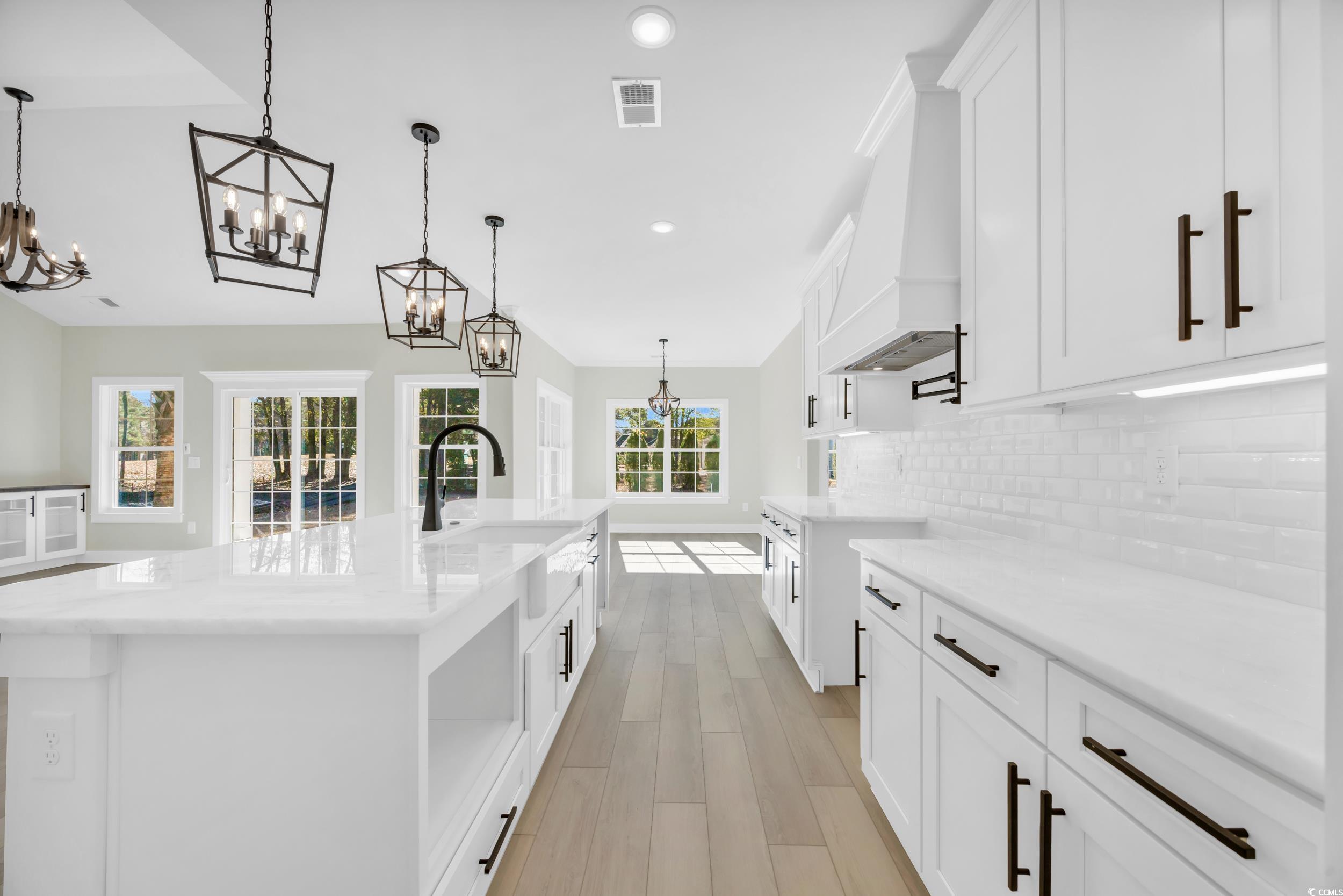 Welcome to Legends Resort, an award-winning golf course community in Myrtle Beach. This beautiful, move-in ready three-bedroom, two-and-a-half-bath home is a true Southern charmer, featuring fiber cement siding with board and batten accents and a brick faade. Nestled in a mature setting behind the 13th hole, a par 3 on the Parkland Course, this home offers both privacy and picturesque golf course views. Enter through the covered portico into a spacious open-concept floor plan highlighted by a large great room with an expansive vaulted ceiling, a gas fireplace, and doors leading to a covered rear veranda complete with a natural gas connectionperfect for entertaining while overlooking the 13th green. The gourmet kitchen is designed for both function and style, featuring a large work island, breakfast bar, built-in microwave, custom range hood, pot filler, and under-cabinet lighting. Many appliance selections remain customizable, with dual fuel options availableask your Realtor for details. Designer finishes include soft-close cabinetry, black matte hardware, and modern fixtures. Multiple dining options make entertaining easy, with a breakfast nook offering scenic backyard views and a semi-formal dining room featuring custom lighting, ample seating, and a tray ceiling with LED accent lights. The spacious primary suite includes a tray ceiling with LED lighting and an elegant en-suite bath with a private linen closet, oversized custom-tiled zero-entry shower, double vanity with solid surface counters, private water closet with bidet, freestanding garden tub, and a large walk-in closet. Conveniently located off the kitchen are a large pantry, powder room, and hallway leading to two additional guest bedroomseach with ample closet spaceand a full guest bath. The laundry room, complete with utility sink and washer/dryer connections, provides access to the two-car attached garage. Additional features include a tankless water heater, irrigation system, luxury vinyl and tile flooring, and ceiling fans throughout. The Amenity Center is just steps away, offering an exercise room, game room, resort-style pool, tennis and basketball courts, playground, bocce ball, and more. Residents also enjoy access to the three Legends championship golf coursesParkland, Heathland, and Moorlandalong with the expansive clubhouse, restaurant, pro shop, Classic Swing Golf School, and extensive practice facilities. After a round of golf, enjoy a cold beverage at Alisa Pub, then return home to relax on your veranda and take in the view. Conveniently located near shopping, dining, entertainment, the beach, and Myrtle Beach International Airport, this home combines resort-style living with everyday comfort. Some photos in this listing have been virtually staged.