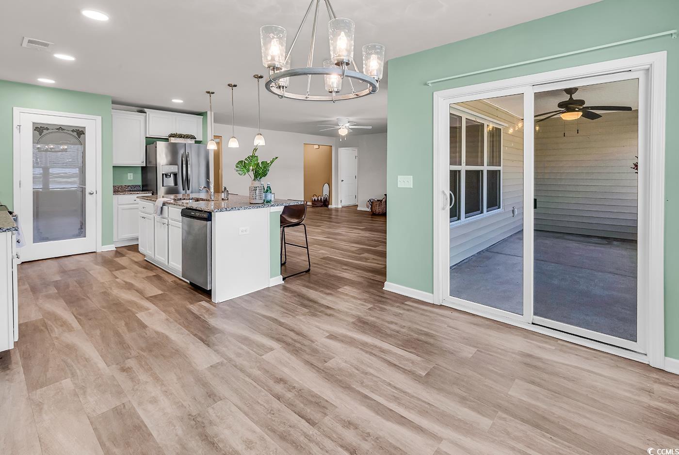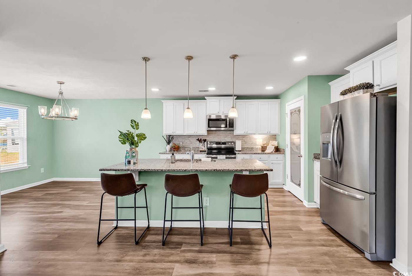 Welcome to this charming 3-bedroom, 2-bath split-floor-plan home located in a beautifully kept community just minutes from Cherry Grove Beach. Sitting on one of the largest lots in the neighborhood, this property offers privacy, mature landscaping, and peaceful pond views. Step inside to a bright and open layout featuring a spacious living area and an extra-large primary suite with an impressive walk-in closet. The well-appointed kitchen includes a generous pantry and a new oven, offering plenty of storage and functionality for everyday living. Relax and unwind on the expansive screened-in porch and patio, perfect for enjoying the tranquil backyard setting. Additional features include a charming door chime, garage screen and window storm protectors. Home has been lovingly cared for with semi-annual HVAC maintenance and annual termite preventionshowing true pride of ownership throughout. Community amenities are abundant and include a pool, clubhouse, and fitness roomall with low HOA fees. Located less than 10 miles from the stunning shores of Cherry Grove Beach, this home offers both convenience and coastal living at its best.
