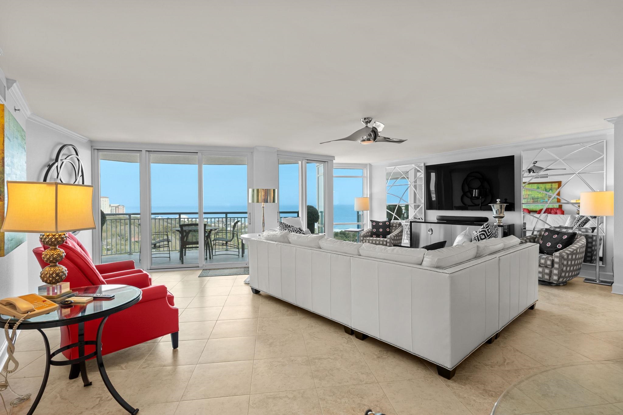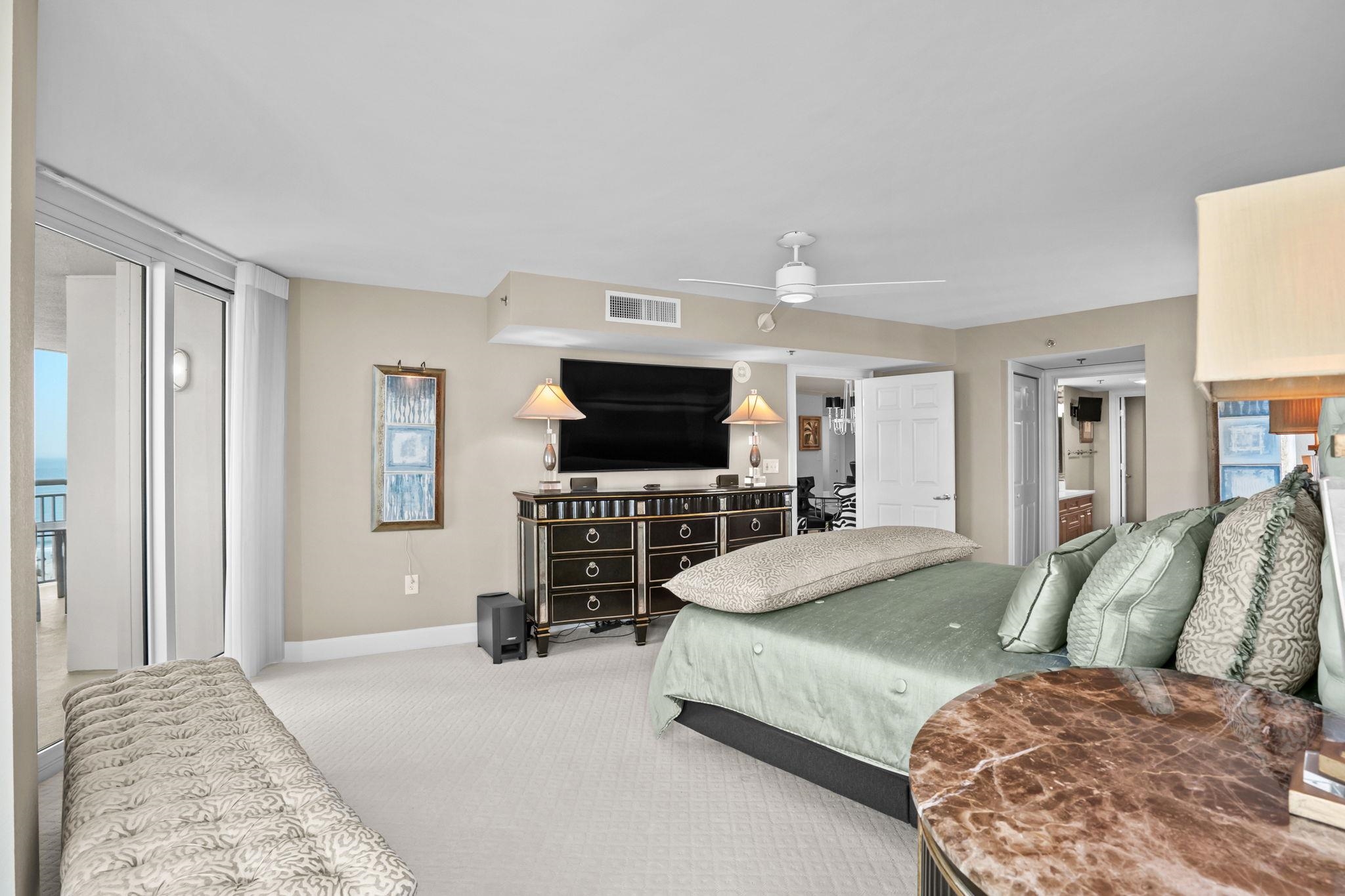 ENJOY YOUR OCEAN VIEWS! Nicely updated: New quartz countertops and freshly painted. The owners converted this 3-bedroom condo into a 2-bedroom unit to create a luxurious family room. All it takes is one wall to be added, and you have a 3-bedroom, and the seller is willing to pay to have that done if the buyer wants a 3-bedroom, or to pay a year of HOA fees. When you walk in, the first thing you notice is the spectacular Ocean Views from this spacious, redesigned floor plan, expanding the living room. The unit is a professionally award-winning designed Corner unit. This large 2-bedroom or 3-bedroom can be refigured and added-- 1 bedroom includes a King-size bed, and the other bedroom includes 2 queen-size beds and a total of 3 1/2 baths. The condo comes fully furnished with high-quality, top-name-brand furniture and exquisite artwork. This property makes sense for the investors who still want to use it as a lifestyle purchase. The kitchen has Stainless steel appliances, granite countertops, a breakfast bar, and best of all, views overlooking the entire room into the blue skies and Atlantic Ocean. You have modern style meets comfort with luxurious upgrades throughout, offering a bright, open layout ideal for both everyday living and entertaining. There are plenty of closets for storage and an owner's closet that has electric for storage right outside the main entrance to the unit for easy access for bikes, etc. The Horizon Building offers ample gated garage parking, key-card-secured elevators, and overnight security. Resort-style amenities include indoor and outdoor pools, a lazy river, a hot tub, a fitness center, and a rooftop terrace. The HOA covers nearly everything: electricity inside your unit, water and sewer, cable, internet, trash pickup, exterior structure insuranceeverything except your property taxes. This condo has only been used by the sellers as a second home and has never been rented. Nicely updated: new quartz countertops and freshly painted.