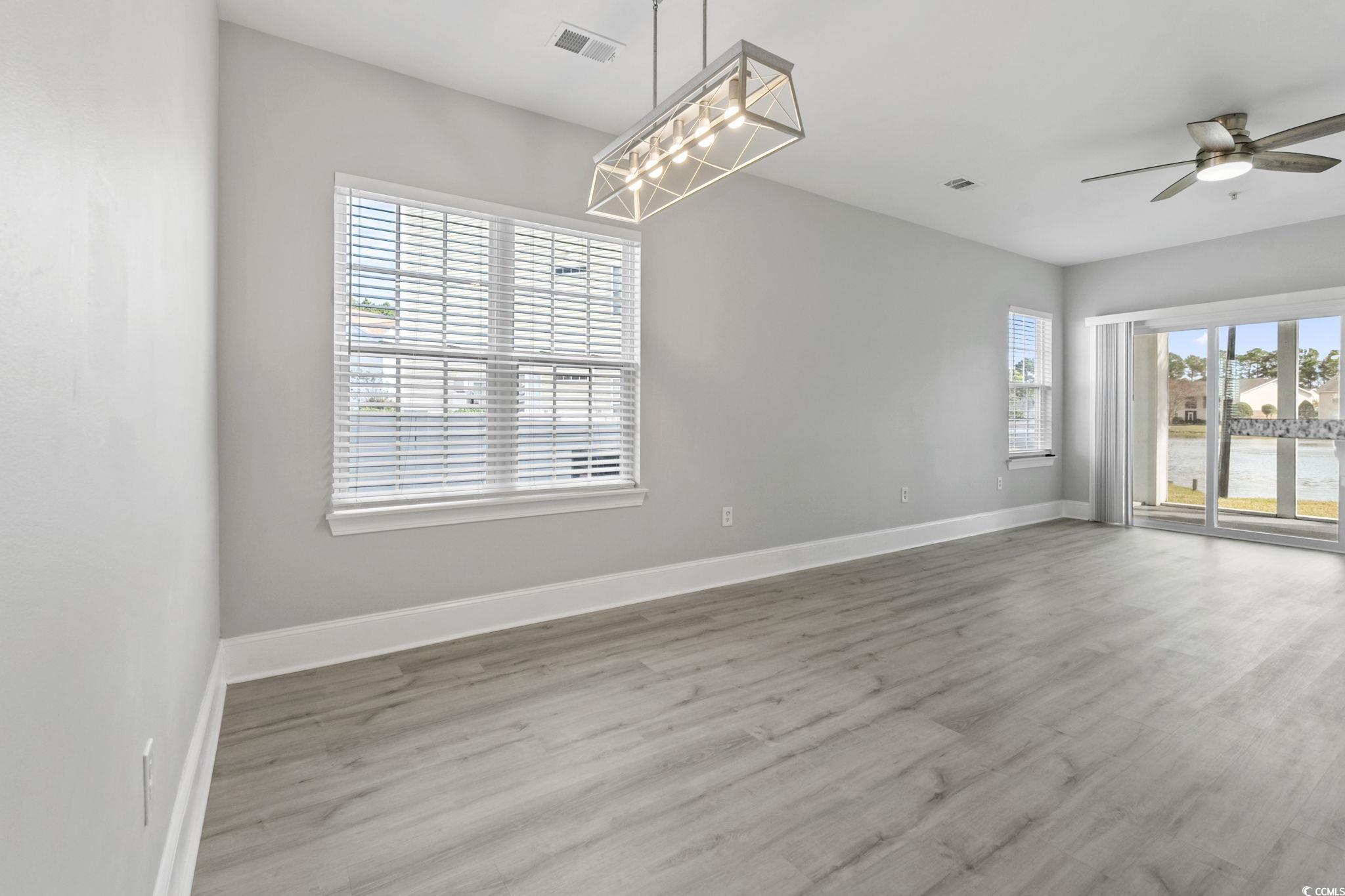 The perfect primary home or investment property awaits! Step into this beautifully updated first floor END UNIT; a 3-bedroom, 2-bath condo offering effortless living and expansive, direct pond views right from your screened-in porch. This move-in-ready unit features a fully remodeled kitchen, complete with brand-new cabinetry, granite countertops, and stainless steel appliancesperfect for everyday cooking or entertaining guests. Enjoy stylish, low-maintenance LVP flooring throughout the main living areas and the primary suite. Enjoy a split floor plan, maximizing privacy in your primary suite away from the other two bedrooms. The primary suite features two walk-in closets and a great sized bathroom with a ton of counter space, in addition to an oversized tub/shower. Both bathrooms have been refreshed with granite counters, modern lighting, and new mirrors, adding a touch of luxury to your daily routine. Relax on your private screened porch overlooking a huge pond, creating the ideal backdrop for morning coffee or sunset evenings. Additionally, enjoy your own storage closet, a new water heater installed just last year, and a separate laundry room with shelving above the washer and dryer! With first-floor convenience and thoughtful upgrades throughout, this condo is the perfect blend of comfort, style, and easy living. Fountain Point is a fantastic community located just 15 minutes away from the beach, and close to all of the fantastic dining and shopping that Myrtle Beach has to offer. Investors - this unit is turn key and would bring in great numbers as a long term rental! Dont miss the chance to make this updated condo yours!
