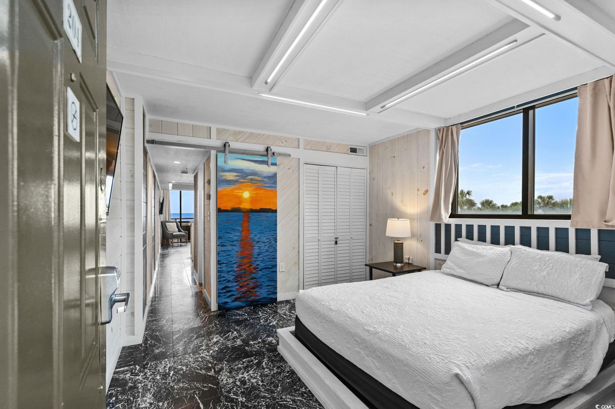You've GOT to see this one! Take a minute to peruse the pictures - and they don't even do justice to this beautifully designed and decorated 1 BR 1 BA oceanfront end unit condo! Gorgeous Features Throughout that you must see to believe! Experience luxury coastal living in this beautifully upgraded oceanfront condo at the highly desirable Meridian Plaza in Myrtle Beach. Located on the second floor, this stunning one-bedroom unit delivers breathtaking, unobstructed views of the Atlantic Ocean from the moment you walk through the door. Step inside to find marble tile flooring throughout, elegant shiplap wall accents, coffered ceilings with custom lighting, and granite countertops in both the kitchen and bathroom. The spa-inspired bathroom features a custom walk-in tile shower with a rainfall head, waterfall faucet, and an LED color-changing sink for a truly modern touch. Unique artistic details elevate this condo even further, including custom wall art and barn-door paintings created by a local artist. The living area is enhanced with remote-controlled LED color-changing lighting, perfect for setting the mood day or night. The kitchen is equipped with recently updated appliances, and the HVAC is just a few years old also! The Meridian Plaza offers everything you want in a premier vacation destination: indoor and outdoor pools, hot tub, tanning and lounge areas, private beach access, laundry facilities, and more. Centrally located, youre just moments away from the best dining, entertainment, and attractions Myrtle Beach has to offer. Whether youre seeking a high-end vacation retreat or a strong rental investment, this oceanfront gem checks all the boxes.