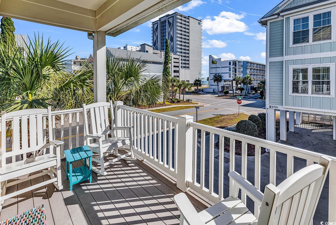 Have you ever imagined living at the beach with room for family and friends to visit? This is it!! Discover the perfect blend of coastal charm and modern comfort in this beautifully maintained third-row beach house in the heart of Myrtle Beach. Offering three spacious bedrooms and two and a half bathrooms, this bright and sunny retreat sleeps 8 and provides all the comforts of home. The large fully stocked kitchenwith its generous pantry and oversized closetflows effortlessly into open living and dining areas, creating an ideal space for entertaining family and friends. Upstairs, the primary bedroom features a private ensuite bath, while the additional two bedrooms share a well-appointed bath. The second- floor laundry is a huge plus. With an outdoor shower for rinsing off sand, storage closet for beach essentials, and parking for three cars under the home, convenience comes easy. Relax on the balcony with a peek at the ocean, stroll across the street to the beach or spend time floating in the community pool, which is directly behind this home. The Myrtle Beach airport is less than 1.5 miles away, making this coastal getaway incredibly easy to reach for owners and guests alike. With 60 miles of beach and more than 90 golf courses along the Grand Strand, there is truly so much to do. Whether you're seeking an excellent short-term or long-term rental opportunity, a primary residence, or a dreamy second home, coastal living doesnt get better than this.