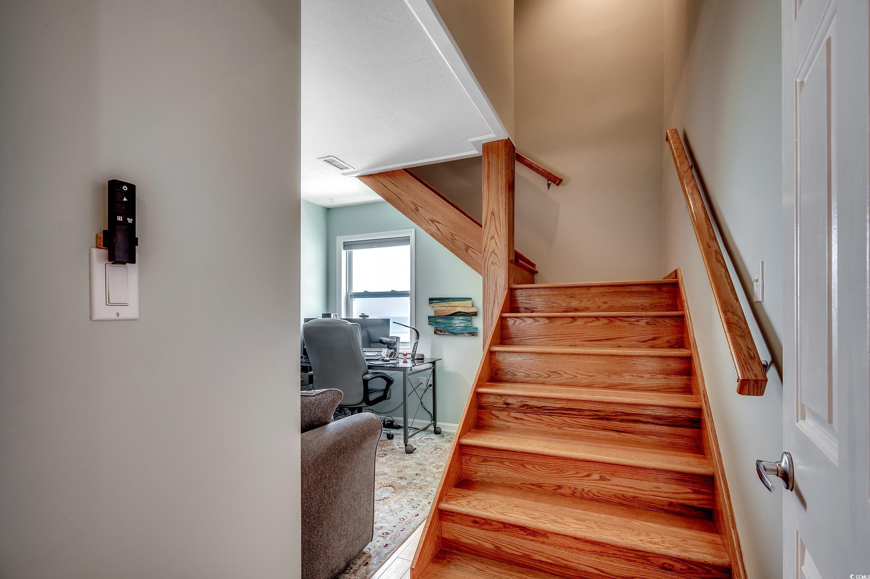 Congrats...you have found the rarest of them all! This direct oceanfront end unit located in The Lighthouse is unlike anything that you have ever seen before in Surfside Beach! Come watch dolphins from the large warm South facing balcony and enjoy the expansive view of the beautiful SC coastline! This furnished condo has an open concept with a split floor plan along with a wet bar and two large owner suites with an office space. This amazing condo is currently being used as a super comfortable full-time home! As you enter through the foyer, you will notice a spacious 14x19 living room with panoramic views of the water! The entire condo has been freshly painted, upscale lighting / ceiling fans have been installed, and the refrigerator was replaced this year! You will notice high-end bamboo flooring throughout along with crown molding and custom shades on all the windows. The oceanfront kitchen is one-of-a-kind. You can enjoy remarkable views while you are cooking and there is a bar along with stainless steel appliances and a convection oven with air frying capabilities. A modern faucet was added on the sink and there is a closet in the hallway that can be used as a pantry. The 11x12 owner's suite and an office space on the main level has a wonderful oceanview along with two closets and an attached bath with a walk-in shower. The laundry is located on the 1st floor and the washer/dryer will stay. There is a powder room downstairs for guests and an office space that could also be used as a third bedroom. This delightful area has a window overlooking the ocean and a sleeper sofa. The gorgeous hardwood stairs lead up to the massive 14x16 oceanfront primary bedroom where you can wake up and watch the sunrise over the water every morning! There is a big walk-in closet with custom built-ins along with an attached bath which has dual sinks and a nice shower. There is a 3x9 storage closet and an additional 6x20 space that is heated and cooled. Please keep in mind that all of this is on the top floor so you don't have to worry about noise from above or anybody else's plumbing leaking down into your unit. You can see the Surfside and Garden City piers from the oceanfront balcony and there is a secret entrance in the back. This unbelievable condo has been very well maintained. A new HVAC system was added this year, the hot water heater was done last year, and the roof was replaced in 2023 with architectural shingles. All of the windows and the sliding glass door have been upgraded and this building has concrete fiber siding with vinyl railing. This move-in-ready unit comes with two assigned parking spaces and golf carts / motorcycles are allowed. This building has super low hoas fees and there is a 4x8 storage room downstairs where you can keep all of your beach necessities. You can take a stroll on the scenic shoreline whenever your heart desires and you can go fishing at the Surfside Pier. Pets are allowed and there is a grassy area for them to play. This location is in very high demand and there has never been a unit go on the market in this building before. There are lots of delicious restaurants around here, bars with live music, and several top-notch golf courses to play. The Murrells Inlet Marshwalk is nearby along with Market Common and Garden City Beach. This is the one that you have been waiting for! It could be the perfect primary residence, second home, or a turnkey short-term rental investment. Schedule your showing today, and don't forget to check out the virtual tour! Square footage is approximate and not guaranteed. Buyers responsible for verification. Some photos and videos have been virtually modified.