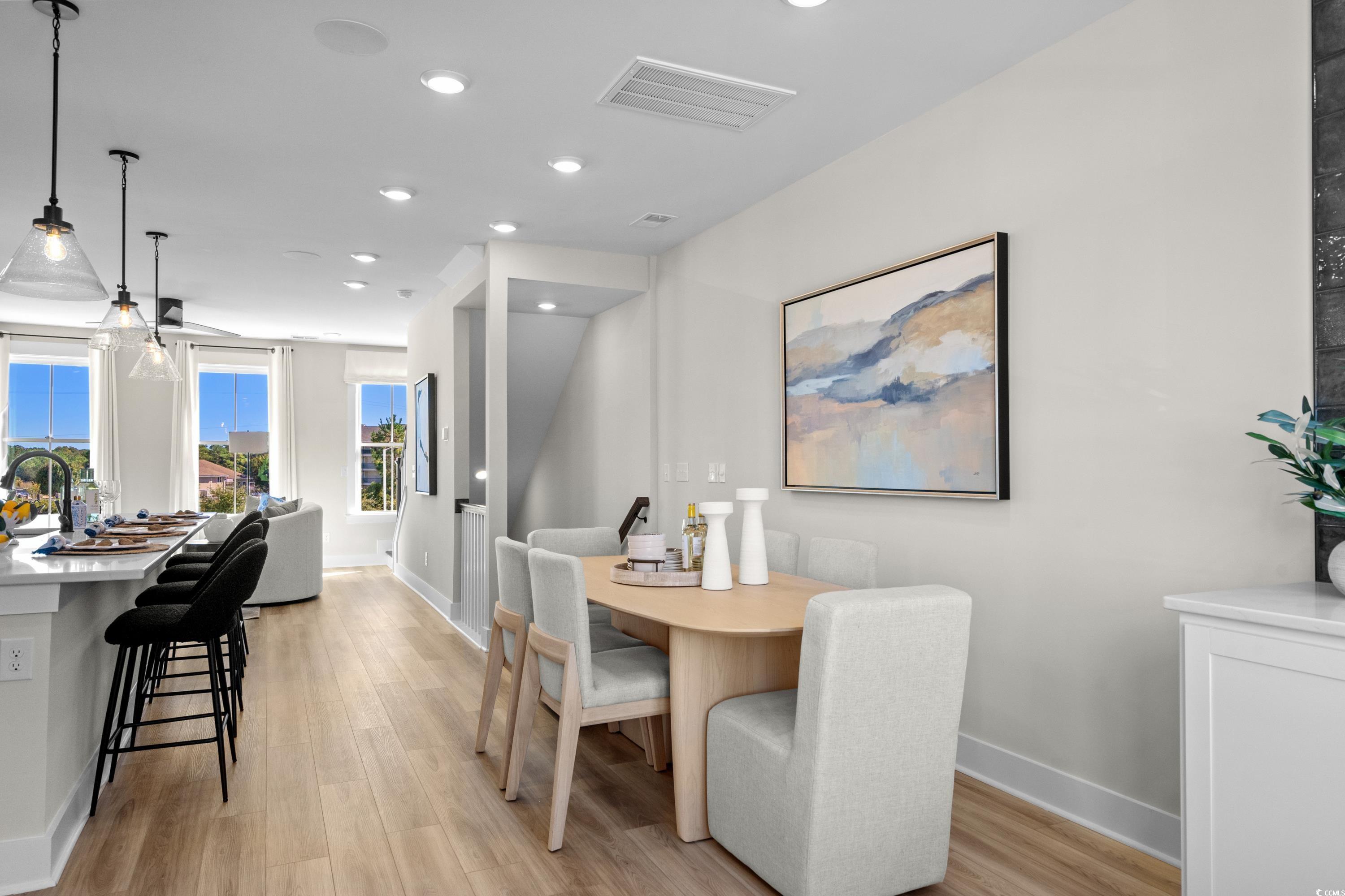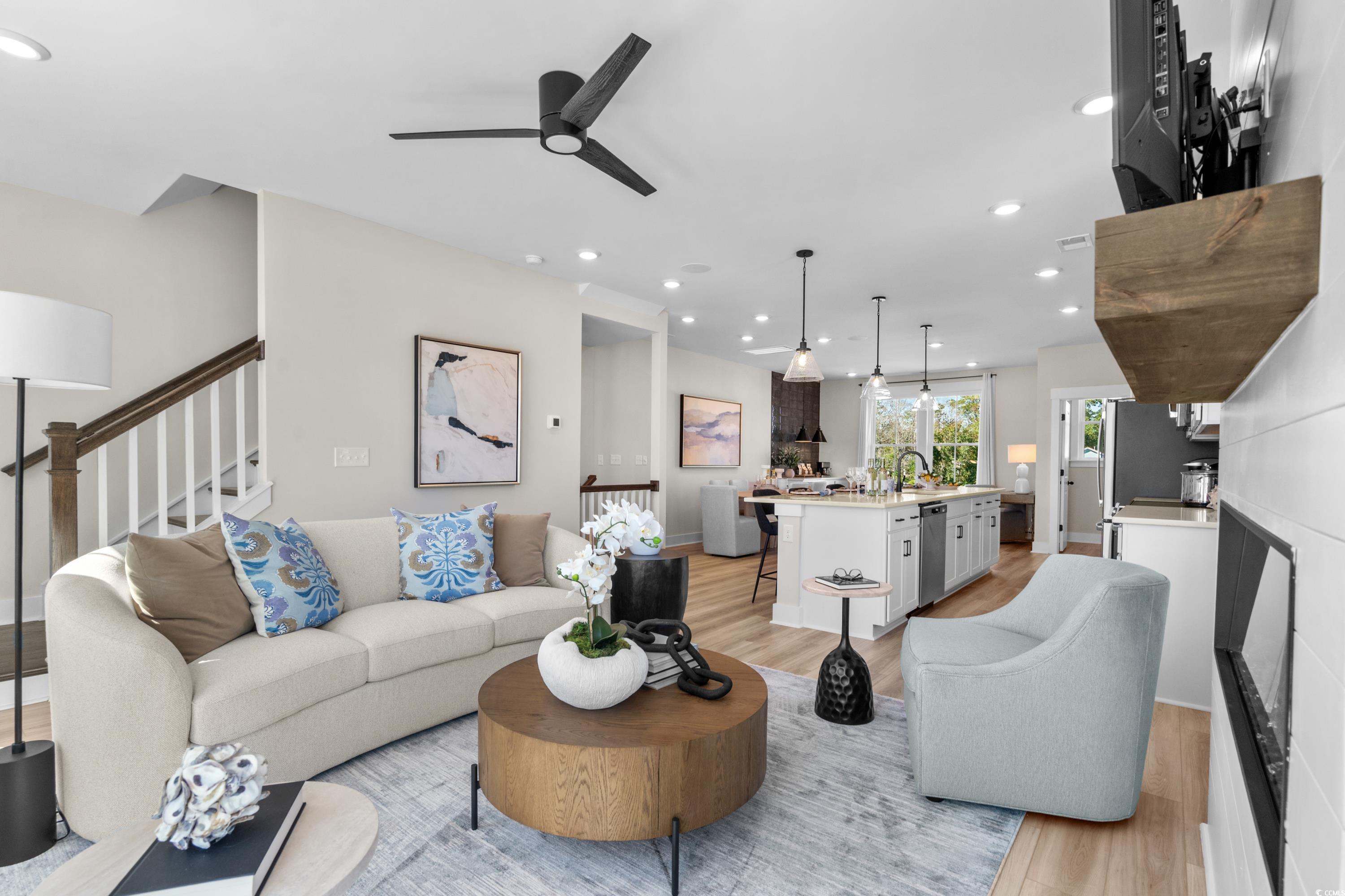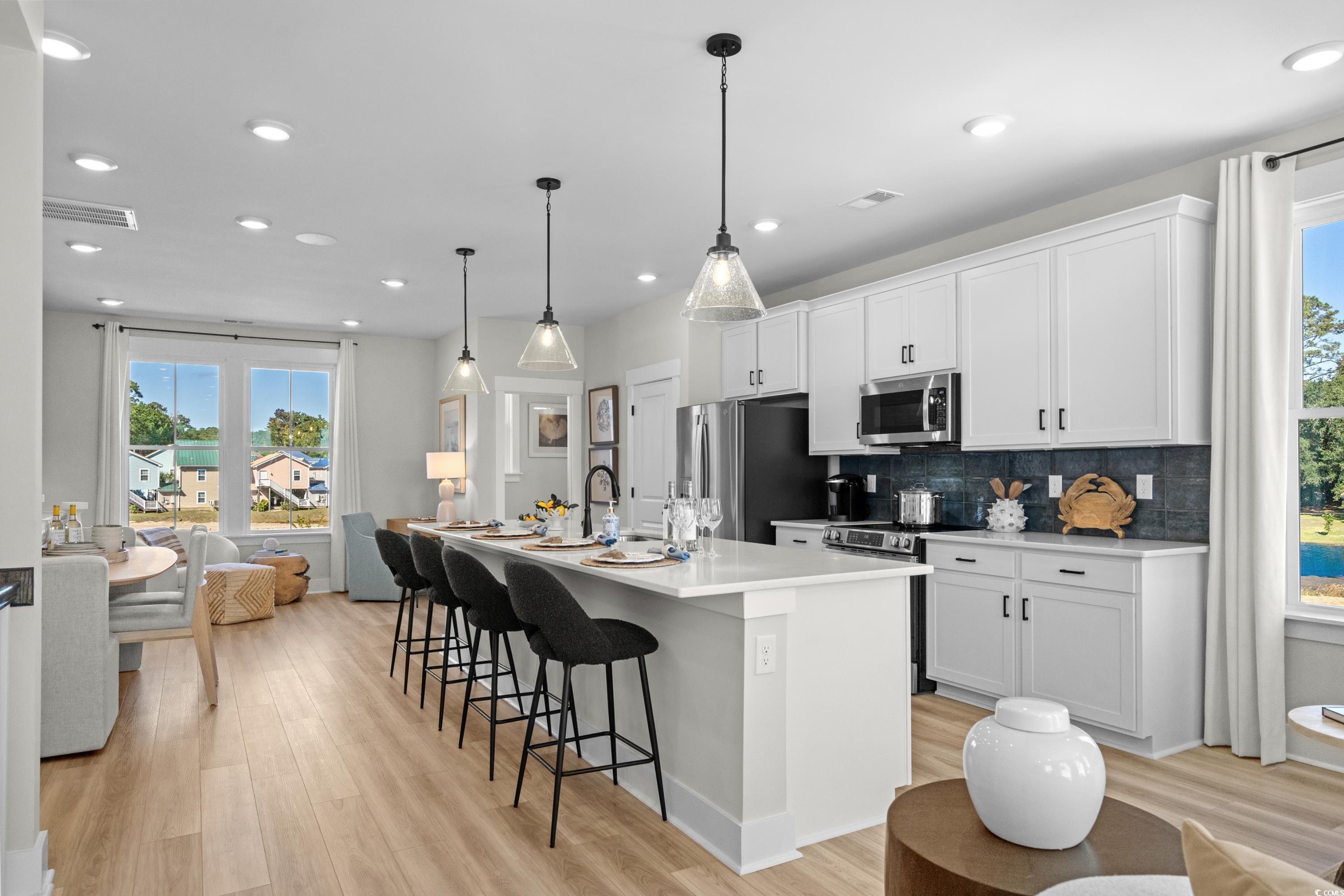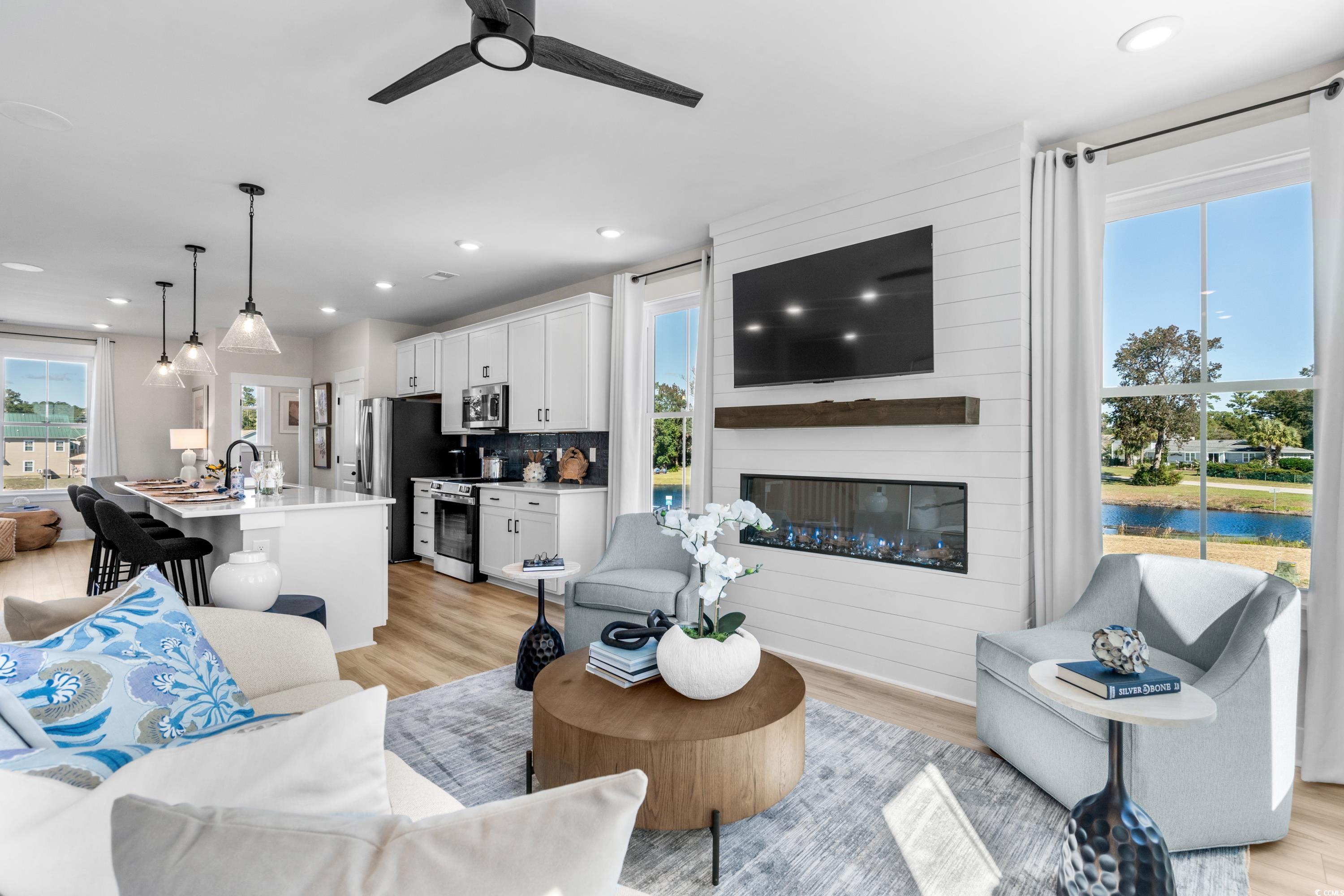 Discover this Brookgreen end unit with intracoastal waterway views!! A modern three-story 4 bedroom multilevel designed for flexible living. The main level features an open-concept kitchen with a large quartz countertop island overlooking the breakfast area, flex space, and family room. Black plumbing fixtures and hardware throughout. Upstairs, the primary suite includes two walk-in closets, dual vanities and an oversized tiled shower, with two additional bedrooms nearby. The entry level offers a guest suite for added convenience! LOCATION! LOCATION! The only new low maintenance multilevel condo community in Little River with direct access to marinas, restaurants, and more! Seabreeze Crossing is just steps from the Intracoastal Waterway and only minutes from the beaches of North Myrtle Beach. Featuring 56 beautifully designed homes, Seabreeze Crossing combines coastal charm, low-maintenance living with low condo fee, and an unbeatable locationideal for full-time residents, second-home buyers, or anyone seeking a relaxing beach retreat. *Photos are for representation purposes only