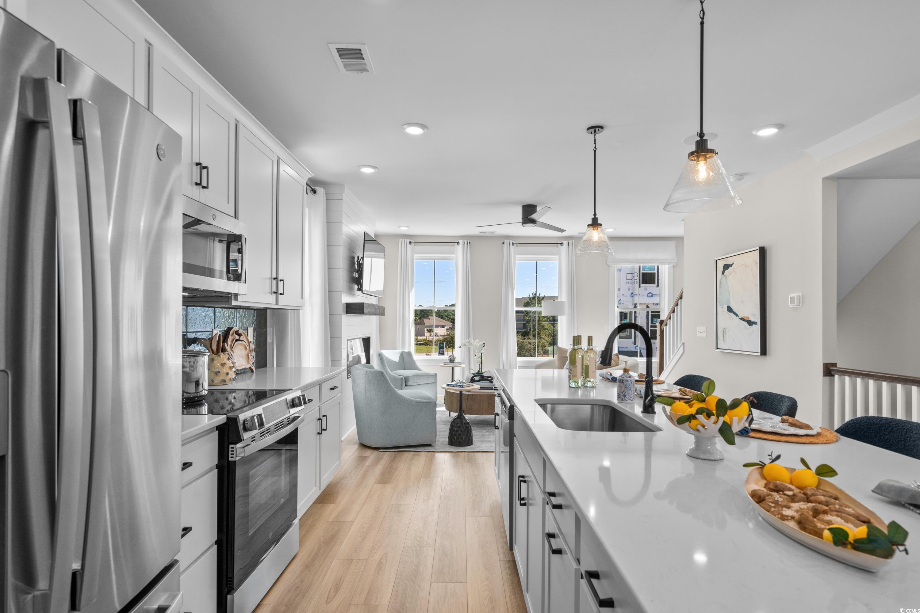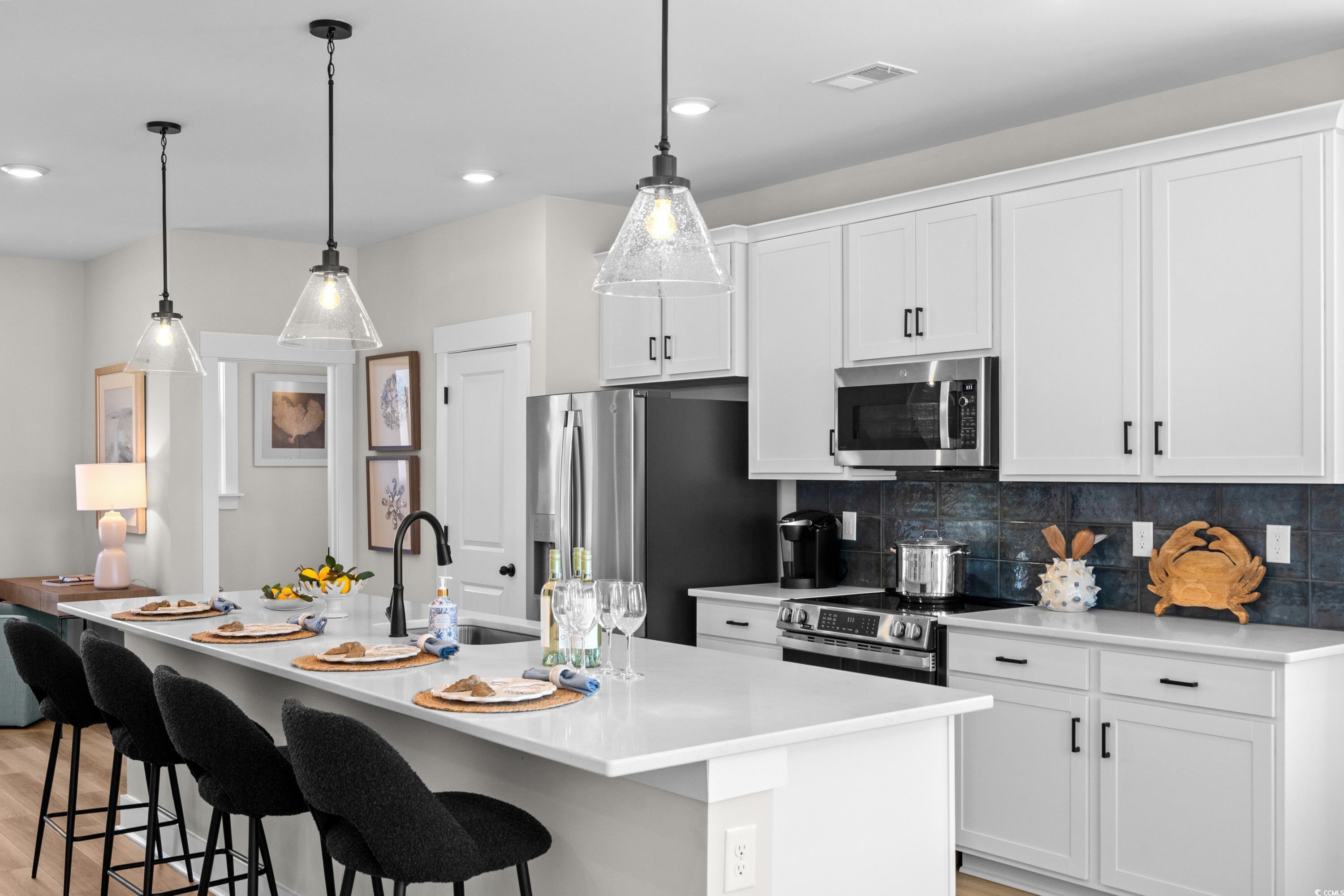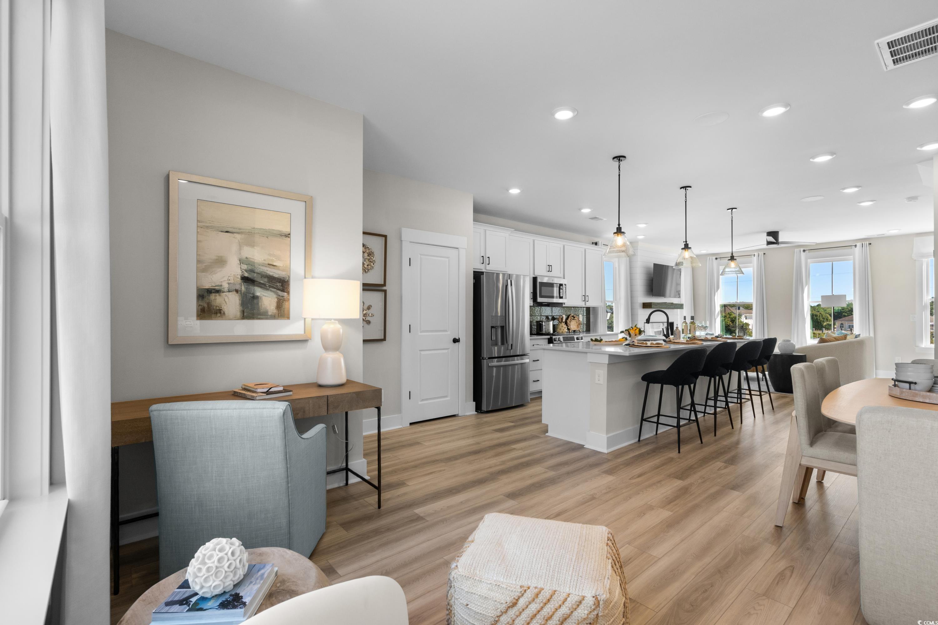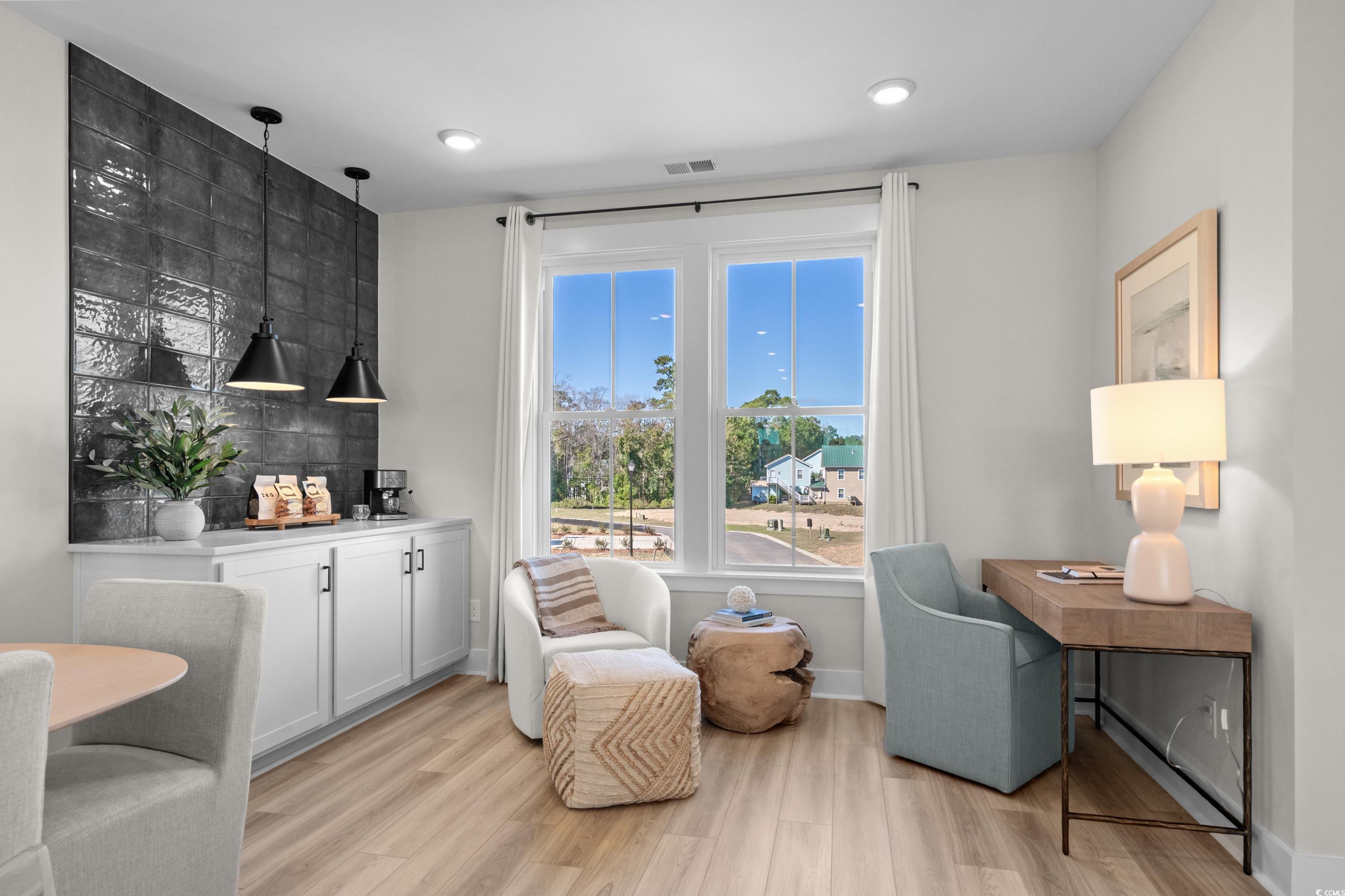 Discover this Brookgreen end unit with intracoastal waterway views!! A modern three-story 4 bedroom multilevel designed for flexible living. The main level features an open-concept kitchen with a large quartz countertop island overlooking the breakfast area, flex space, and family room. Black plumbing fixtures and hardware throughout. Upstairs, the primary suite includes two walk-in closets, dual vanities and an oversized tiled shower, with two additional bedrooms nearby. The entry level offers a guest suite for added convenience! LOCATION! LOCATION! The only new low maintenance multilevel condo community in Little River with direct access to marinas, restaurants, and more! Seabreeze Crossing is just steps from the Intracoastal Waterway and only minutes from the beaches of North Myrtle Beach. Featuring 56 beautifully designed homes, Seabreeze Crossing combines coastal charm, low-maintenance living with low condo fee, and an unbeatable locationideal for full-time residents, second-home buyers, or anyone seeking a relaxing beach retreat. *Photos are for representation purposes only