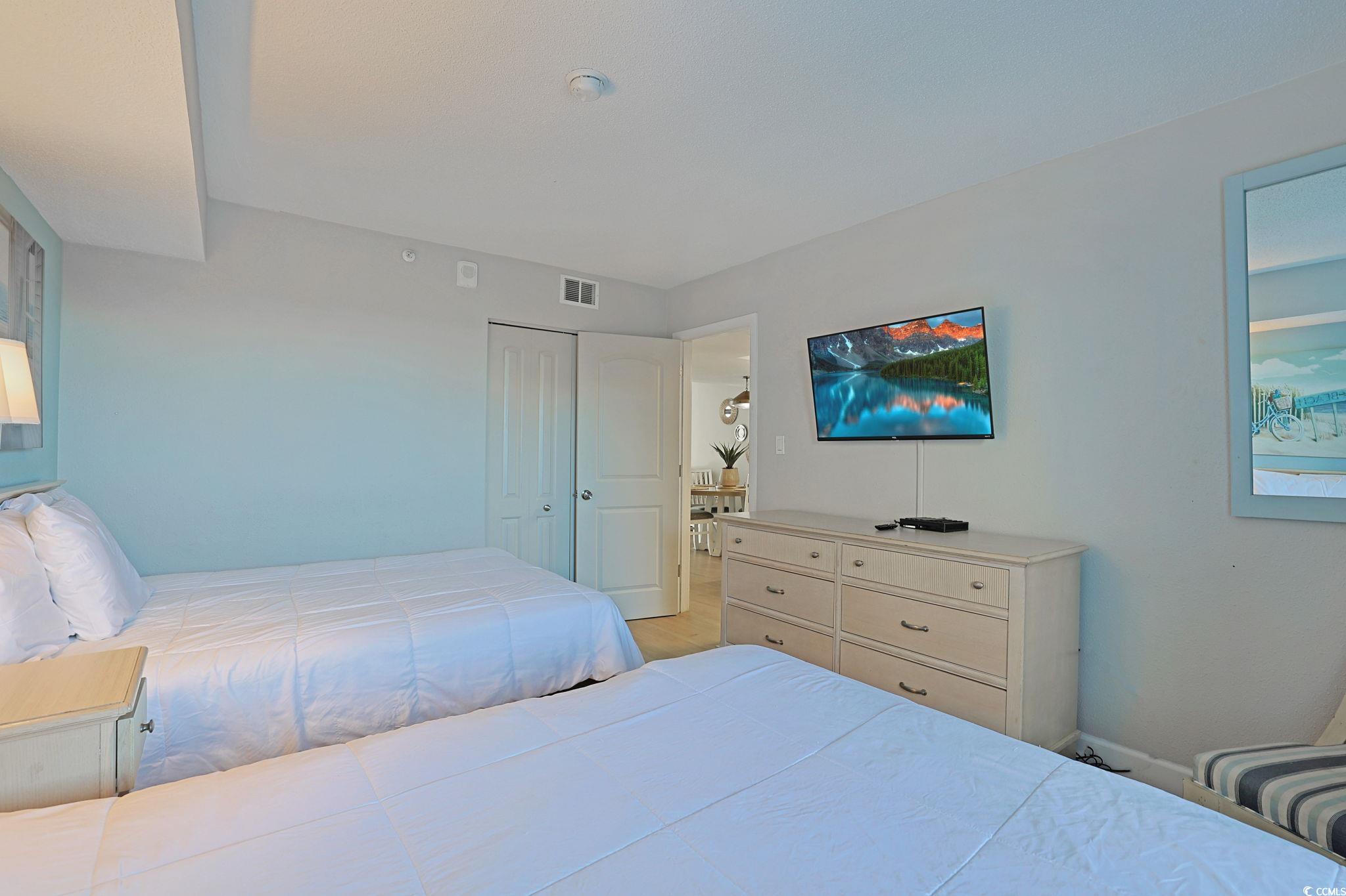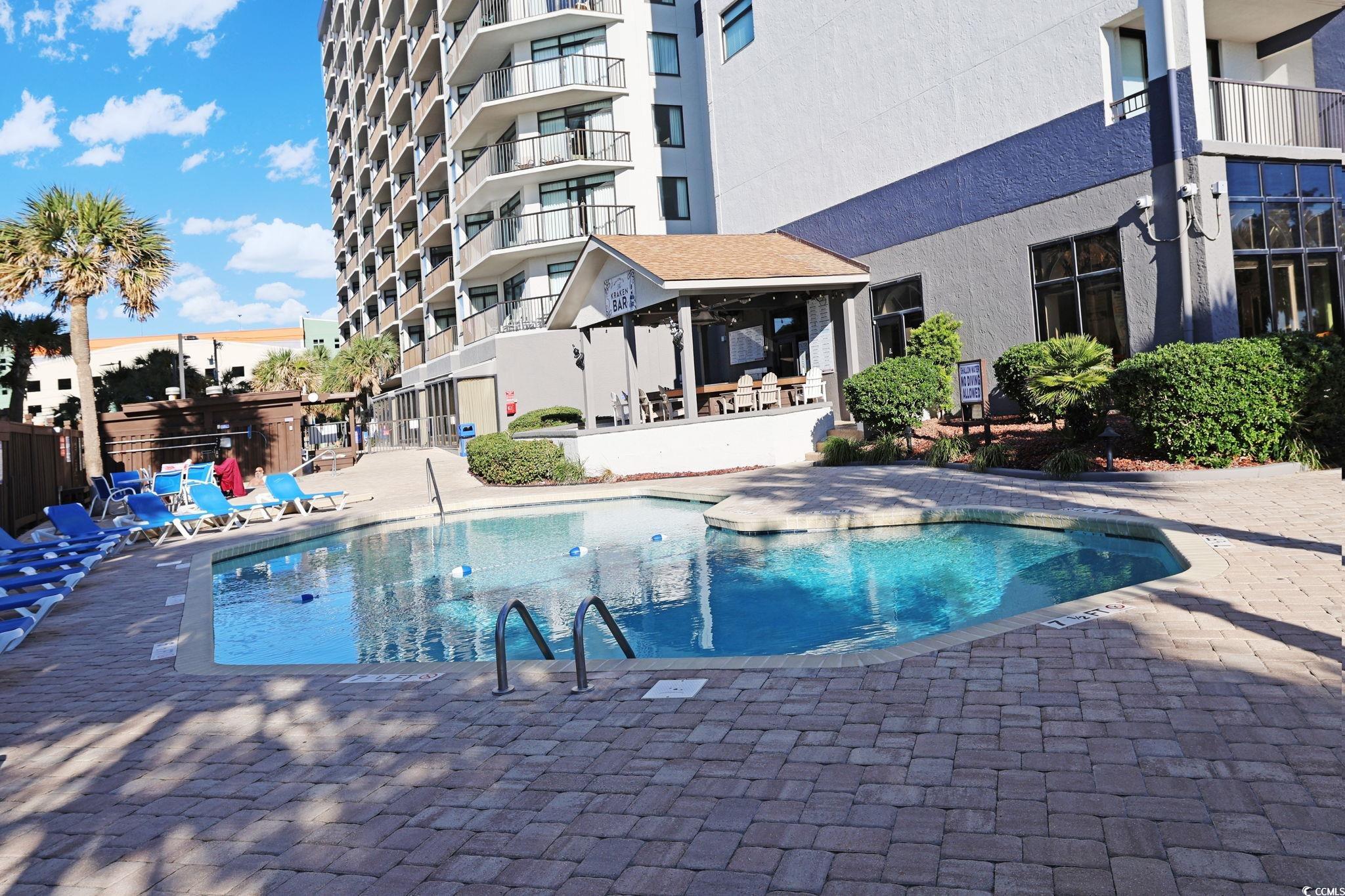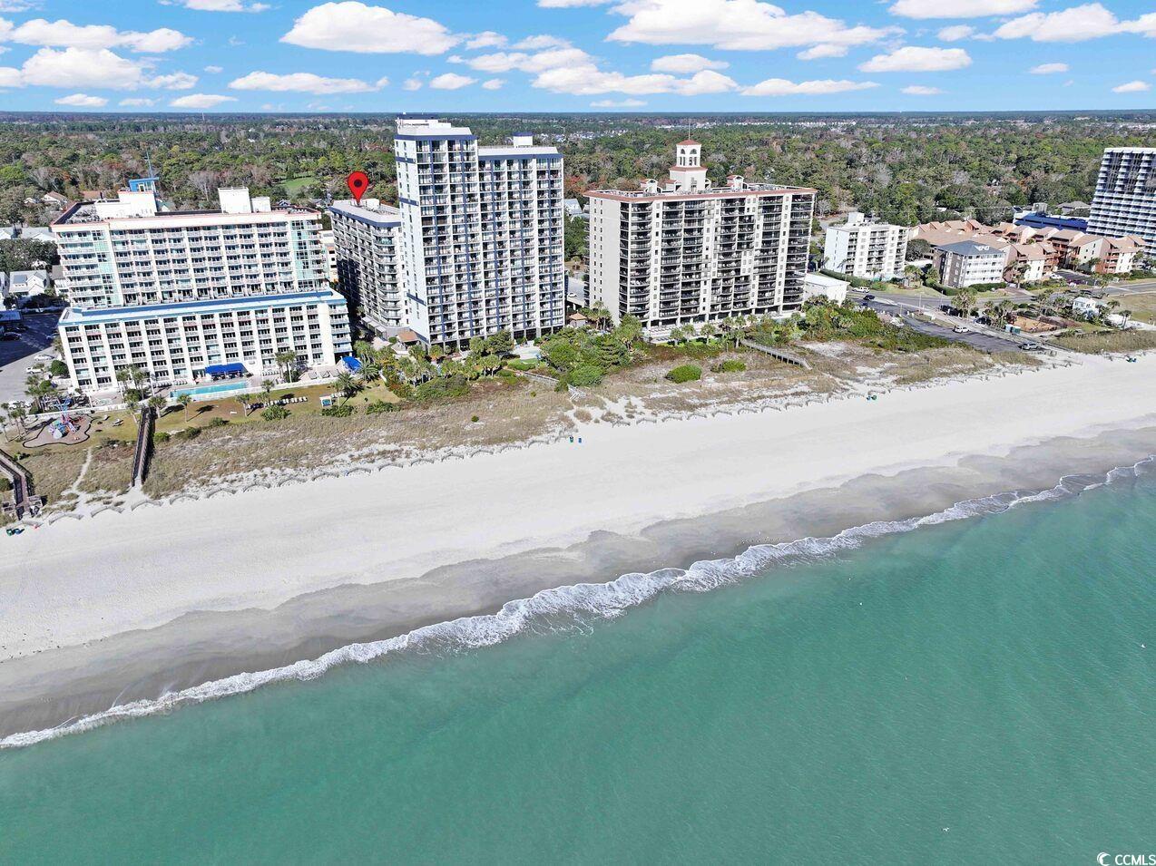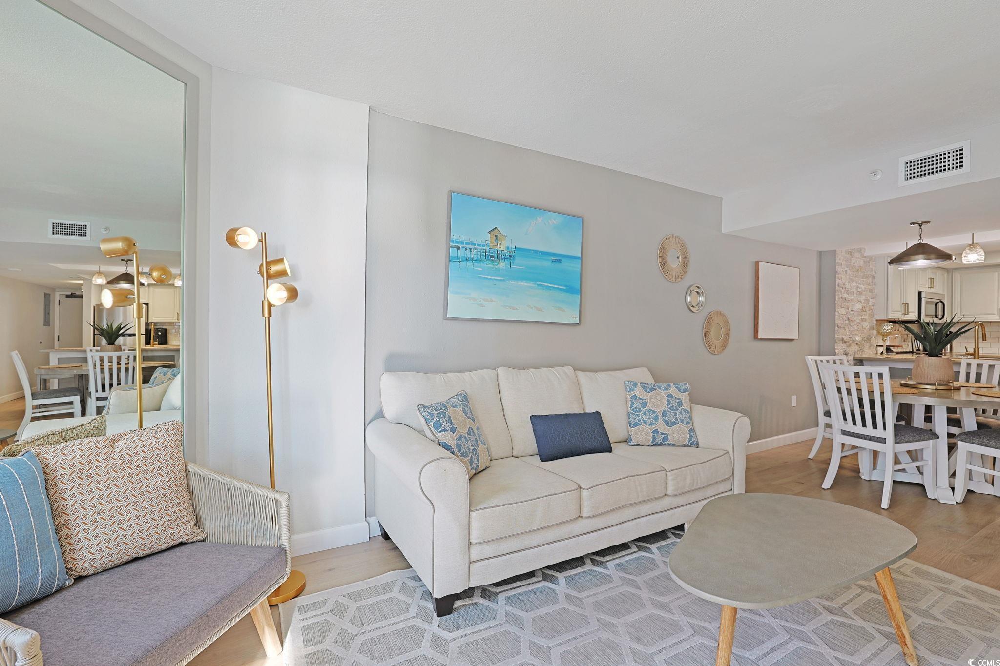 Presenting this welcoming & renovated 2 bedroom 2 bath condo that will be the gem you have been looking for in a place at the beach. This piece of paradise is located in the popular Beach Colony Resort complex. Take the elevator up to to this open floor plan condo that includes wood look LVP flooring, stylish furnishing, and a classic living/dining room combo that showcases a sliding glass door that opens up to the relaxing balcony with views & sounds of the waves breaking. The family-friendly kitchen is equipped with a stainless steel appliance package, granite counter tops, ample cabinet spaces, and a delight breakfast bar. The primary suite offers a double bi-fold door closet, a sliding glass door that leads out to the balcony, private access to the primary bath hosting a single sink vanity, a comfort station, a laundry closet with a stackable washer & dryer, and a timeless step-in shower. This delightful condo is finished with an additional bedroom and a full guest bath. This condo affords you easy access to the beach and golfing along with all of the other activities and happenings in Myrtle Beach including fun eateries, award winning off-Broadway shows, public fishing piers, and intriguing shopping adventures along the Grand Strand. Conveniently located to your everyday needs, including grocery stores, banks, post offices, medical centers, doctors offices, and pharmacies. Check out our state of the art 3-D Virtual Tour.