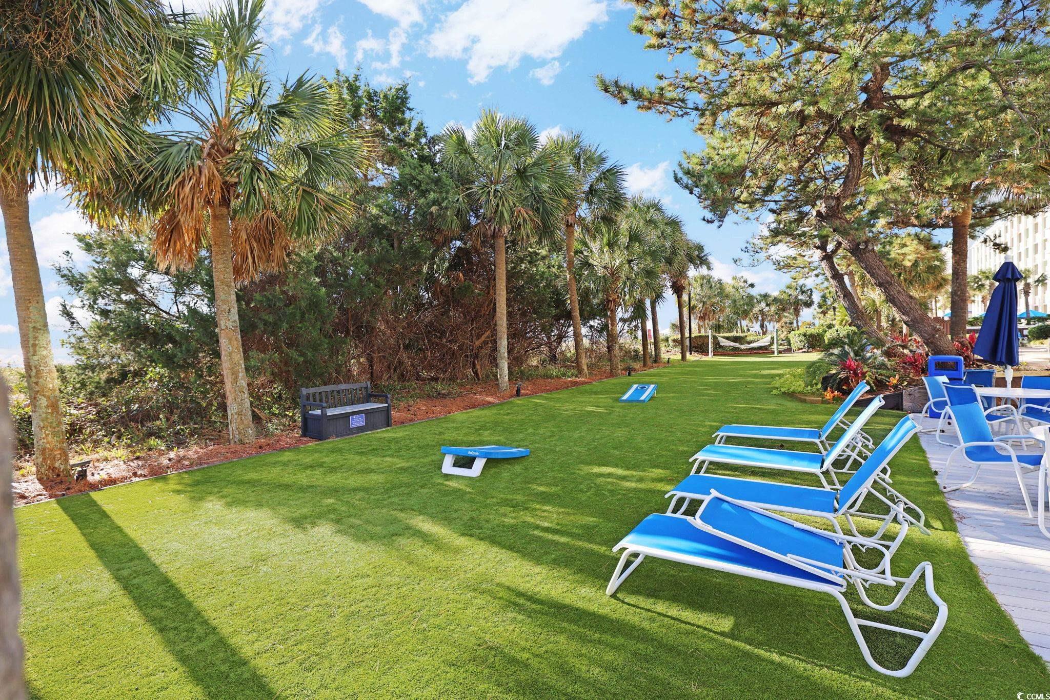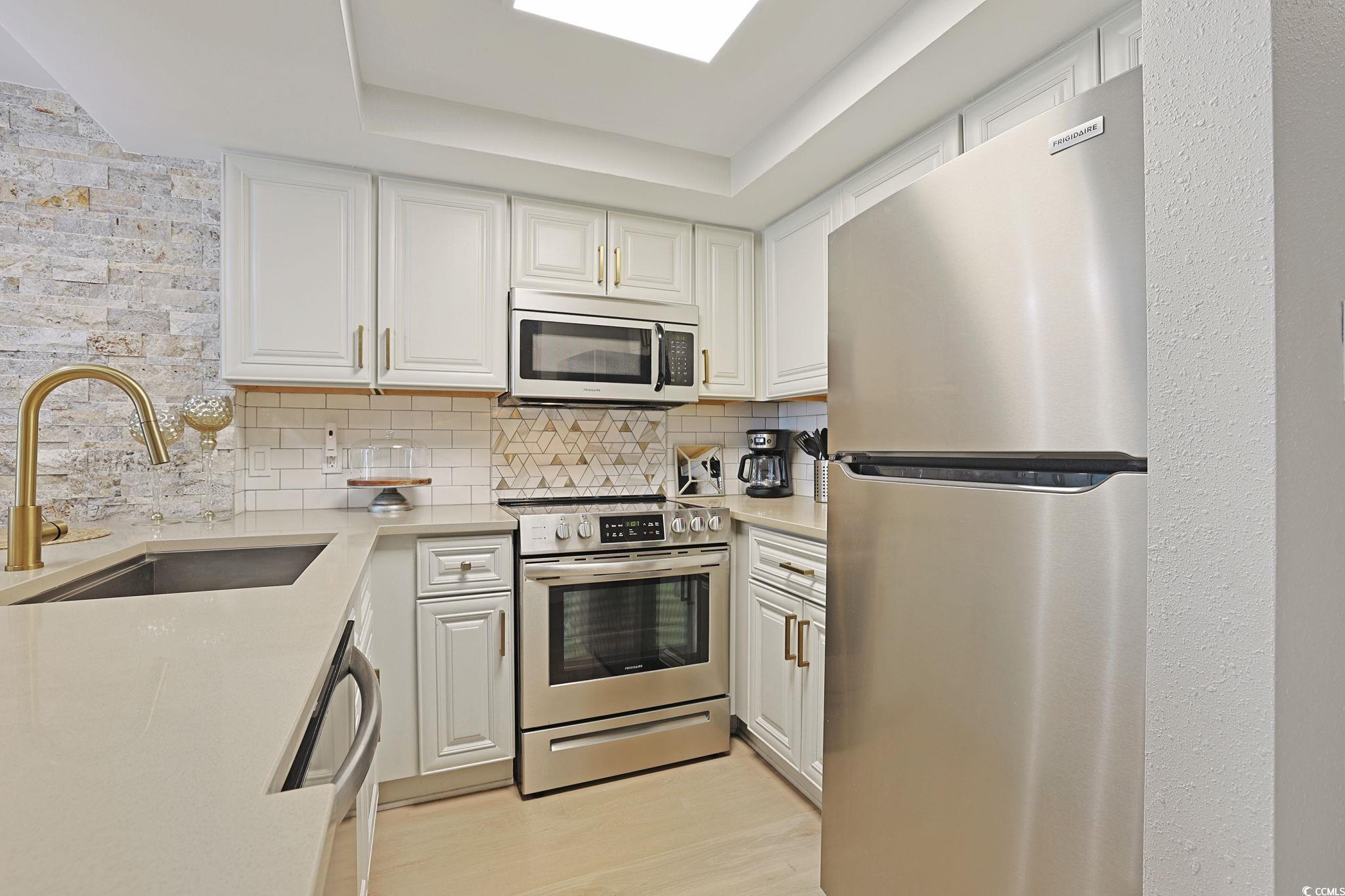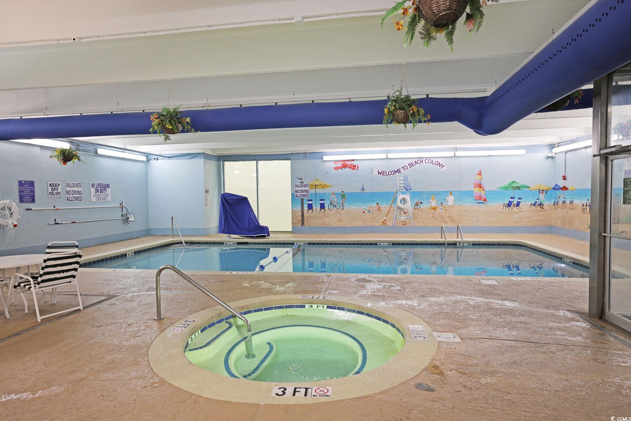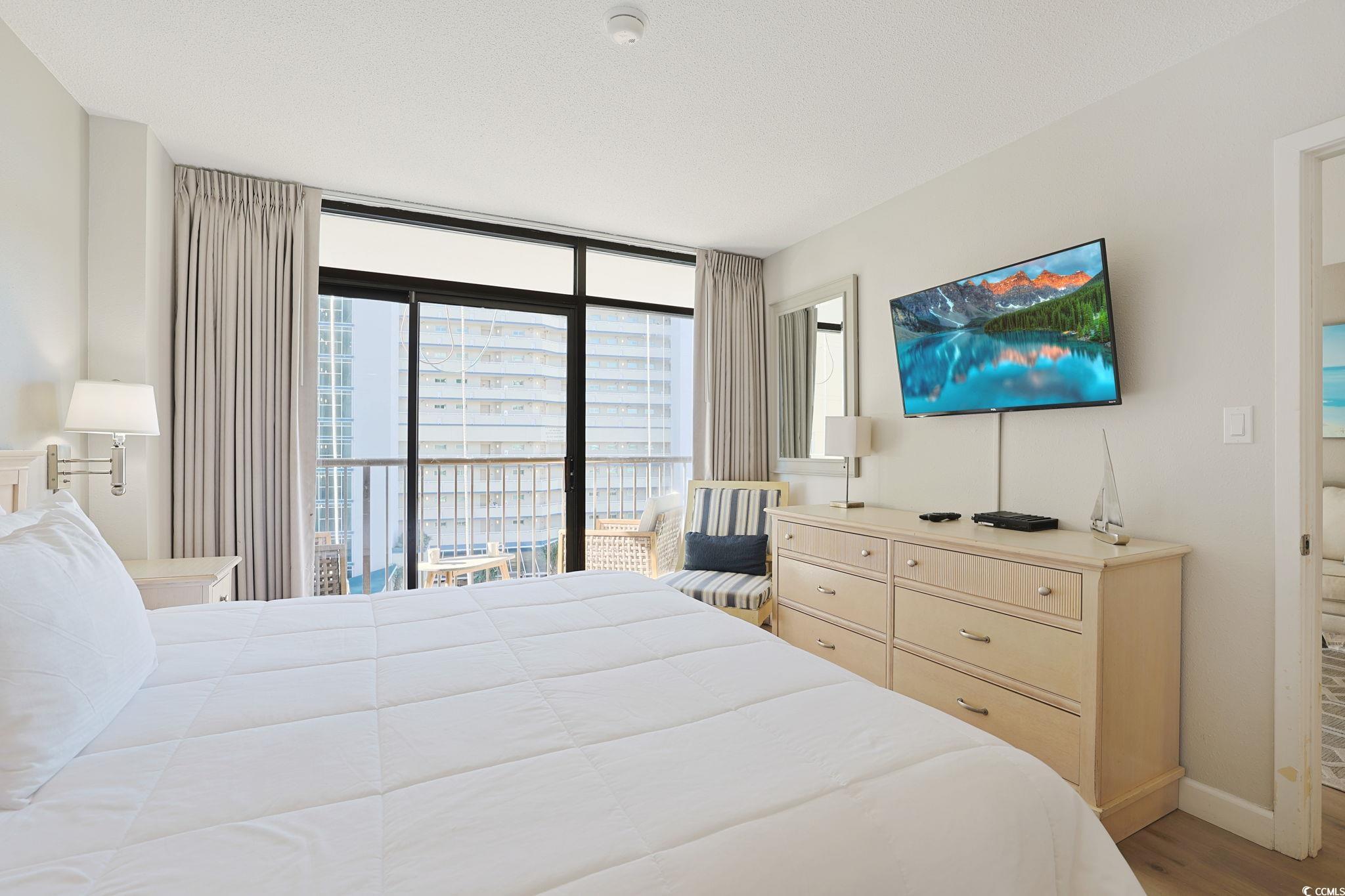 Presenting this welcoming & renovated 2 bedroom 2 bath condo that will be the gem you have been looking for in a place at the beach. This piece of paradise is located in the popular Beach Colony Resort complex. Take the elevator up to to this open floor plan condo that includes wood look LVP flooring, stylish furnishing, and a classic living/dining room combo that showcases a sliding glass door that opens up to the relaxing balcony with views & sounds of the waves breaking. The family-friendly kitchen is equipped with a stainless steel appliance package, granite counter tops, ample cabinet spaces, and a delight breakfast bar. The primary suite offers a double bi-fold door closet, a sliding glass door that leads out to the balcony, private access to the primary bath hosting a single sink vanity, a comfort station, a laundry closet with a stackable washer & dryer, and a timeless step-in shower. This delightful condo is finished with an additional bedroom and a full guest bath. This condo affords you easy access to the beach and golfing along with all of the other activities and happenings in Myrtle Beach including fun eateries, award winning off-Broadway shows, public fishing piers, and intriguing shopping adventures along the Grand Strand. Conveniently located to your everyday needs, including grocery stores, banks, post offices, medical centers, doctors offices, and pharmacies. Check out our state of the art 3-D Virtual Tour.