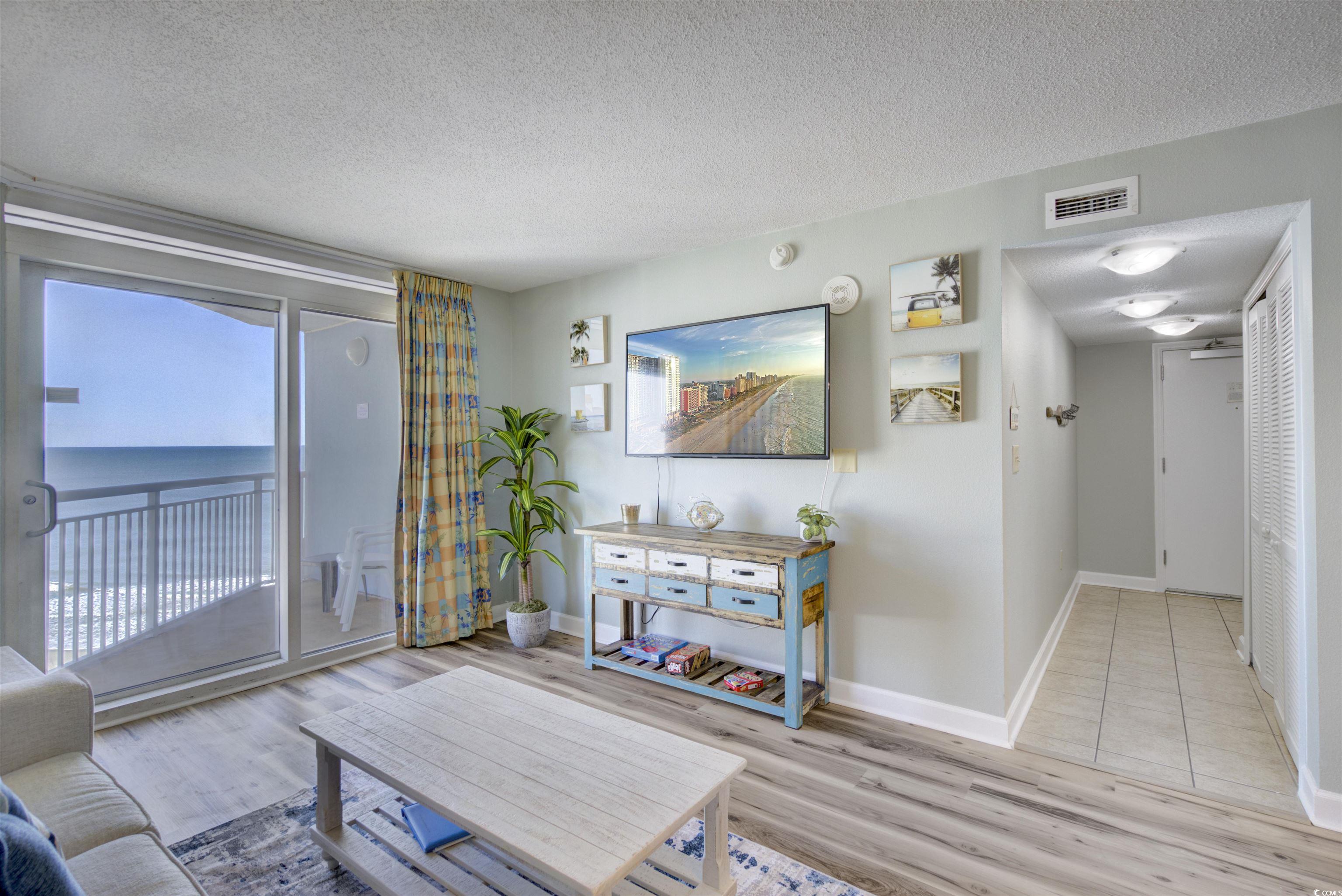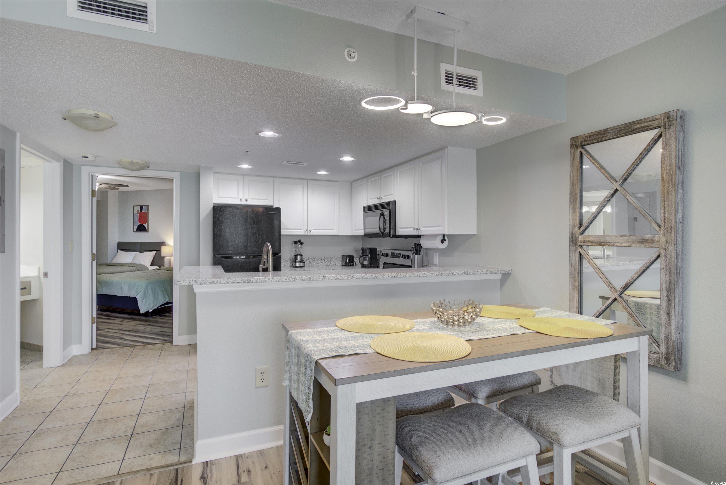 At just over one thousand square feet, this two bedroom, two bath ocean view condo at Holiday Sands South in Myrtle Beach, SC offers a spacious beachfront retreat with stunning views of the Atlantic ocean and city skyline. Completely remodeled in 2024, this unit features new LPV flooring, new granite counter tops, new stove and dishwasher, new showers and toilets, fresh paint throughout, plus all newer furniture and decor! Whether you're looking for a personal vacation home, an investment, or both! Holiday Sands 1129 is a perfect choice. Holiday Sands South is located close to Myrtle Beach state park, Market Common, and tons of restaurants and shopping. The resort offers fun amenities such as: an indoor and outdoor pool, lazy river, hot tub and fitness gym. Owners of a 2 bedroom unit are granted 2 parking spaces in the gated garage. Book a private showing today. Not in town? Request a link to the virtual tour.