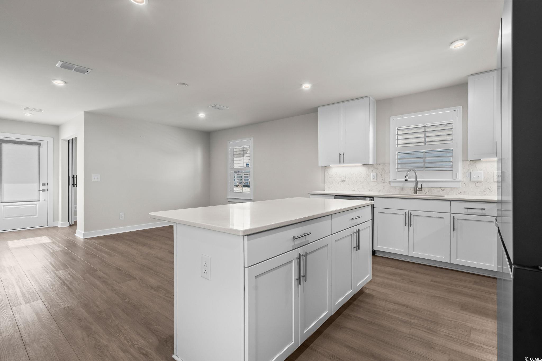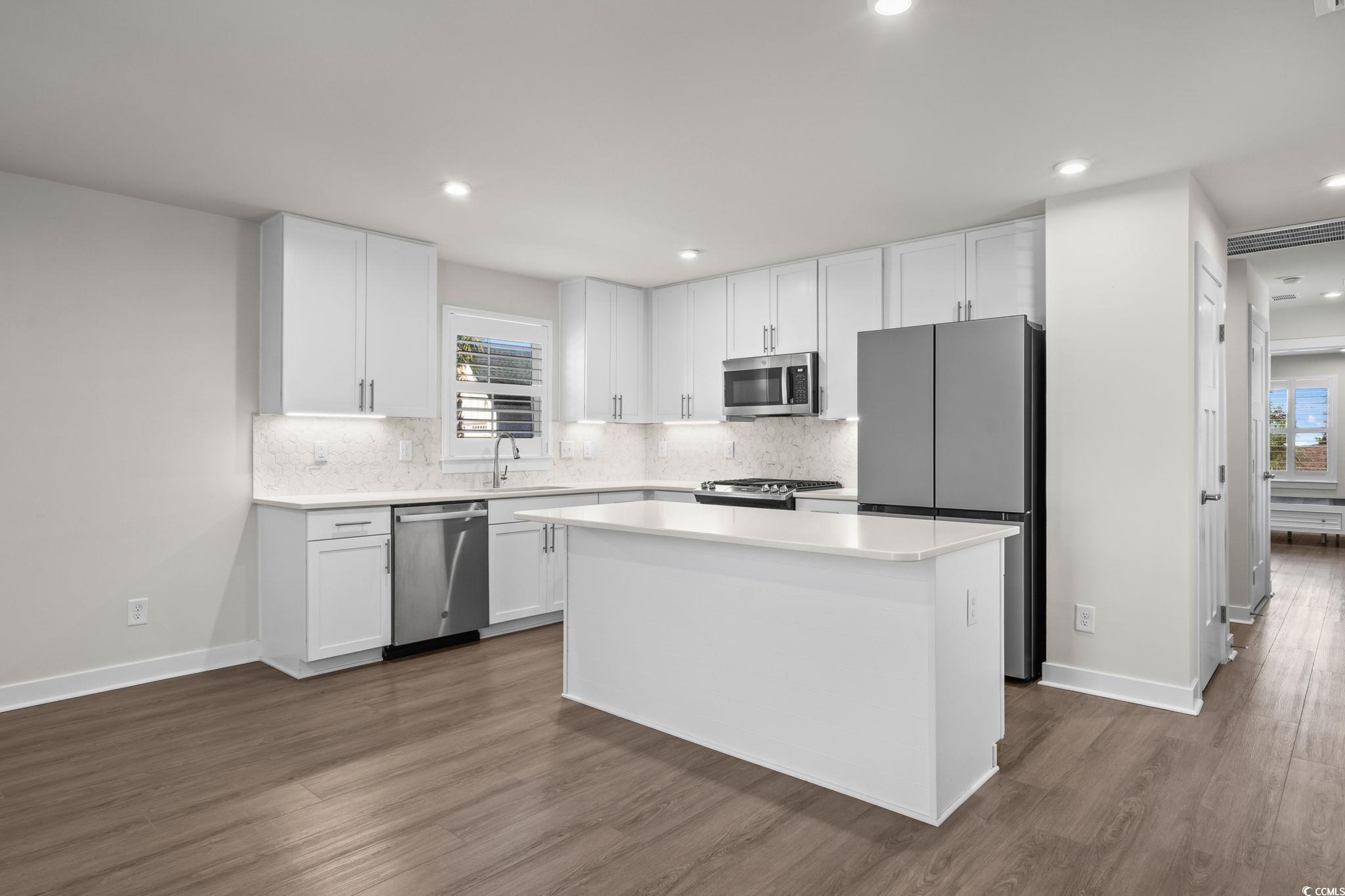 Welcome to this charming, 2024-built single-story cottage located in the highly desirable Grande Dunes North Village by Ryan Homes. This thoughtfully designed home offers two bedrooms and two bathrooms, along with a versatile office or flex room that can easily serve as a non-conforming third bedroom for overnight guests. The open-concept layout is filled with natural light and features a spacious kitchen with ample storage, a shiplap-accented island, and seamless flow into the inviting living area. Craftsman trim details, luxury vinyl plank flooring throughout, custom closets, plantation shutters, and custom roller shades on the doors elevate the interior, while a sliding barn door adds both style and functionality to the flex space. The owners suite is complete with a beautifully finished bathroom featuring a frameless glass shower door. Outside, the home is equally appealing with a welcoming Southern-style front porch, a detached garage, and a beautifully designed backyard perfect for relaxing or entertaining. The upgraded landscaping includes ten sabal palms and a pindo palm, enhancing the homes coastal charm and curb appeal. Ideally situated on a private cul-de-sac, the property is just a short distance from the outstanding North Village amenities, blending modern convenience with timeless cottage appeal. This pristine home allows you to skip the wait and hassle of new construction and move in immediately, making it an ideal full-time residence or a perfect second-home getaway. Residents of Grande Dunes North Village enjoy gated, 24-hour security and exclusive access to an impressive array of resort-style amenities. These include the Grande Dunes Ocean Club with its oceanfront pool and private dining options, as well as access to the public Resort Golf Course. Nearby, is The Members Club, 357 Raw Coastal Restaurant, and the Grande Dunes Marina. Additional community amenities are currently under construction and will feature a luxurious pool, fire pit, grill station, walking trails, clubhouse, state-of-the-art fitness center, playground, and pickleball courts. Lawn care is included, and residents can enjoy sidewalk-lined streets, scenic ponds with water features, and a beautiful tree-lined setting, all accessed through a signature Grande Dunes entrance with a guardhouse and gate. The location is truly unmatched, offering easy access to Highway 31 for quick travel south to Broadway at the Beach, Costco, Coastal Grand Mall, and Myrtle Beach International Airport, or north to North Myrtle Beach for fine dining, golfing, Intracoastal Waterway access, Barefoot Landing, Cherry Grove, and more. Luxury, convenience, and the iconic Grande Dunes lifestyle come together in this exceptional property. Schedule your private showing today and experience everything this beautiful home and community have to offer.
