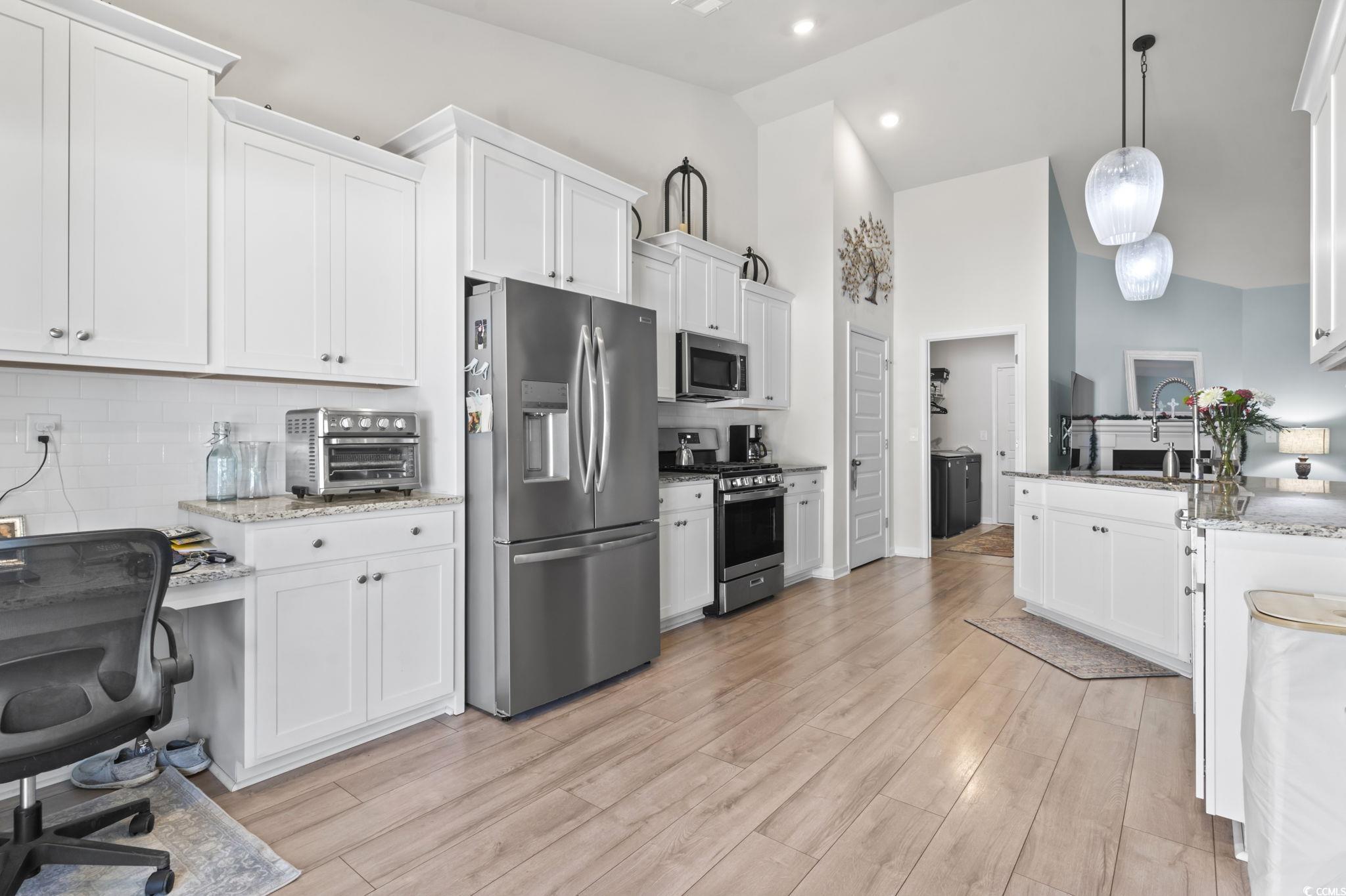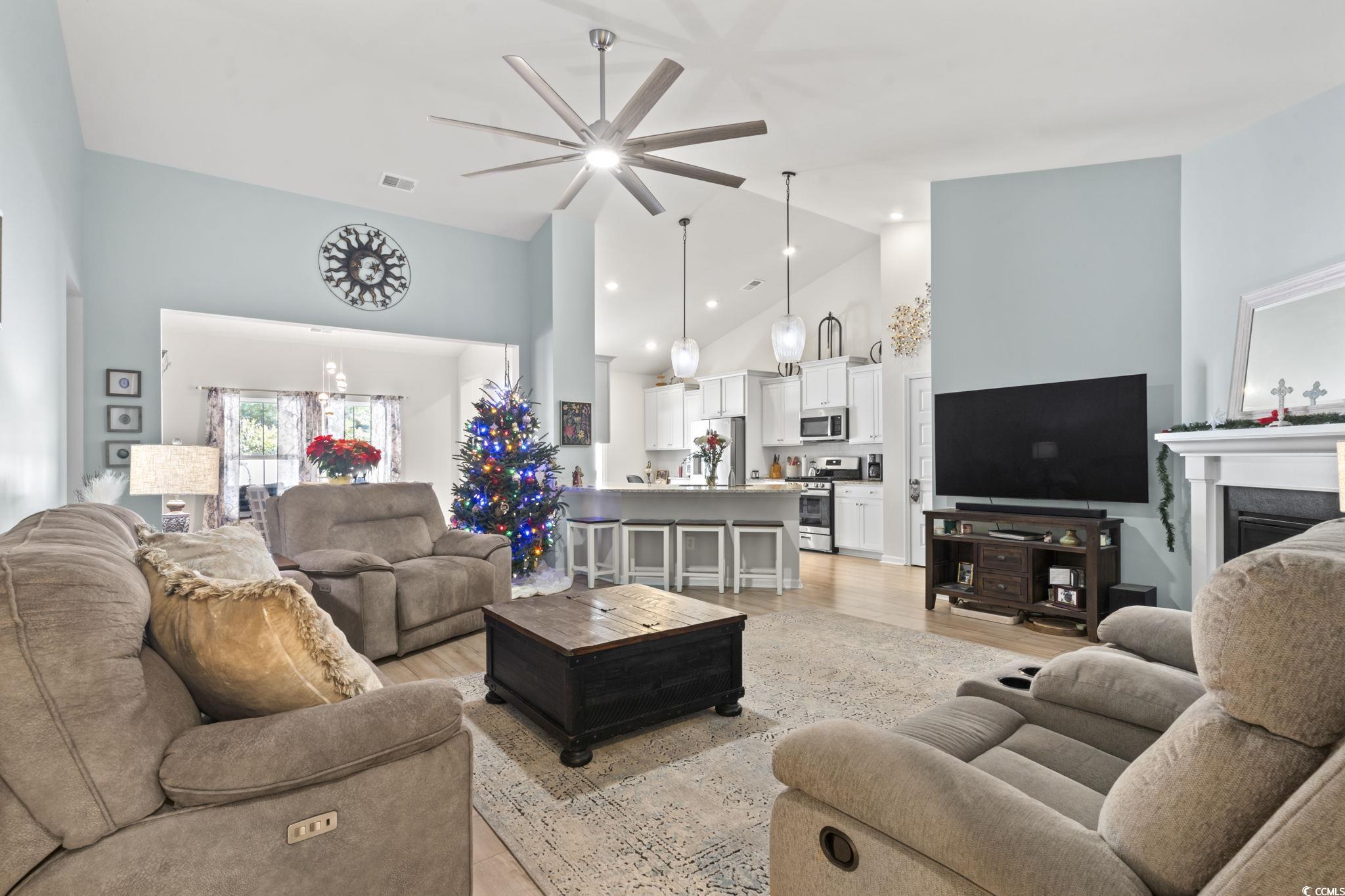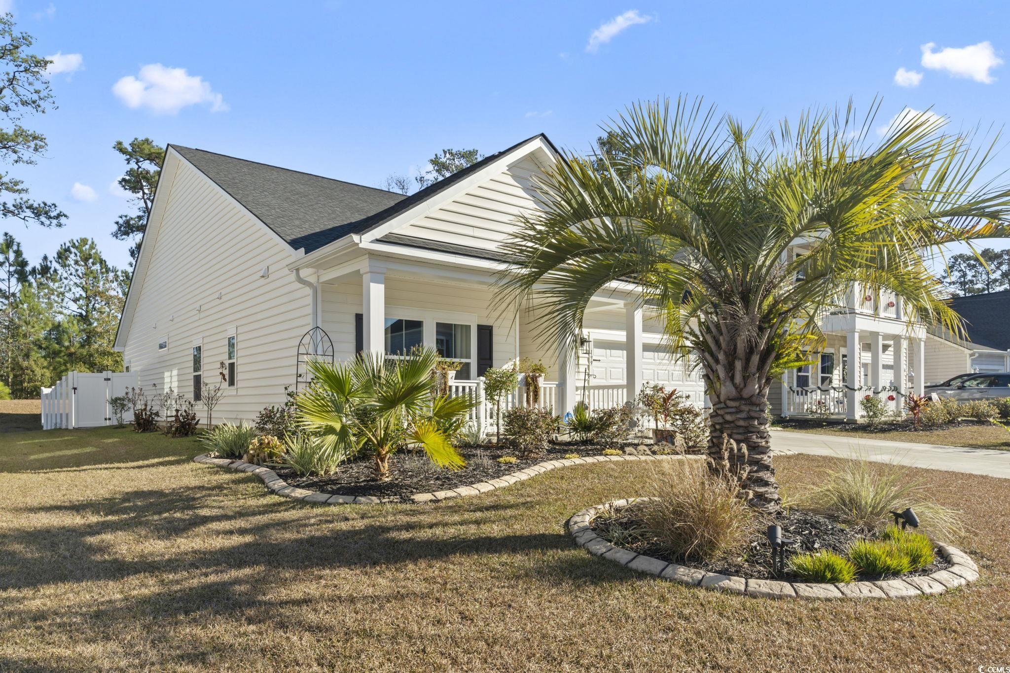 This better than new ""St. Phillips"" ranch in Arcadia is where resort living meets everyday convenience. Discover the effortless lifestyle youve been waiting for in the highly sought-after Arcadia community. This pristine ""St. Phillips"" 3-bed 2-bath model, built in 2023, offers the polished feel of new construction without the wait. Ideally situated on a premium lot, this single-story residence blends modern functionality with resort-style amenities, placing you minutes from everyday conveniences and the sandy shores of Myrtle Beach. Step inside to an airy, open-concept footprint designed for easy entertaining and relaxed living. The heart of the home features a spacious kitchen with gleaming granite countertops, upgraded lighting over a sprawling breakfast bar, and a pantryperfect for the home chef. The flow continues seamlessly into a large living room with a fireplace and open dining area, anchored by durable, stylish flooring that makes cleaning a breeze. Retreat to the primary suite, a true sanctuary boasting a generous walk-in closet and a well-appointed en-suite bath with a walk-in shower. Outside, your leisure options are endless. Whether you are sipping coffee on your private covered porch with a paver patio surrounded by beautiful backyard landscapes and lighting or taking a short stroll to the world-class amenity center, every day feels like a vacation. Enjoy access to a sparkling community pool, pickleball courts, a fitness center, and a clubhouse that serves as the neighborhood's social hub. With a tankless water heater, and a smart home layout, this property delivers efficiency and comfort in equal measure. Additional upgrades and add-ons to the home include washer/dryer, security system, gutter system, privacy fence, garage storage rack and more! Schedule your showing today!