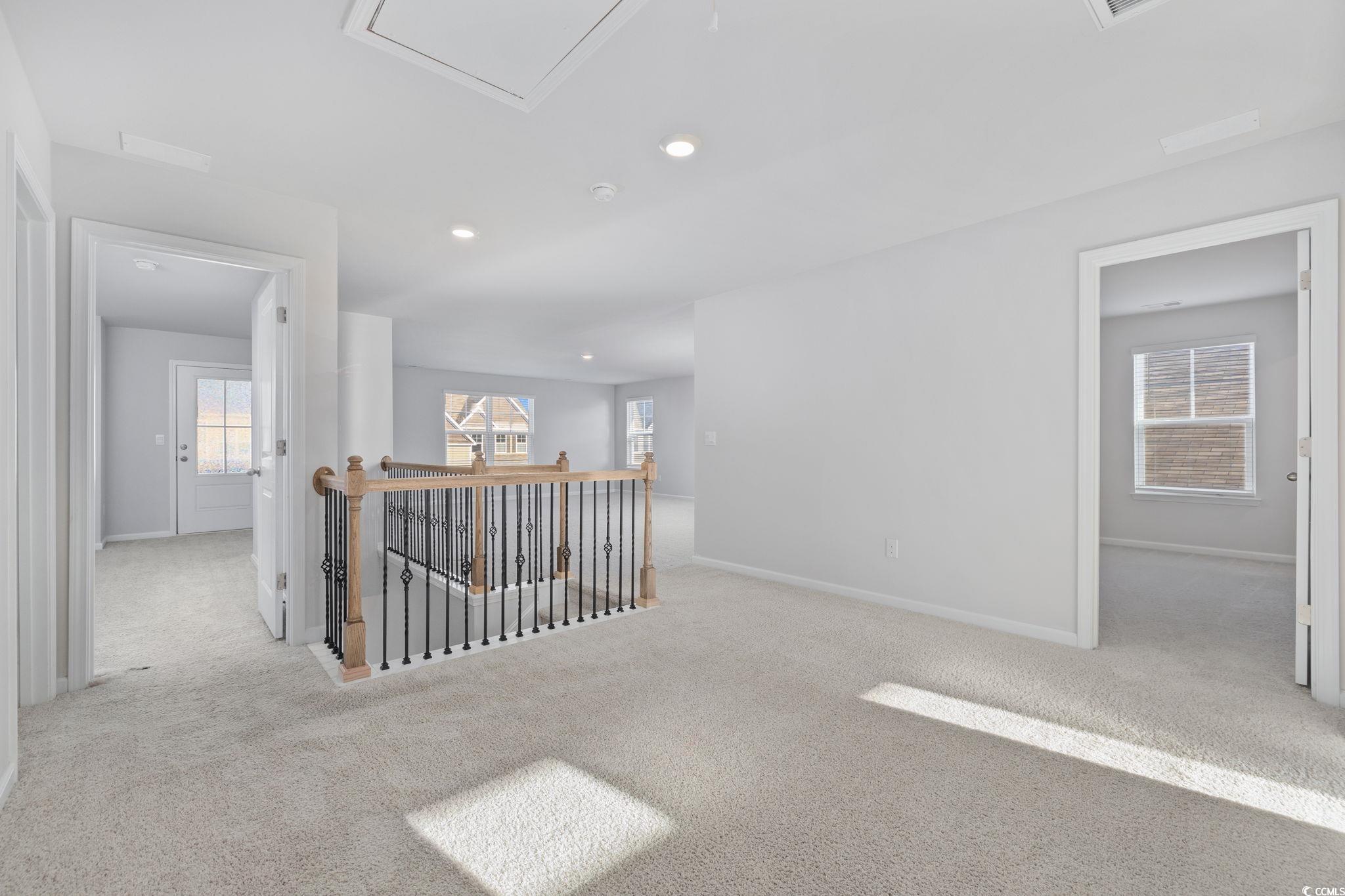 Welcome to the the highly sought-after Tillman model in The Parks at Carolina Forest, an all natural gas community known for its beautiful landscapes, exceptional amenities, and resort-style lazy river. Perfectly positioned on a premium pond lot with an easement to the right of the home that provides added space and privacy between neighbors, this stunning 5-bedroom, 3.5-bathroom property offers peaceful water views and a thoughtfully designed layout for comfort, style, and entertaining. Step inside to an inviting open-concept living space where the upgraded kitchen takes center stage. Youll find stainless steel appliances, a gas range, tiled backsplash, 36-inch cabinetry, quartz countertops, and a spacious breakfast bar that flows seamlessly into the expansive living area. Wide-plank luxury vinyl flooring runs throughout the main level for a modern look that is both stylish and durable. A formal dining room provides the perfect setting for hosting gatherings and holidays. The first-floor master suite is a true retreat, featuring a walk-in closet, double vanity sinks, a walk-in shower, linen closet, and a private water closet. Upstairs, four additional bedrooms, two full bathrooms, and a spacious flex room offer endless potential whether you need a media room, playroom, or home office. Enjoy the serene lake views from your screened-in porch, or take advantage of thoughtful upgrades including a tankless hot water heater, quartz countertops throughout, and permanent holiday lights that add charm all year long. This community offers a picturesque setting with scenic ponds, an amazing amenity center, and the park of the majestic Ten Oaks, complete with walking trails that lead directly to the Carolina Forest library. It is a true golf cart-friendly neighborhood where you can ride to nearby restaurants and Publix grocery store with ease. Perfectly located in the heart of Carolina Forest, residents enjoy access to award-winning schools, major roads such as Hwy 31, shopping, and all just 5 miles from the beach.