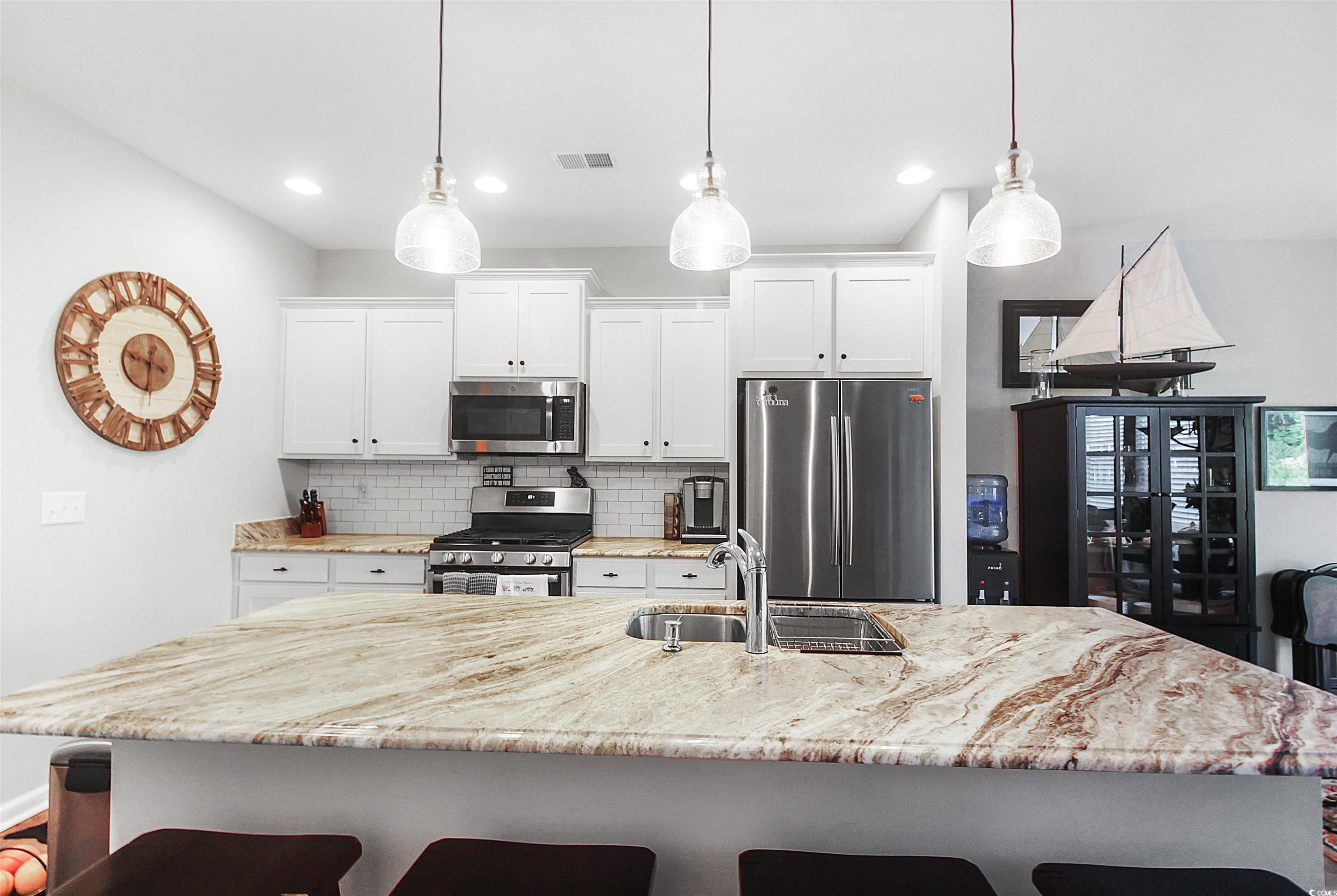 Welcome to the premier, active lifestyle of Little River's Bridgewater Community! This spacious townhouse offers 1,588 sq. ft. of sophisticated living space, featuring 3 bedrooms and 2.5 bathrooms. The interior boasts high-end finishes, including elegant LVP flooring and custom granite countertops.The open living area provides a peaceful retreat with its serene pond view and direct access to a private outdoor patio. Meal preparation is a joy in the well-appointed luxury kitchen. Convenience is key with your attached one-car garage. As a Bridgewater resident, you'll experience truly first-class amenities and a vibrant social scene, managed by a dedicated three-person staff. The community calendar is packed with: Scheduled fitness and art classes - Social gatherings with live bands - Active Men's and Women's Clubs - A large outdoor pool, well-equipped gym, and open fire pit - Courts for bocce and pickleball and a convenient kayak ramp for water access on the grand lake. This remarkable home offers the perfect blend of comfort, luxury, and engaging community living. Owner is a licensed SC real estate agent.