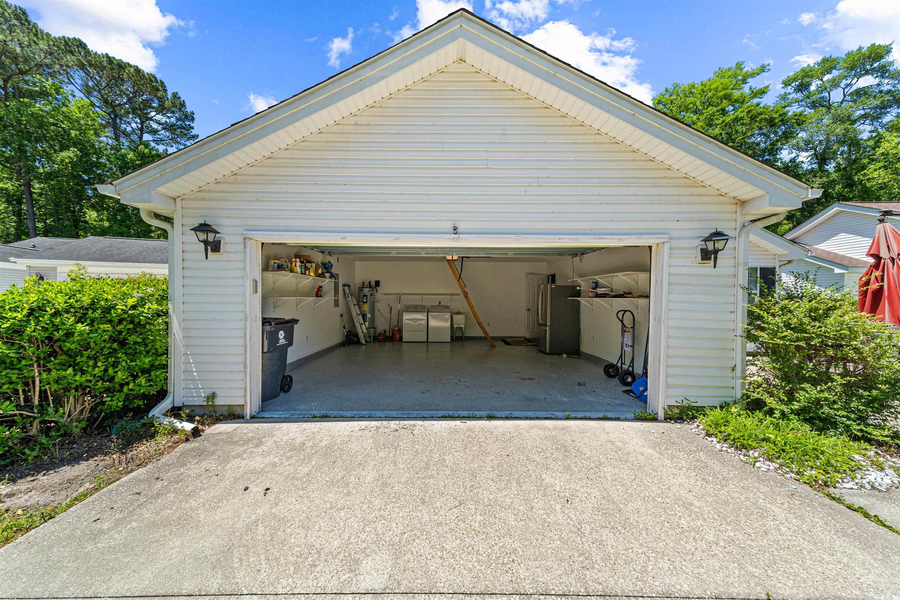 Nestled on a quiet cul-de-sac surrounded by lush, mature trees, this lovingly cared for 2-bedroom, 2-bathroom home offers a peaceful and private setting. Enjoy your mornings on the front patio or unwind in the SPACIOUS screened-in back patio, complete with porcelain flooring. The bright and inviting kitchen boasts white cabinetry, stainless steel appliances, granite countertops, subway tile backsplash and elegant plantation shutters. The home offers vaulted ceilings, updated light fixtures and ceiling fans throughout, updated vanities in both bathrooms, LVP flooring and newer carpeting in both bedrooms. The garage features durable epoxy flooring, pull-down stairs for attic access, washer and dryer, and a convenient utility sink. Island Green South offers a beautiful community pool, is centrally located near schools, shopping, doctors, golf courses, dining, sunny beaches and all of the attractions / entertainment that the Grand Strand has to offer. Make your appointment today! MOTIVATED SELLER.