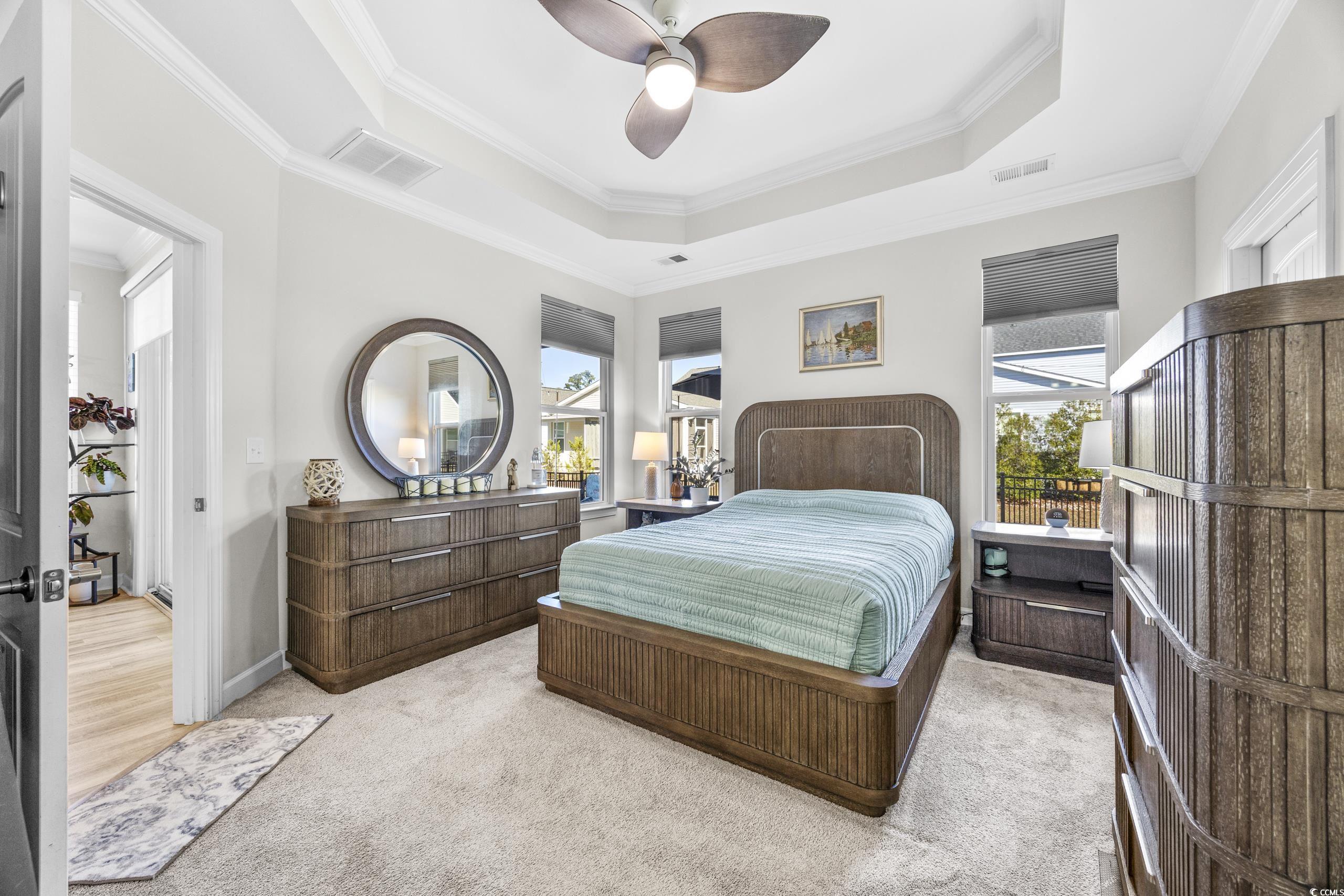 PrimaryBedroom: TrayCeilings, CeilingFans, MainLevelMaster, WalkInClosets