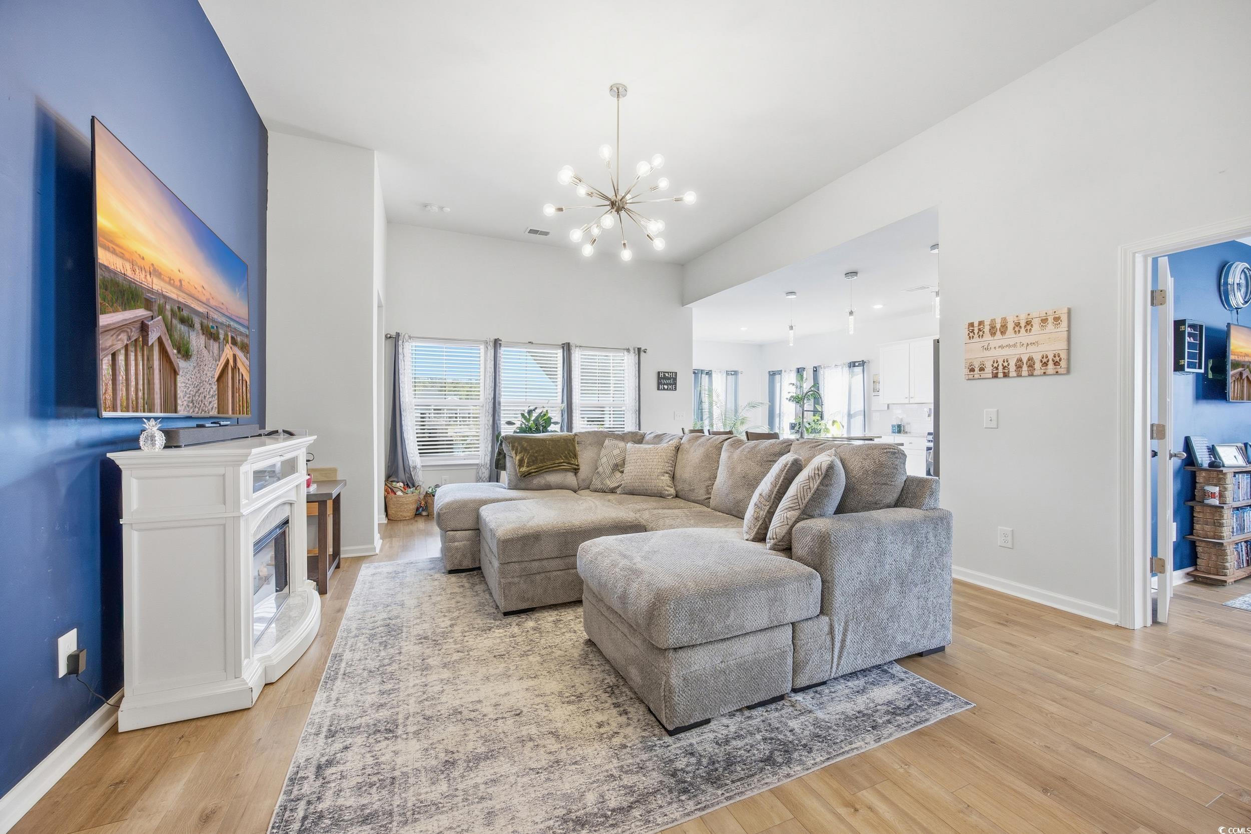 Finally! It's the one you have been searching for! This beautifully maintained 3-bedroom, 2-bath home offers the perfect blend of comfort, functionality, and coastal convenience, located just 10 minutes from the beach at Highway 90 & 22 with easy access to the entire market area, including shopping, dining, golf, and major roadways. Thoughtfully designed with a desirable split-bedroom floor plan, the layout of this home provides privacy and flexibility for both everyday living and hosting guests. The main living areas feature durable and stylish vinyl plank flooring, creating a warm and inviting atmosphere while being easy to maintain. The spacious kitchen is a true highlight, equipped with a gas range, stainless steel appliances, a large breakfast bar ideal for casual meals or entertaining, subway tile backsplash, a pantry, and an abundance of cabinet and counter space to meet all your storage and cooking needs. The kitchen opens seamlessly to the living and dining areas, making it perfect for gatherings of any size. The primary suite serves as a private retreat, complete with a well-appointed en suite bath featuring double sinks and a generous walk-in closet. Two additional bedrooms are comfortably sized and located on the opposite side of the home, sharing a full bath. An added flex room provides exceptional versatility and can easily function as a home office, formal dining room, playroom, or additional bedroom to suit your lifestyle. Outdoor living truly shines with a gorgeous paver patio overlooking an in-ground saltwater pool, creating an ideal setting for relaxation, entertaining, or enjoying warm coastal evenings. The fully fenced backyard offers privacy and space for pets or outdoor activities. Additional features include a tankless hot water heater for energy efficiency, full home alarm system, a dedicated laundry room, and a spacious 2-car garage. This home delivers the coastal lifestyle youve been looking for with modern features, thoughtful design, and an unbeatable location. Located in the natural gas community of Queens Park just minutes from all Myrtle Beach has to offer! Call today to schedule a showing! All measurements are approximate. Buyer and buyers agent responsible for verification of all information.