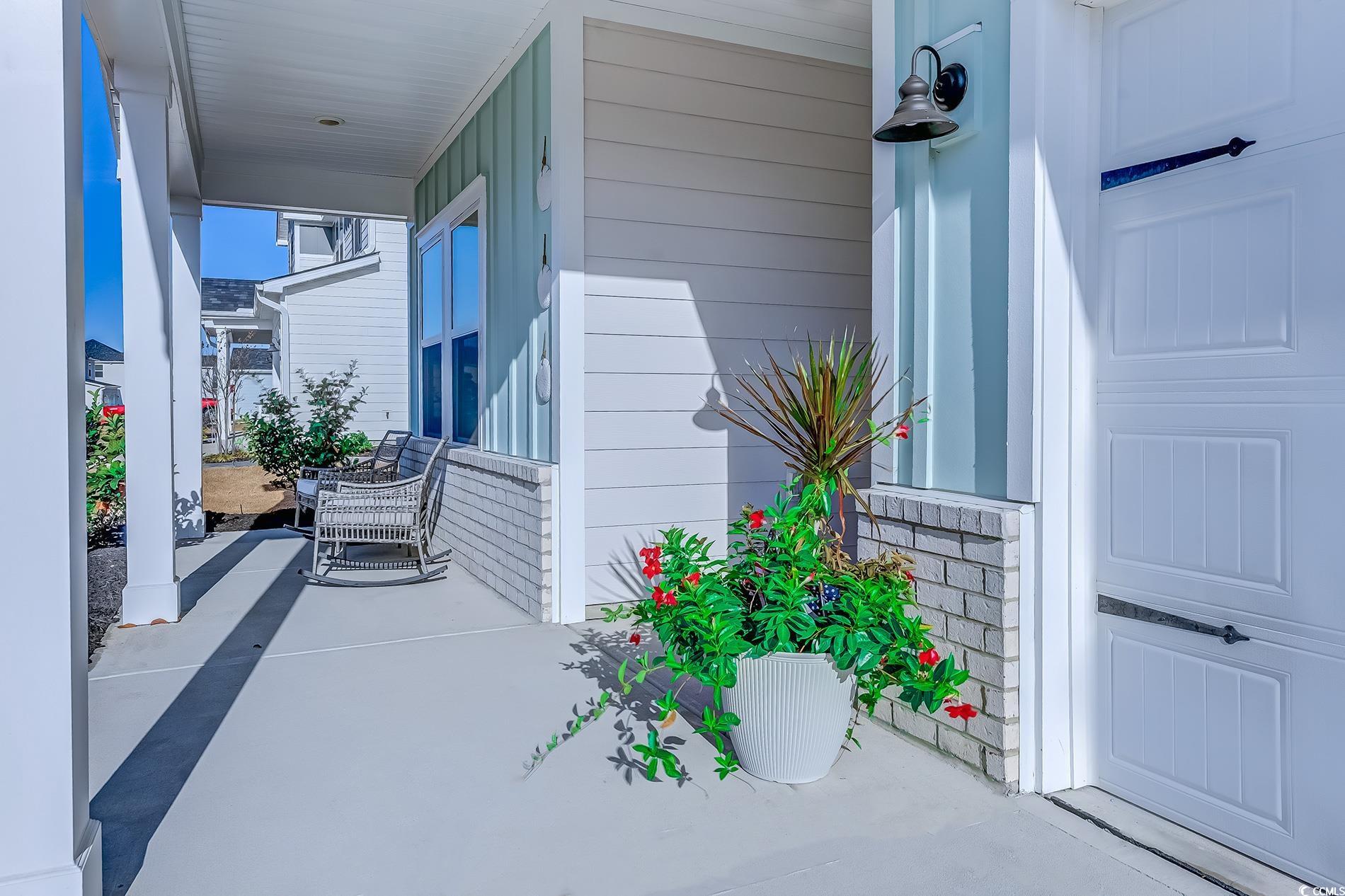 Better than new and move-in ready, this meticulously maintained home stands out with a larger, rare homesite backing to protected woods, offering a private backyard with peaceful views, frequent wildlife sightings, and lasting privacy since no homes can be built behind it. The sellers have enhanced the property with professional landscaping and an irrigation system, ensuring the grounds are always pristine and easy to maintain. Spacious and filled with natural light, the split-bedroom floorplan includes three bedrooms and a bonus or flex room on the main level, along with an additional bedroom and full bath upstairs, ideal for guests or multi-generational living. The open kitchen features granite countertops, a large island, white cabinetry, subway tile backsplash, natural gas cooking, stainless appliances, a roomy pantry, recessed lighting, and a refrigerator that is included. LVP flooring flows through the main living areas, and thoughtful additions such as a landing zone, window treatments, wainscoting, upgraded lighting, and ceiling fans give the home a polished, finished feel. The primary suite offers a tray ceiling, tiled walk-in shower, and spacious walk-in closet. Natural gas service and a tankless water heater add efficiency and comfort. Located in the community of Waterside, this property carries a Longs, SC address while being within North Myrtle Beach city limits, providing free beach parking and city police and fire services. Community amenities include a pool, sports courts, walking trails, and a planned day dock on the Intracoastal Waterway. Convenient to Routes 22 and 31 and close to new shopping, this home is ideal for buyers who want coastal living without the wait of new construction.