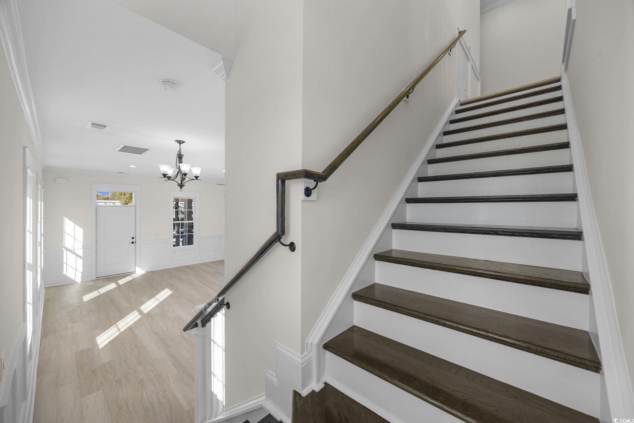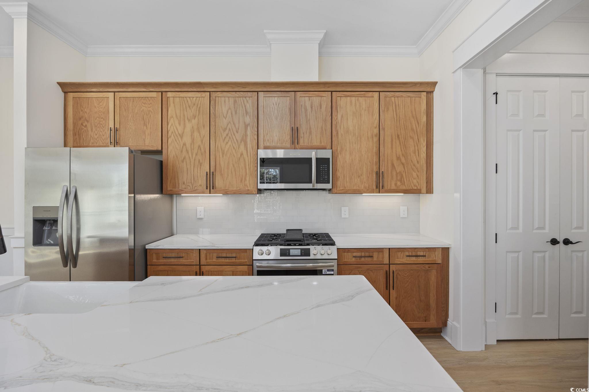 Welcome to Market View, a small-scale townhome community, located downtown Market Common in Myrtle Beach. Market Common offers a variety of boutiques, restaurants, name brand stores, and entertainment; all of these steps away. The Atlantic Ocean is less than a mile away. This 3 bedroom 2.5 bathroom home boast 10 foot ceilings on first and second floor, luxury trim package, and brick exterior. Owners can choose their countertops, cabinetry, flooring, and more. All bedrooms have sizeable closets, storage space in attic, and there is a 2 car garage. These homes provide low maintenance living making it great for a primary, secondary, or investment property.