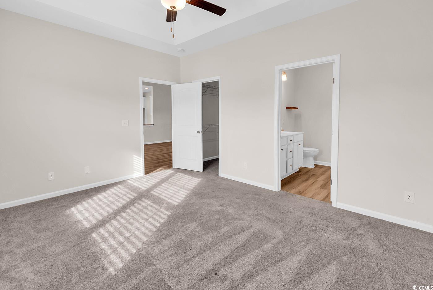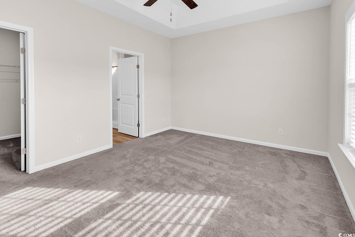 PrimaryBedroom: TrayCeilings, CeilingFans, LinenCloset, MainLevelMaster, WalkInClosets
