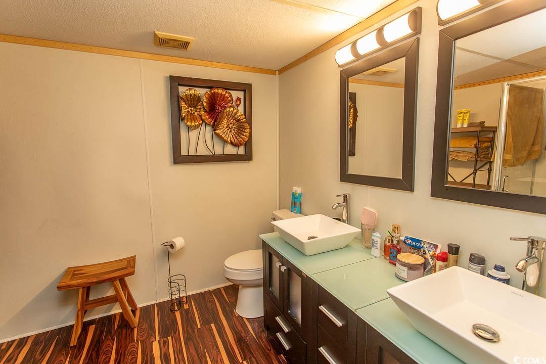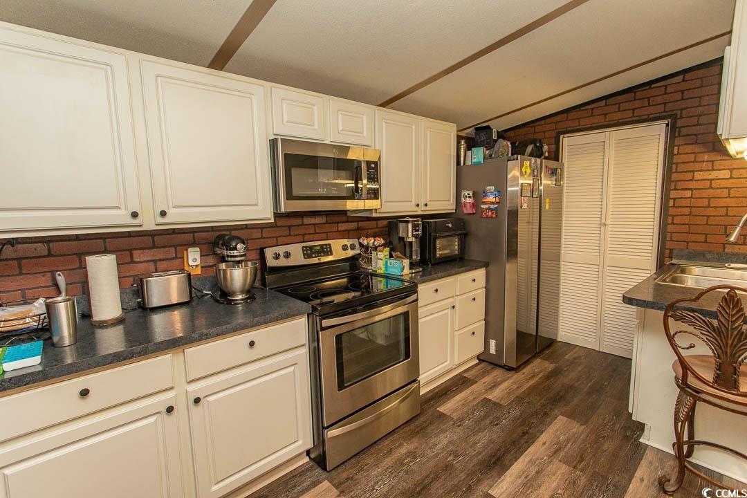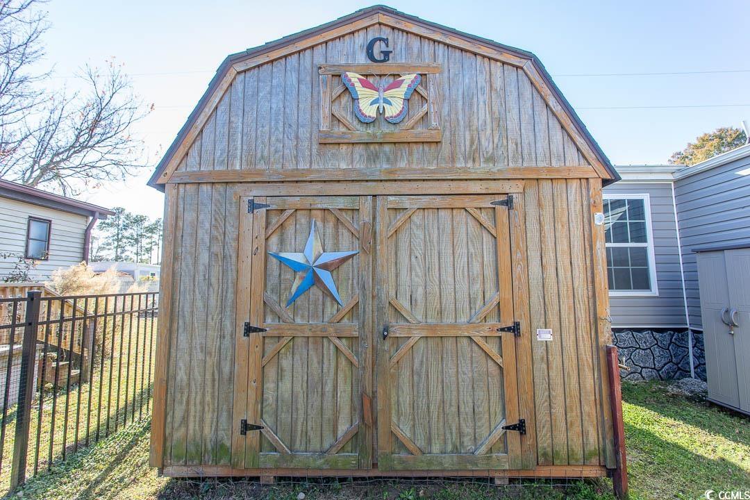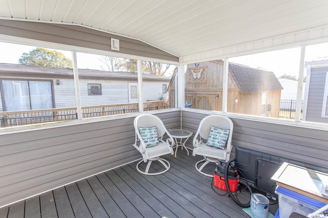 Charming 3-bedroom, 2-bath renovated home just a golf-cart ride to the beach! This property has been thoughtfully upgraded, including double-pane windows, new plumbing, new vinyl siding, faux rock skirting, a new hot water tank (relocated outside to create additional pantry space), a new electrical panel, new tie-down straps, and a new vapor barrier, new under belly. Both bathrooms have been fully updated with two new walk-in showers. Additional improvements include a new refrigerator, new microwave, composite decking with extra-wide steps, new fencing and screening, new patio pavers, motion-activated flood lights, new ceiling fans & Led lighting-, and a walk-in closet in the primary bedroom. Both secondary bedrooms have been expanded to add valuable square footage. Enjoy the enclosed patio area, perfect for relaxing after a day at the beach. Major systems include a metal roof (2017) and HVAC (2017). The property also features a well-built 12 x 16 shed with two lofts and full electric, offering exceptional storage or workshop space. Whether youre looking for a primary residence or a vacation getaway, this home truly checks every box. Relax on the deck or hop on your golf cart to Market Common for shopping, dining, or a movie. Crystal Lake is located near the airport, golf, entertainment, and area beachesthis home offers the relaxed coastal lifestyle you deserve. Life is shortdont let this one pass you by. Contact the agent of your choice today!