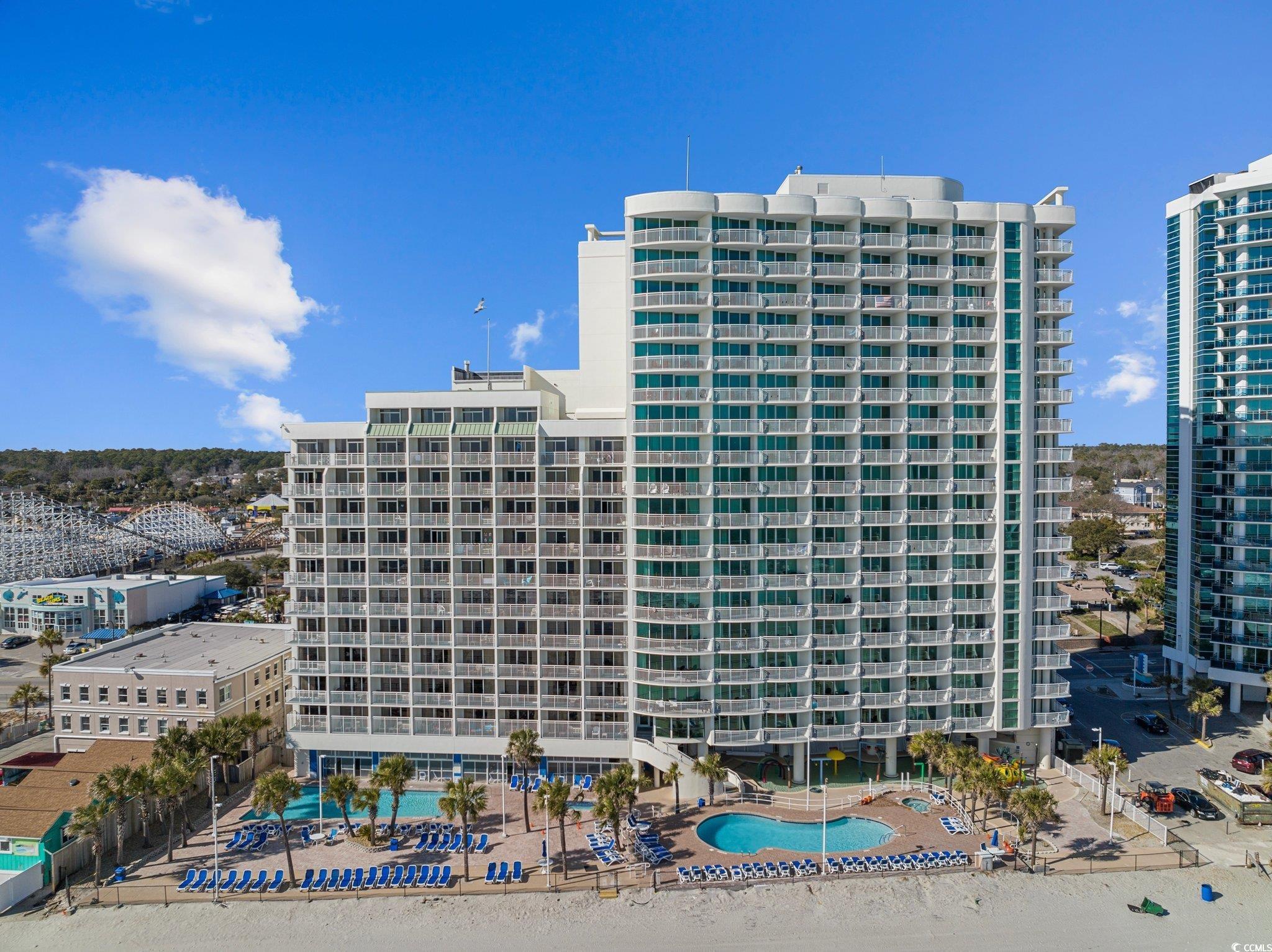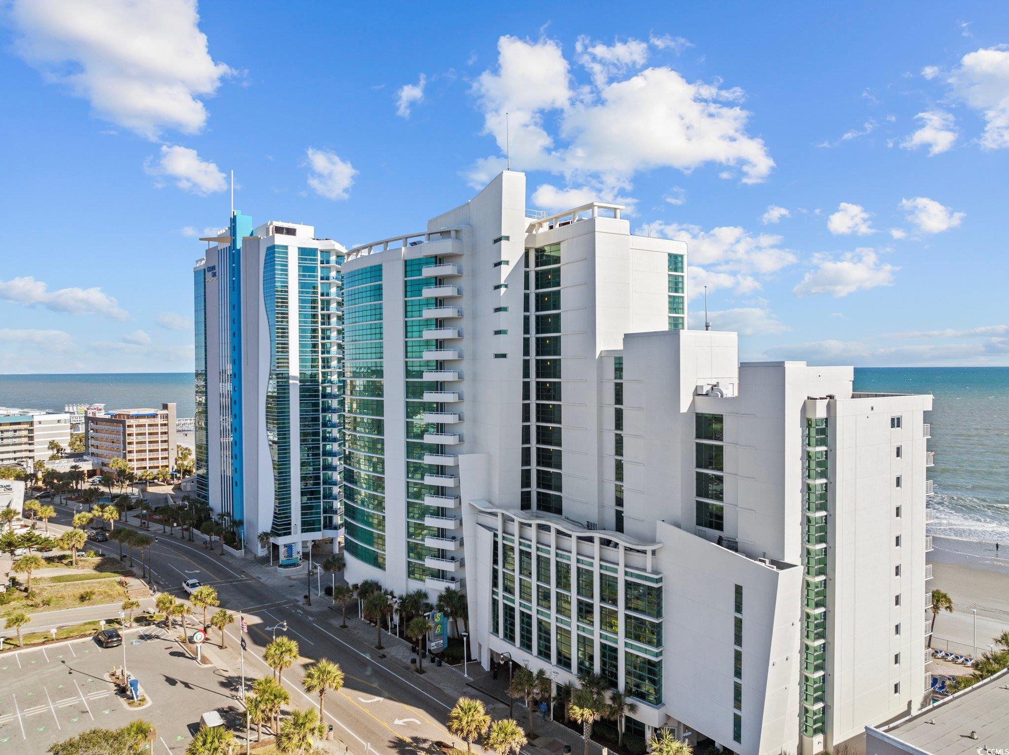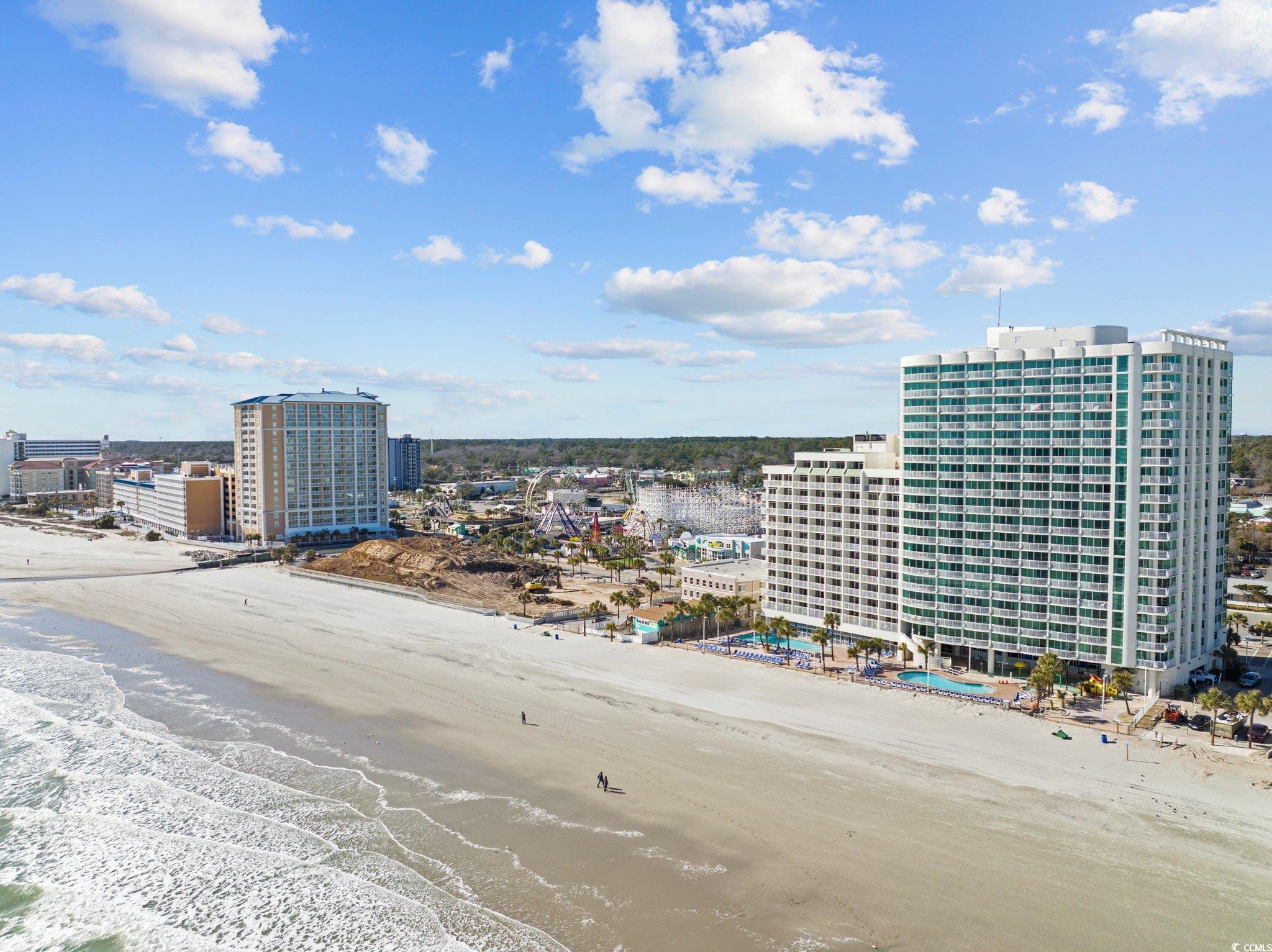 Experience the epitome of coastal luxury with this exquisite 1-bedroom, 1-bathroom oceanfront condo in Myrtle Beach. Perfectly designed for relaxation and comfort, this condo offers unparalleled views of the Ocean and a range of upscale amenities. The spacious bedroom boasts a king-sized bed with premium linens, providing the ultimate comfort. Wake up to the soothing sounds of the ocean and breathtaking sunrise views through the large window. Indulge in the spa-like bathroom featuring a jetted tub, perfect for unwinding after a day at the beach. The sleek vanity and contemporary fixtures add a touch of elegance to your daily routine. The open-concept living and dining area is flooded with natural light, creating a warm and inviting space. The large sliding glass doors lead to a private balcony where you can enjoy panoramic ocean views and fresh sea breezes. The fully equipped kitchen includes ample cabinetry, making meal preparation a delight. Situated in a prime resort location, this condo provides access to top-tier amenities such as a sparkling swimming pool, state-of-the-art fitness center, and direct beach access. Embrace the best of oceanfront living in this luxurious Myrtle Beach condo.