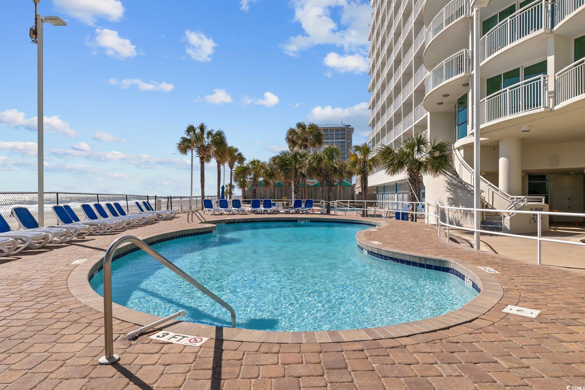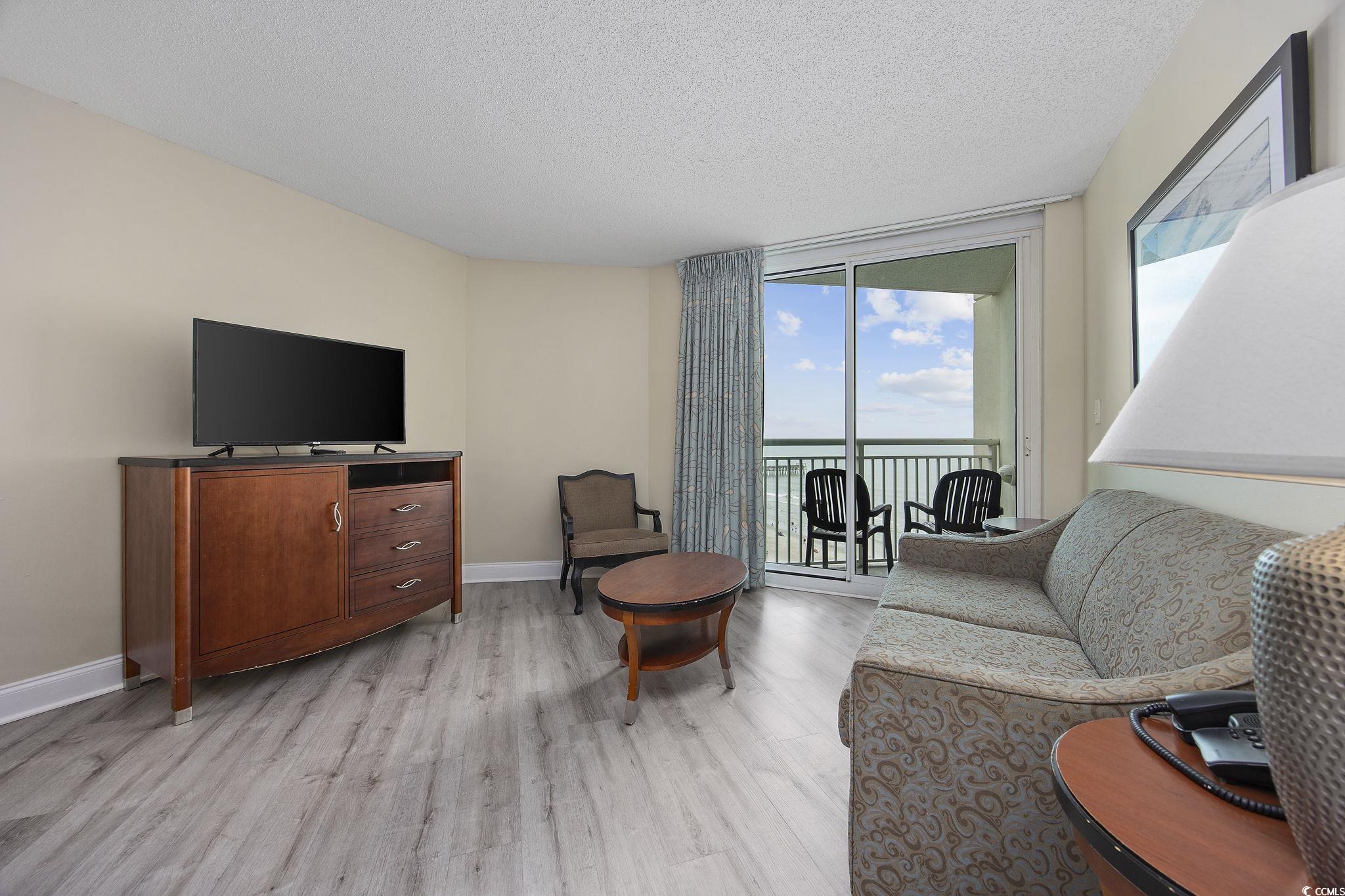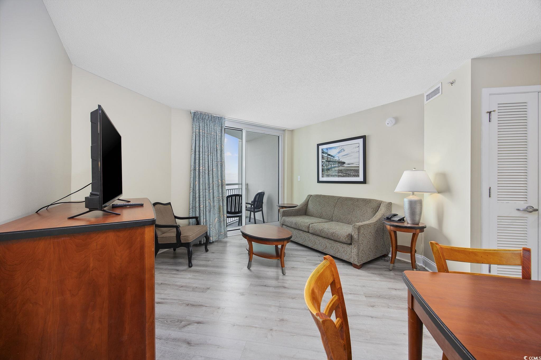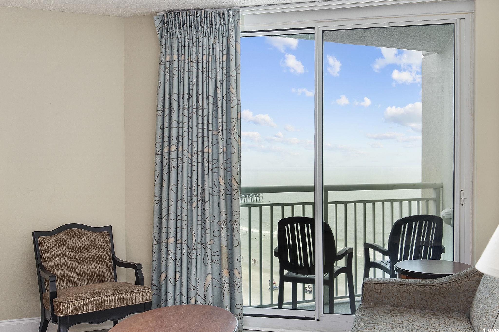 Experience the epitome of coastal luxury with this exquisite 1-bedroom, 1-bathroom oceanfront condo in Myrtle Beach. Perfectly designed for relaxation and comfort, this condo offers unparalleled views of the Ocean and a range of upscale amenities. The spacious bedroom boasts a king-sized bed with premium linens, providing the ultimate comfort. Wake up to the soothing sounds of the ocean and breathtaking sunrise views through the large window. Indulge in the spa-like bathroom featuring a jetted tub, perfect for unwinding after a day at the beach. The sleek vanity and contemporary fixtures add a touch of elegance to your daily routine. The open-concept living and dining area is flooded with natural light, creating a warm and inviting space. The large sliding glass doors lead to a private balcony where you can enjoy panoramic ocean views and fresh sea breezes. The fully equipped kitchen includes ample cabinetry, making meal preparation a delight. Situated in a prime resort location, this condo provides access to top-tier amenities such as a sparkling swimming pool, state-of-the-art fitness center, and direct beach access. Embrace the best of oceanfront living in this luxurious Myrtle Beach condo.