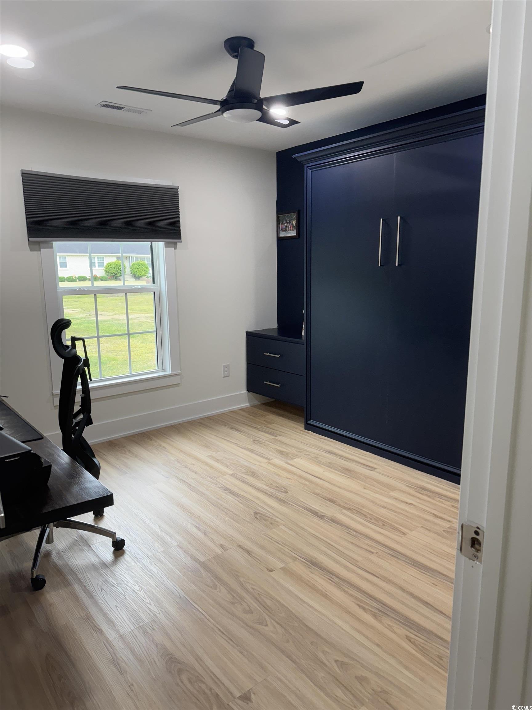 Discover refined modern living in this nearly new custom residence offering 1,493 square feet of sophisticated living space on over half an acre of unrestricted land with no HOA. This exceptional home seamlessly blends premium design with everyday functionality, featuring an open-concept layout illuminated by energy-efficient LED lighting throughout. The kitchen showcases professional-grade amenities, including a gas range, stunning quartz countertops, and custom cabinetry crafted with exceptional attention to detailperfect for both casual dining and entertaining. The primary suite serves as a private sanctuary, complete with a spa-inspired en-suite shower, a generous walk-in closet, and custom storage solutions that maximize both style and function. A versatile guest suite features a thoughtfully designed Murphy bed, offering the ideal balance of hospitality and multi-use flexibility. Perfectly positioned just 2.2 miles from Francis Marion University, 4.2 miles from Florence Regional Airport, and 7 miles from Historic Downtown Florence, this property provides convenient access to everything you need while maintaining a peaceful sense of seclusion. Whether youre seeking a stunning primary residence, a sophisticated second home, or a high-performing investment property for platforms such as Airbnb or VRBO, this turnkey home offers remarkable versatility, premium finishes, and exceptional long-term value. Additionally, for those who are handy, the garage features insulated walls and an HVAC vent and can be easily converted into a third bedroom.
