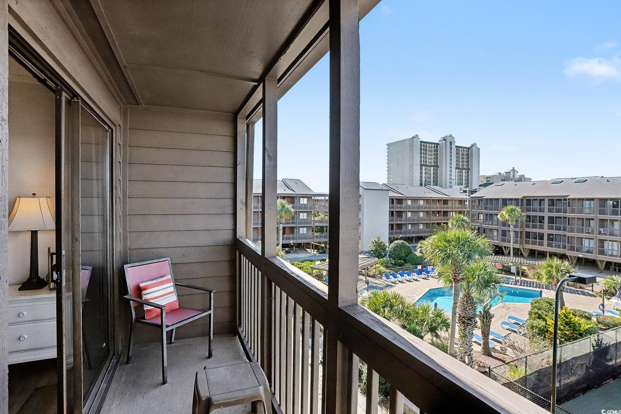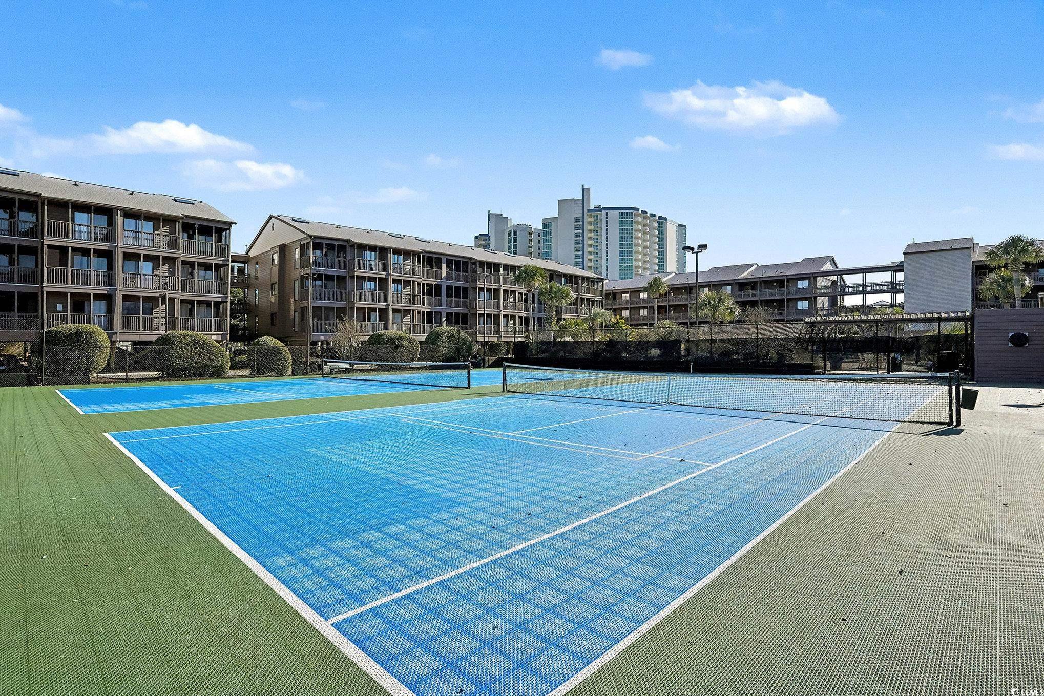 Welcome to Tilghman Tennis & Racquet Club, a beautifully maintained 3-bedroom, 2.5-bath end-unit condo offering exceptional natural light, multiple outdoor living spaces, and a prime North Myrtle Beach location. Conveniently located near the elevators, this unit combines accessibility with privacy and space. As an end unit, this condo benefits from additional windows, creating a bright and airy atmosphere throughout. The open-concept living and dining area is highlighted by a skylight above the dining space, flooding the heart of the home with natural light. The living room opens to a private screened balcony overlooking the tennis courts and community amenities, providing the perfect spot to relax and enjoy coastal breezes. The kitchen offers ample cabinetry and counter space and flows seamlessly into the dining areaideal for entertaining or casual coastal living. Equipped with stainless steel appliances. A convenient half bath is located off the main living area for guests. The primary suite features its own private balcony, offering a peaceful retreat with elevated views and a quiet place to unwind. Two additional bedrooms provide flexibility for guests, family, or a home office. With 2.5 bathrooms, the layout is well-suited for both everyday living and hosting visitors. This condo has not been rented, reflecting pride of ownership and making it an excellent option for a primary residence, second home, or future investment. Tilghman Tennis & Racquet Club is known for its resort-style amenities, including tennis courts, swimming pools, and beautifully maintained grounds, all just a short walk to the beach and close to dining, shopping, and entertainment. Buyer is responsible for verification.