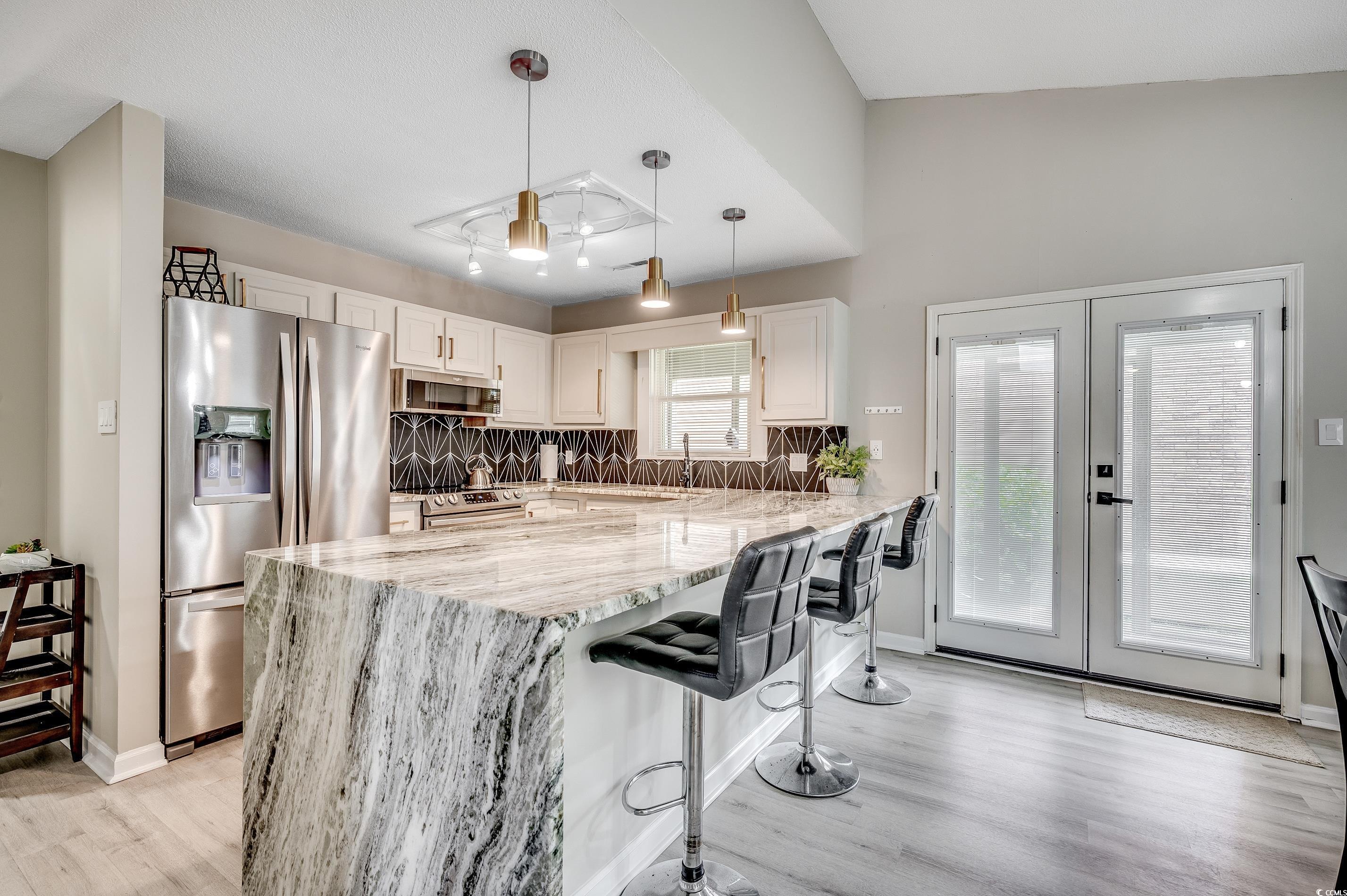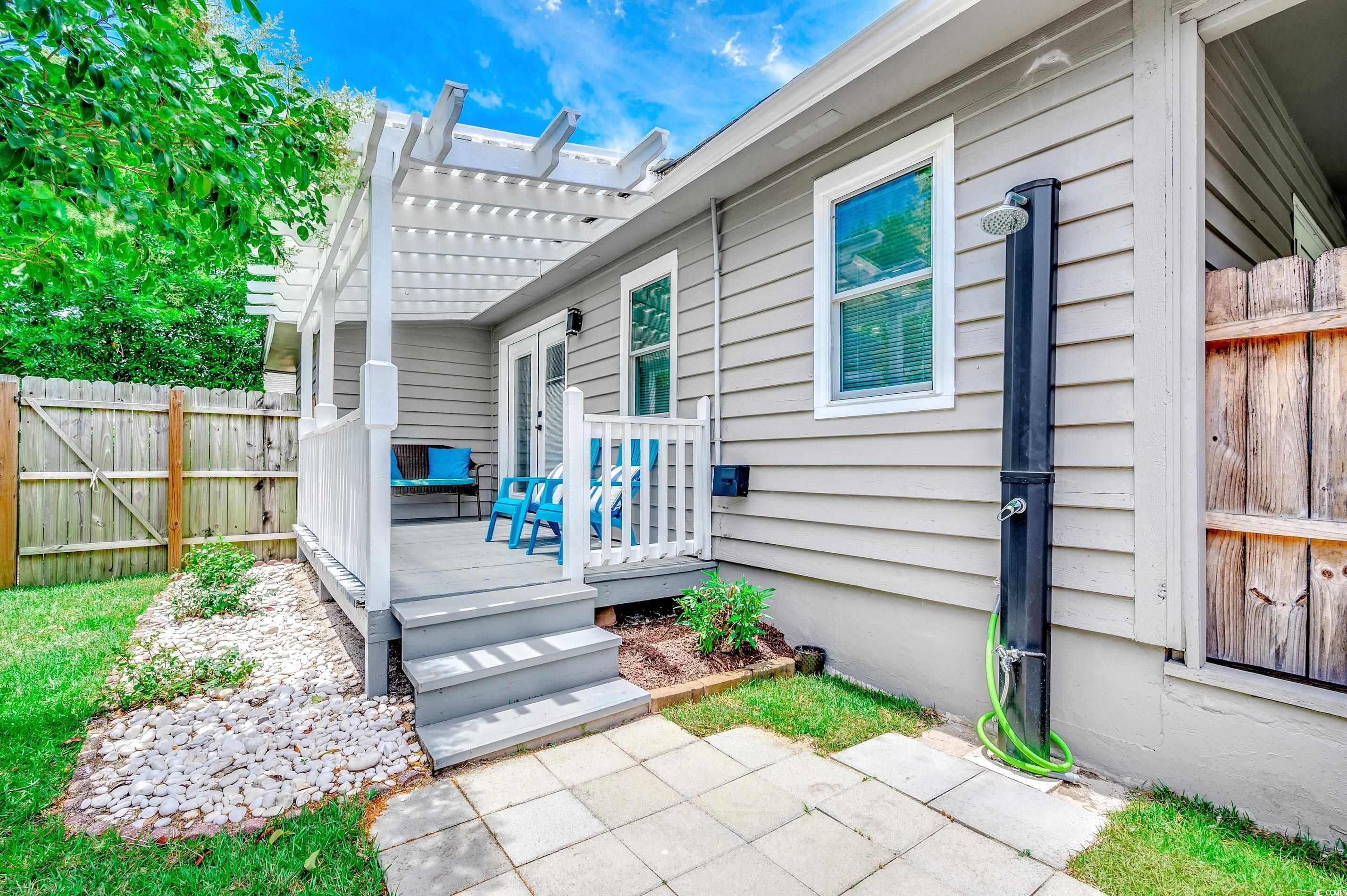 Come take a stroll to the beach whenever your heart desires from this lovely home located in Arcadian Shores. This fully-furnished beauty is completely move-in-ready and short-term rentals are allowed. It's currently being used as a vacation home and a turnkey investment property, but it could also be a great primary residence. There is NO HOA and this wonderful home is located outside the city limits, so you can fully enjoy your freedom! This is a single-level home, which makes it easily accessible. As you arrive, you will notice lots of palm trees and your very own putting green. This one-of-a-kind home has an open concept with a split floor plan. When you come through the covered entry, you will see a long bar with a spacious dining area, which is perfect for entertaining. The kitchen features granite countertops with a modern waterfall edge, stainless steel appliances, and a custom tile backsplash. There's a wet bar in the living room with a stylish copper sink. This unique home has vaulted ceilings in the main living area and a propane fireplace. There's a solar tube in the foyer and it has upscale lighting throughout along with laminate flooring. The large owner's suite has two closets, one of which is a walk-in. This bedroom has private access to the side porch, which is a delightful place to get some fresh air in the mornings. The attached bath has a whirpool tub/shower combo and both bathrooms have beautiful vessel sinks. The owner is offering a home warranty for extra peace of mind. The 6x21 side porch can easily be screened-in and it would be a great place to relax in the shade. The washer/dryer will be included along with all of the window treatments. The back porch is the perfect place to enjoy the ocean breeze and there is a patio for grilling out. The yard has been fenced in so you can let all of your furry friends out to play. The landscaping has been recently revitalized with flowers in the front and sod in the rear. You can rinse off under the outdoor shower and then sit by the fire pit on those cooler nights. There are two storage rooms on the other side of the house for all your beach gear. Golf carts and motorcycles are allowed. You could even park a small camper or a boat in the driveway if you wanted. Arcadian Shores is right across the street and you can enjoy views of the golf course from all of the bedrooms. This rare home is located close to everything that the Grand Strand has to offer. The Tanger Oulets are only a few minutes away along with Barefoot Landing and Ocean Annie's Tiki Bar where you can listen to live music! This is truly a must-see and you don't want to miss out! Schedule your showing today and don't forget to check out the virtual tour! Square footage is approximate and not guaranteed. Buyers responsible for verification. Some photos and videos have been virtually modified.