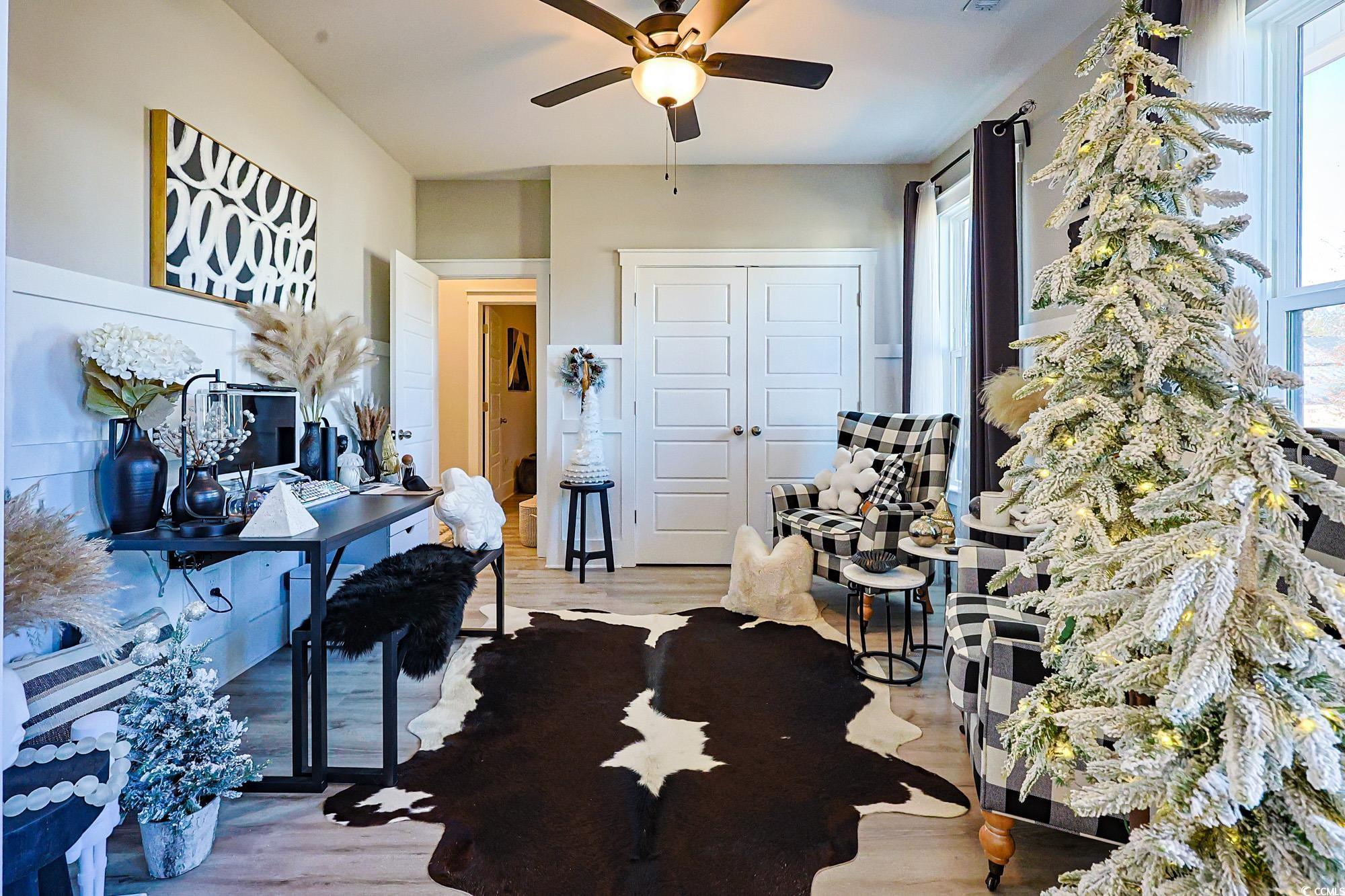 PrimaryBedroom: TrayCeilings, CeilingFans, MainLevelMaster, WalkInClosets
