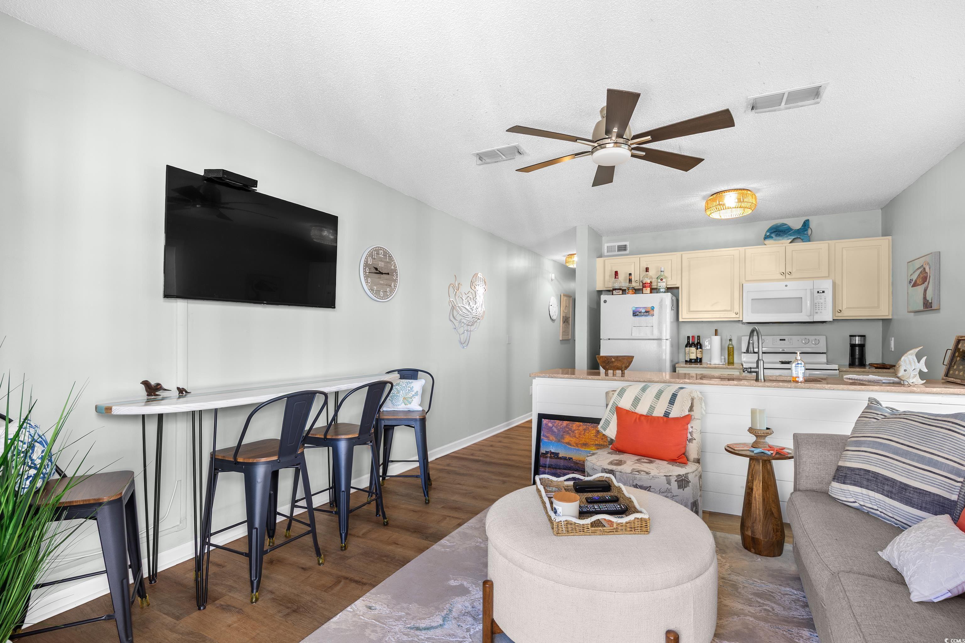 Are you looking for the perfect place to relax and enjoy the beach? This furnished condo is for you! Located across the street from the beach in Garden City, this 1 bedroom unit has so much to offer. Step inside to this freshly painted condo with luxury vinyl flooring. The bedroom has a spacious walk in closet with a recently replaced washer/dryer. The kitchen features solid surface countertops and a large breakfast bar which is open to the living area. This is an end unit with updated windows allowing the Carolina sunshine to fill your space. You can even relax on the screened porch and enjoy the sounds of the ocean. There is a storage closet on the porch to stow your beach chairs. Plus, there is a pool for those hot summer days. The exterior of the building has been recently painted and a roof was installed the beginning of 2025. Plus, the HVAC and Water Heater have been recently replaced. This has been used as a second home. The only worry you should have for years to come is, where are my flip flops? Make an appointment today!