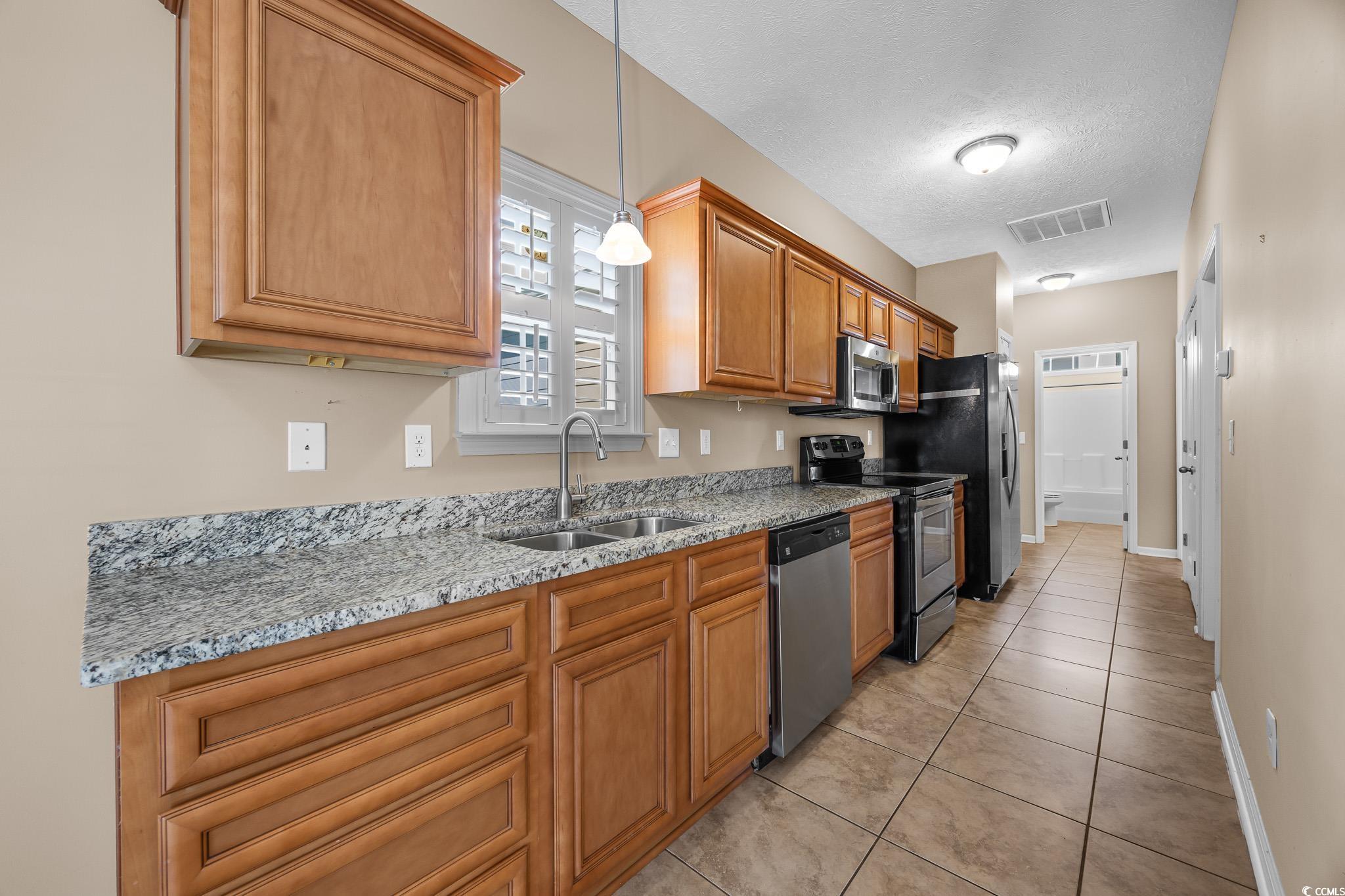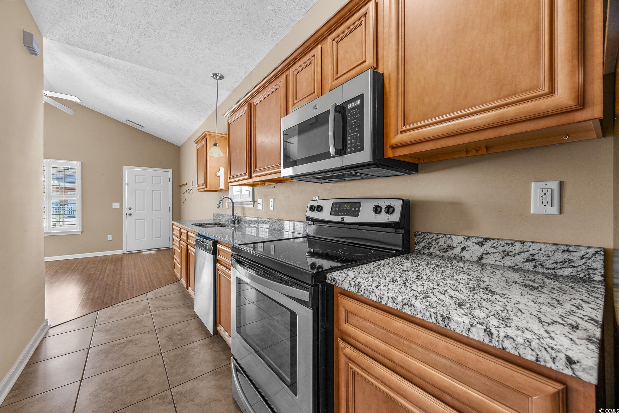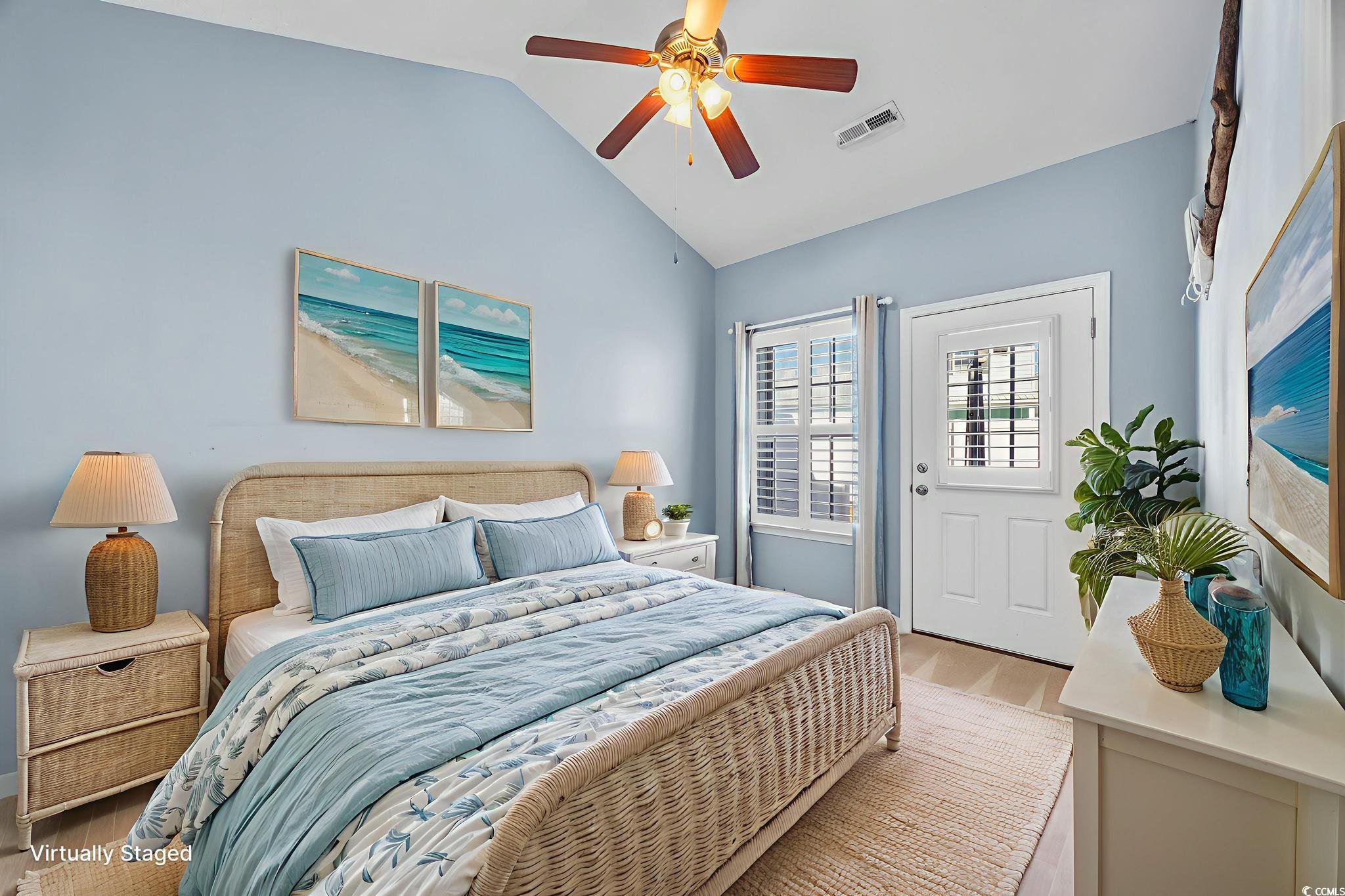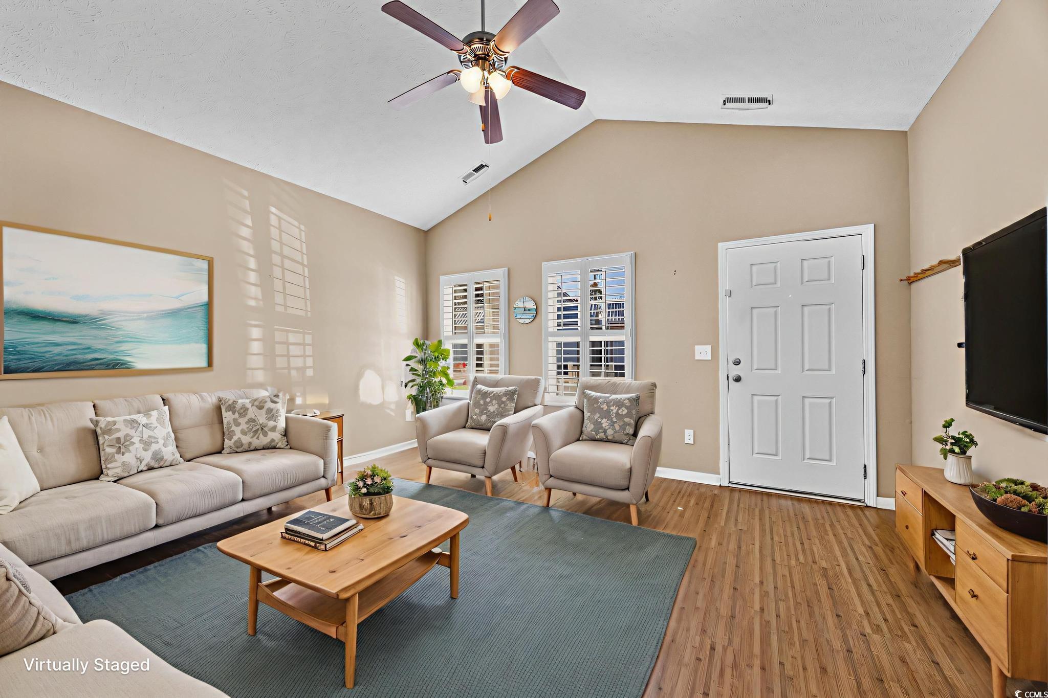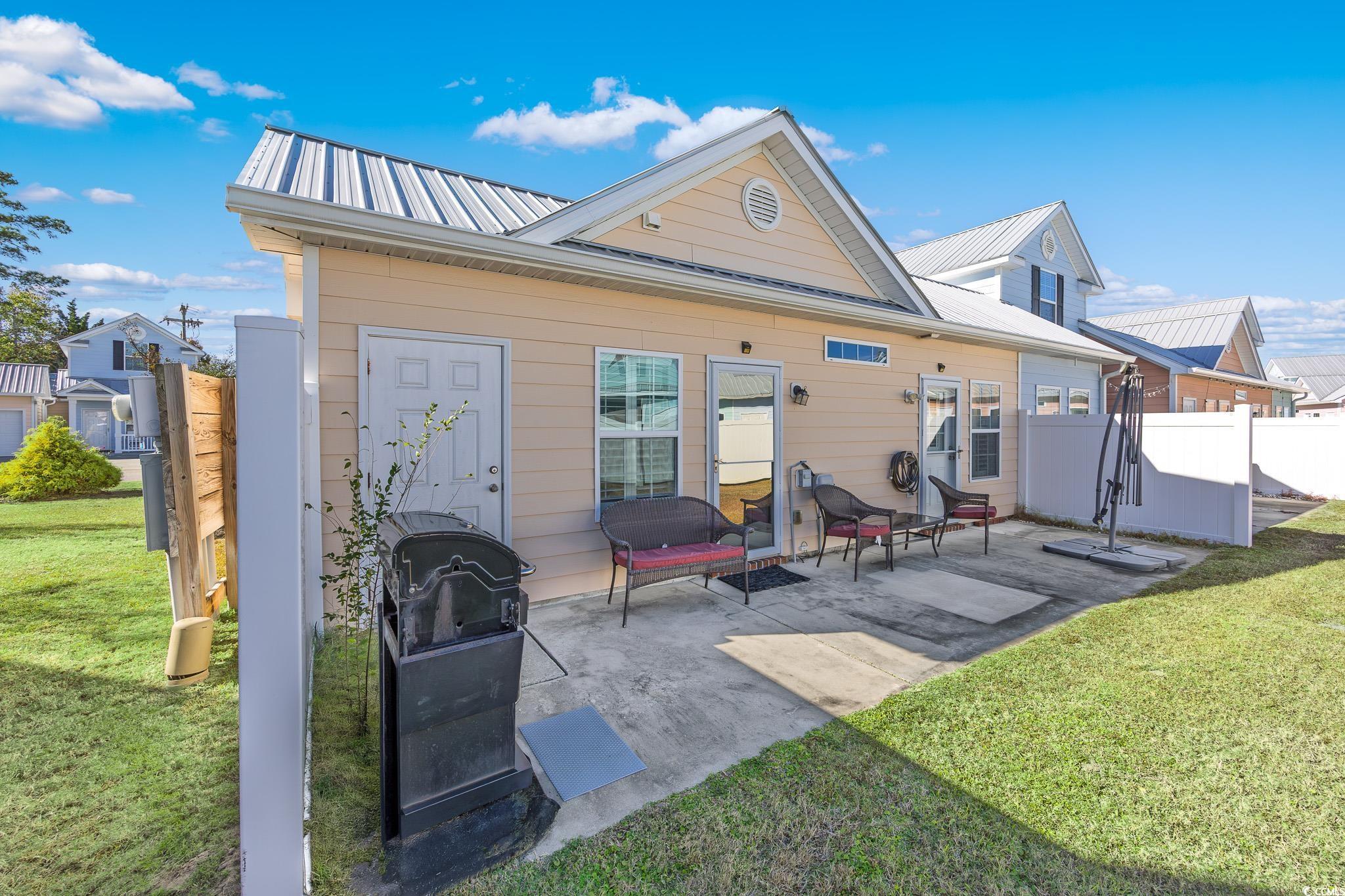 This delightful one level, 3-bedroom, 2-bath, 1 car garage beach getaway located east of Highway 17 Business in Cottages at Seventh is just a quick golf cart ride to the sandy shore in the Ocean Drive section of North Myrtle Beach. This quaint low-maintenance bungalow is easy to love as a full-time home, beach retreat, or investment property. Inside, youll find a bright, open layout with vaulted ceilings and laminate flooring in the main living areas, tile in the kitchen, laundry and baths, and cozy carpeted bedrooms. The kitchen shines with granite countertops and stainless steel appliancesready for everything from quick snacks to coastal feasts. Barely used full size washer and dryer convey as well as all kitchen appliances and HVAC was very recently replaced. Plantation shutters throughout add a timeless, coastal touch. Relax on the welcoming front porch with your morning coffee or host cookouts on the back patio which you can access from both the primary and guest bedroom. A one-car garage and large outdoor storage room off the back of the home make beach living a breeze to park your golf cart and hang your sandy lounge chairs. Just minutes from shopping, dining, entertainment, and the beachthis is truly North Myrtle Beach relaxed living! Call for your private showing today! *Some listing photos have been virtually staged. All information, measurements and square footage are approximate, deemed reliable, but not guaranteed. Buyer or buyer's representative is responsible for verification. Preferred Lender information available, be sure to ask your Realtor for details.